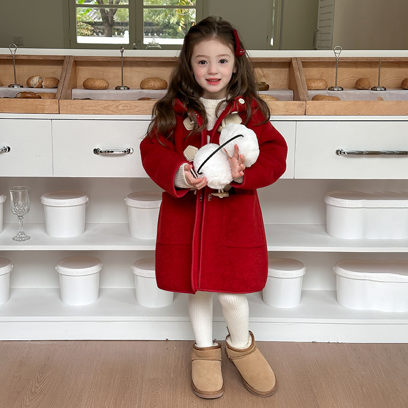 [기모 두껍게] 여자 한국 스타일 새해 스타일 기질 긴 후드 모직 코트스토어 가기