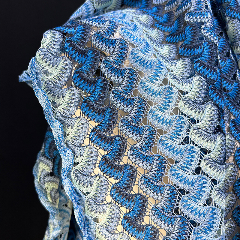 파란색과 흰색 도자기 민족 스타일 색 줄무늬 메쉬 패브릭 매운 연꽃 뿌리 Ding Xie 좋은스토어 가기