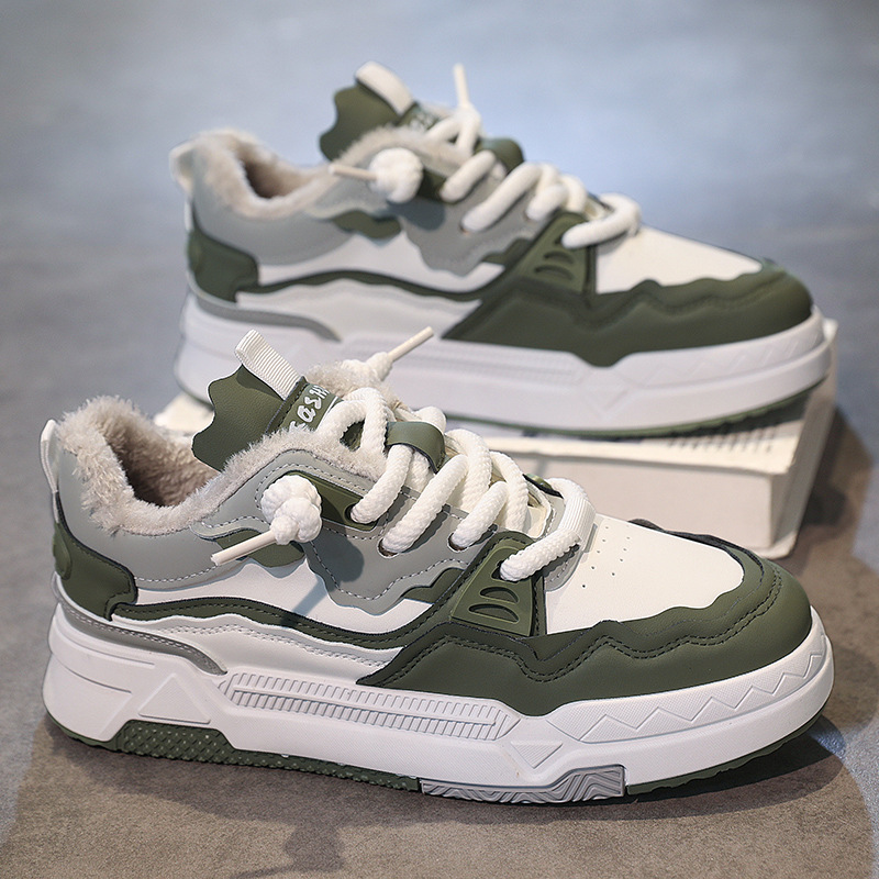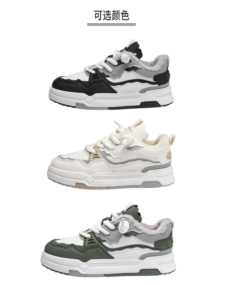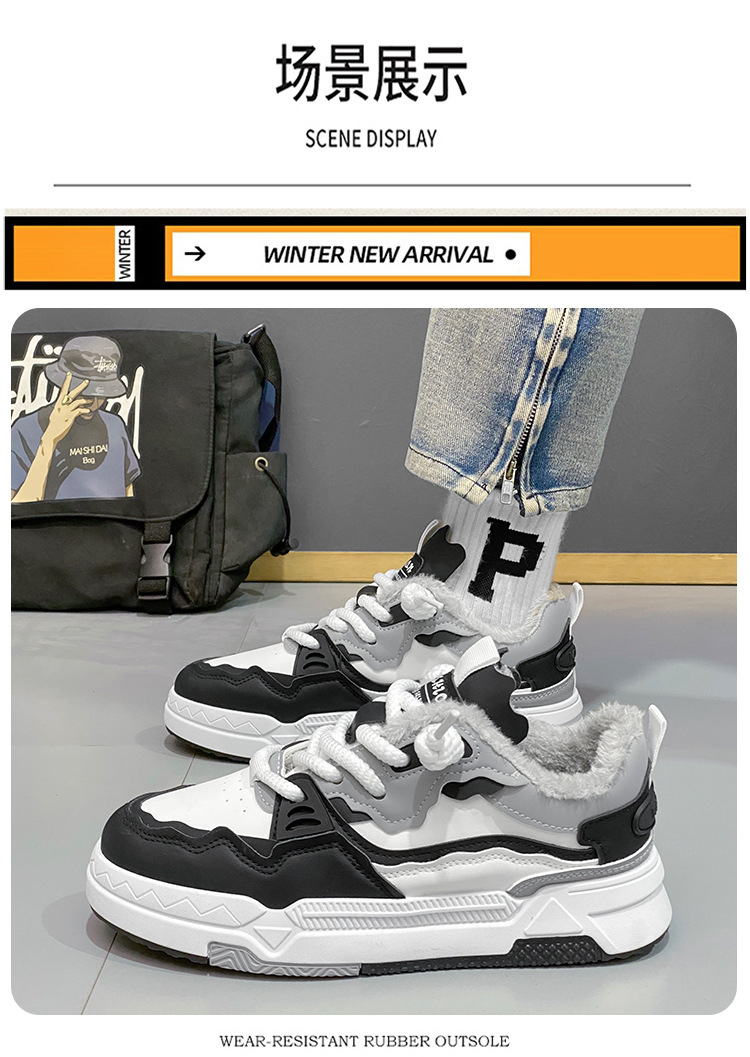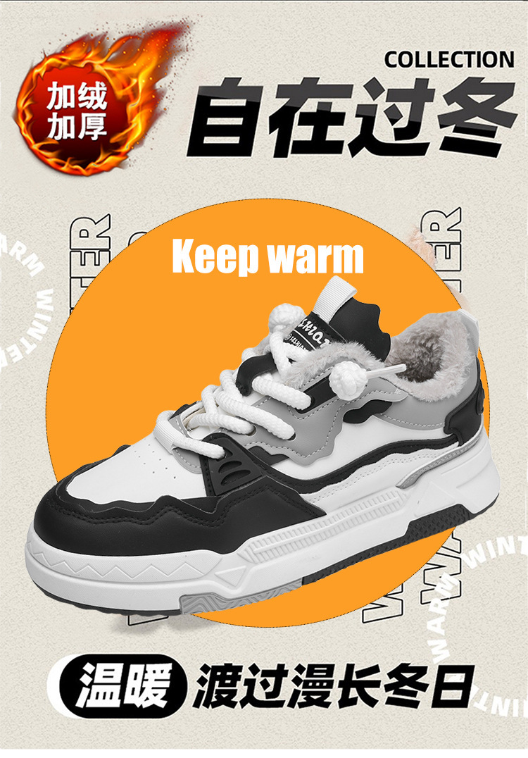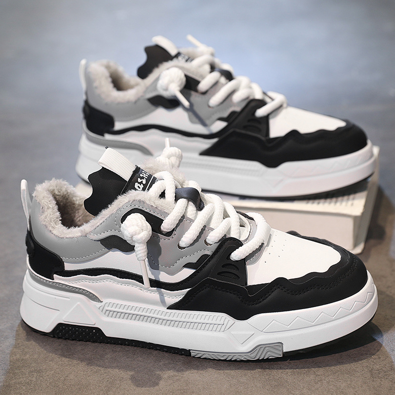 겨울 기모 큰 면 동북 2024 남성 신발 기모 청소년 캐주얼 플랫 신발 남성 가죽 신발 스포츠 트렌디 신발