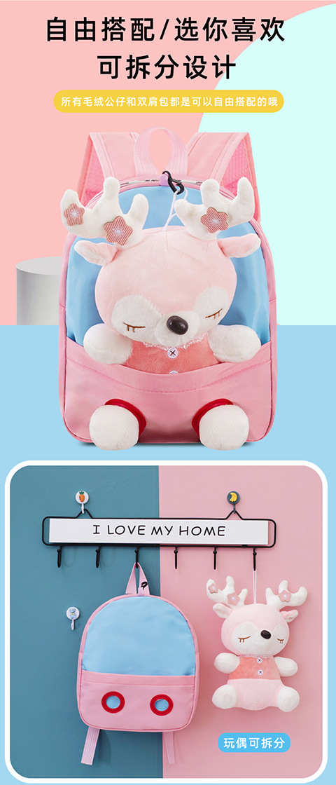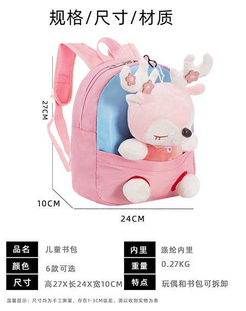 새로운 유치원 학교 가방 소년과 소녀 귀여운 만화 봉제 인형 분리 가능한 배낭 배낭 도매 감소스토어 가기