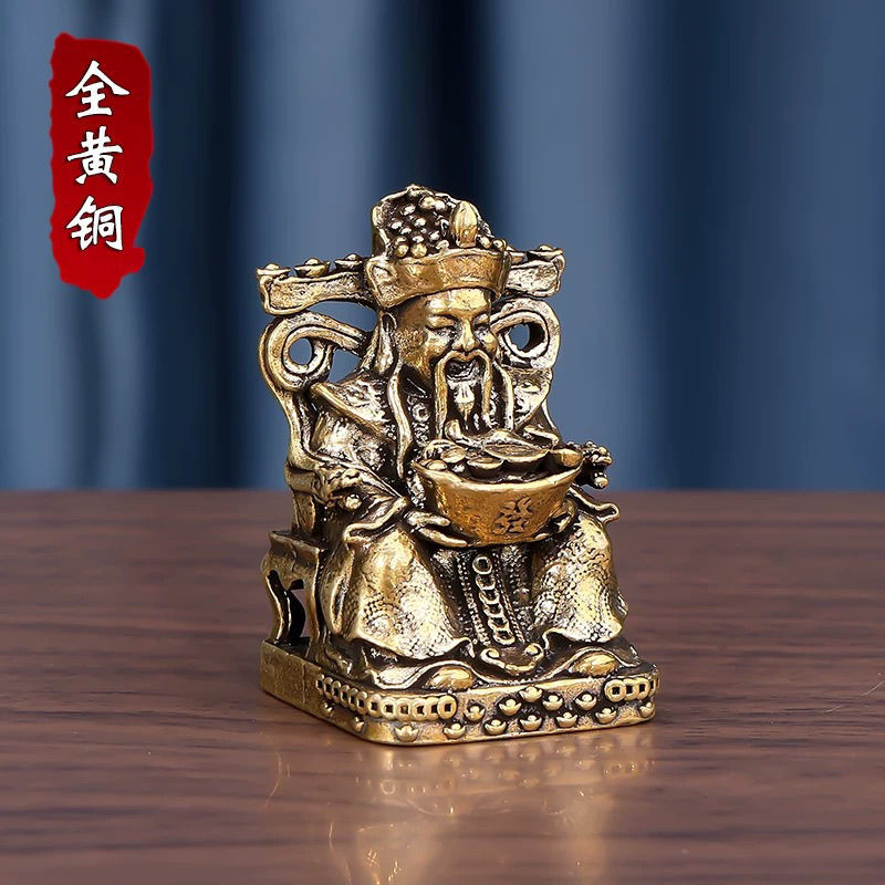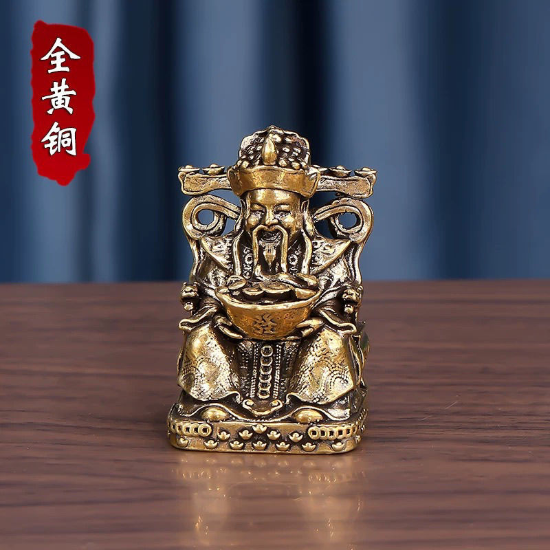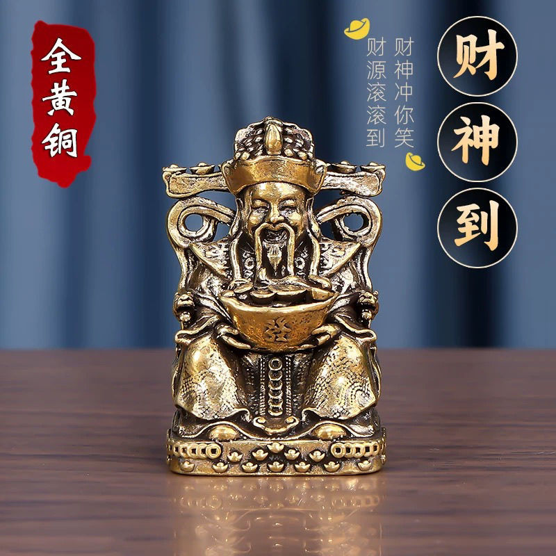 纯黄铜迷你小财神爷摆件家用办公室客厅桌面店铺招财开业礼品饰品