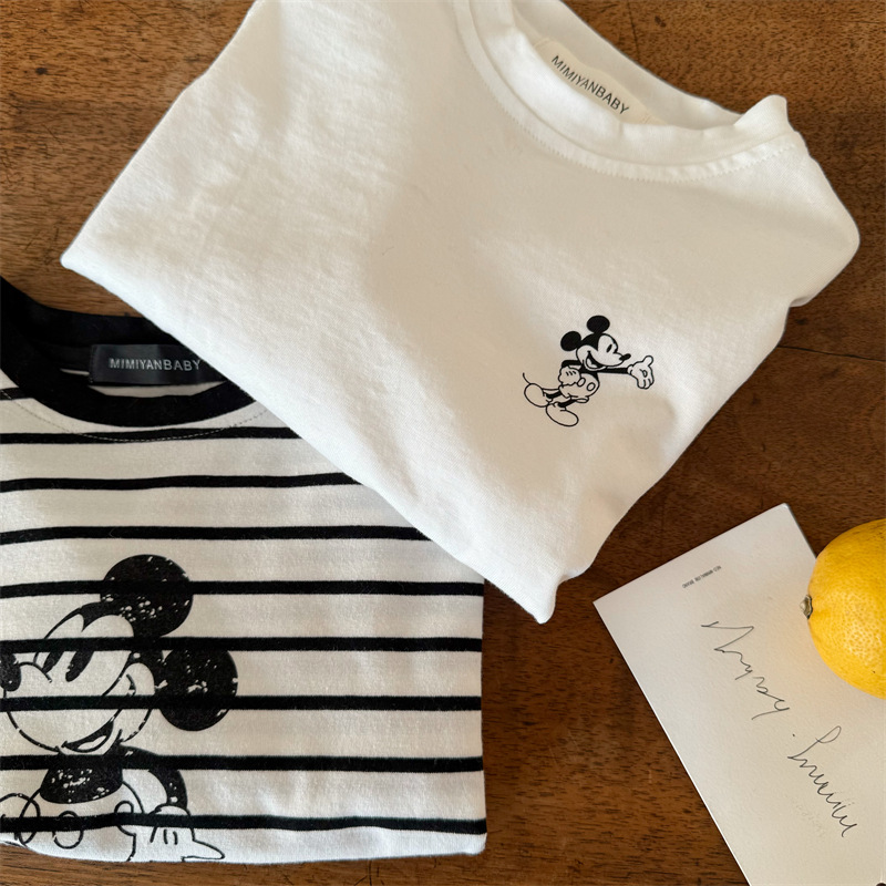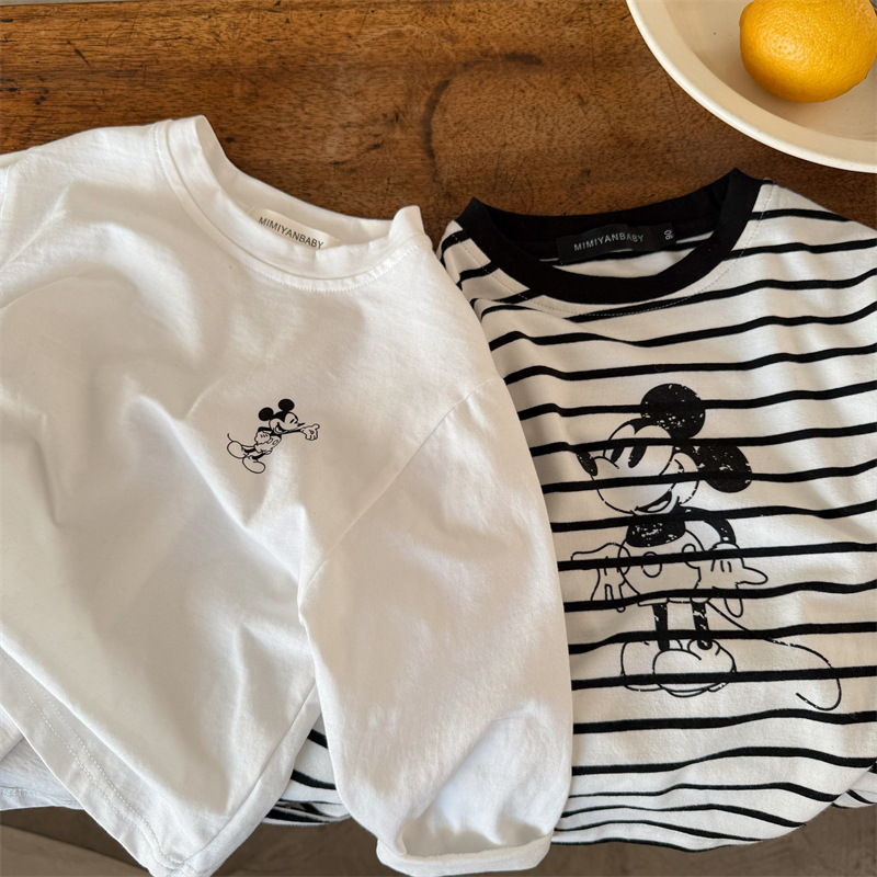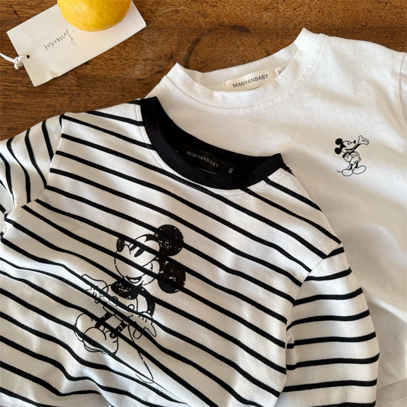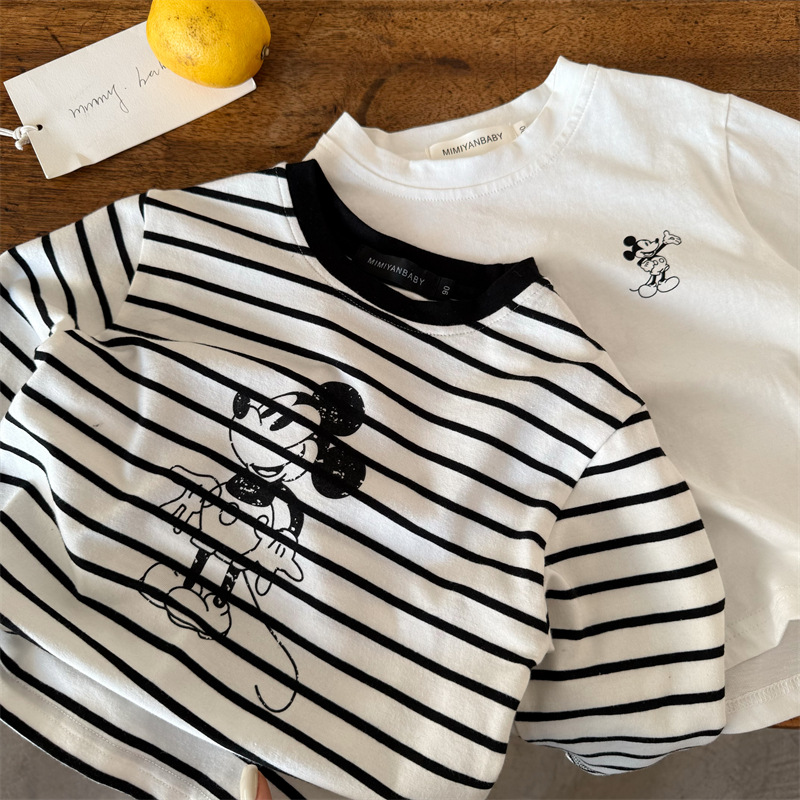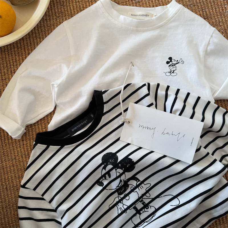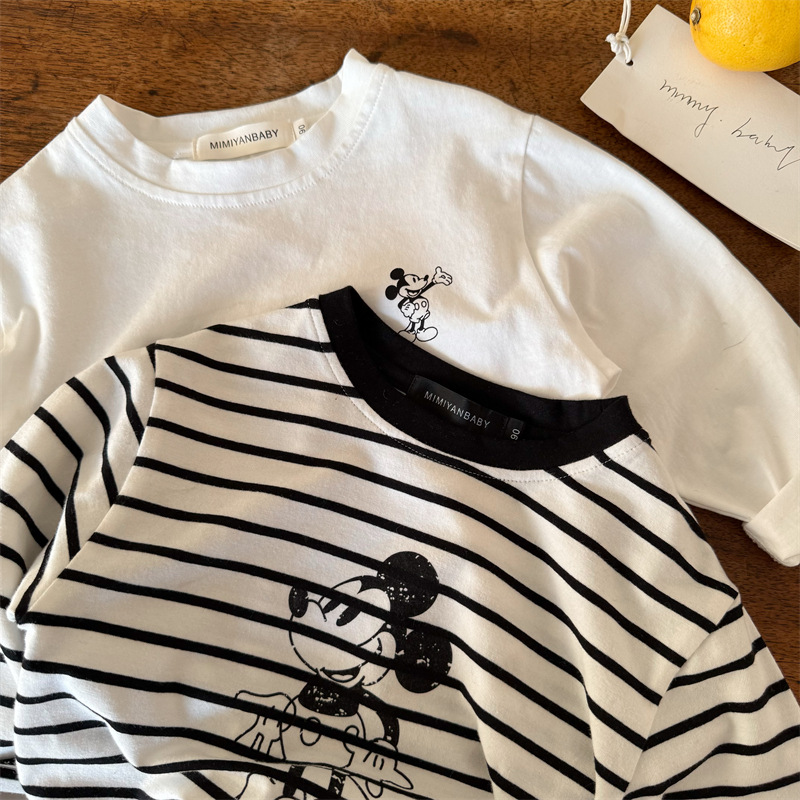 어린이 티셔츠 2026 봄 한국 스타일 신상 남녀 아동용 세련된 스트라이프 만화 셔츠 아기 캐주얼 티셔츠