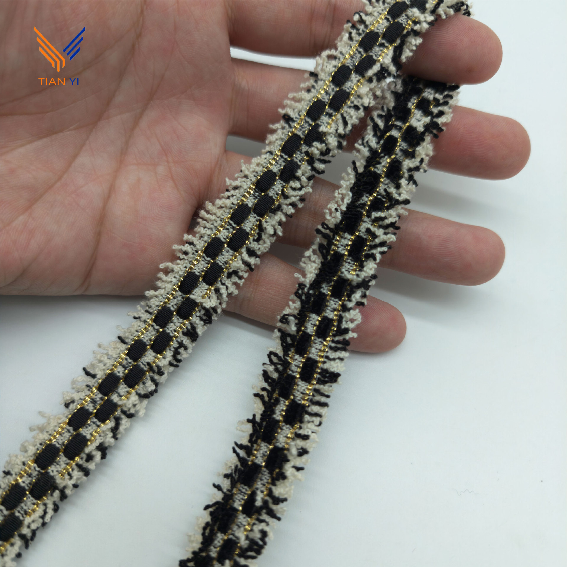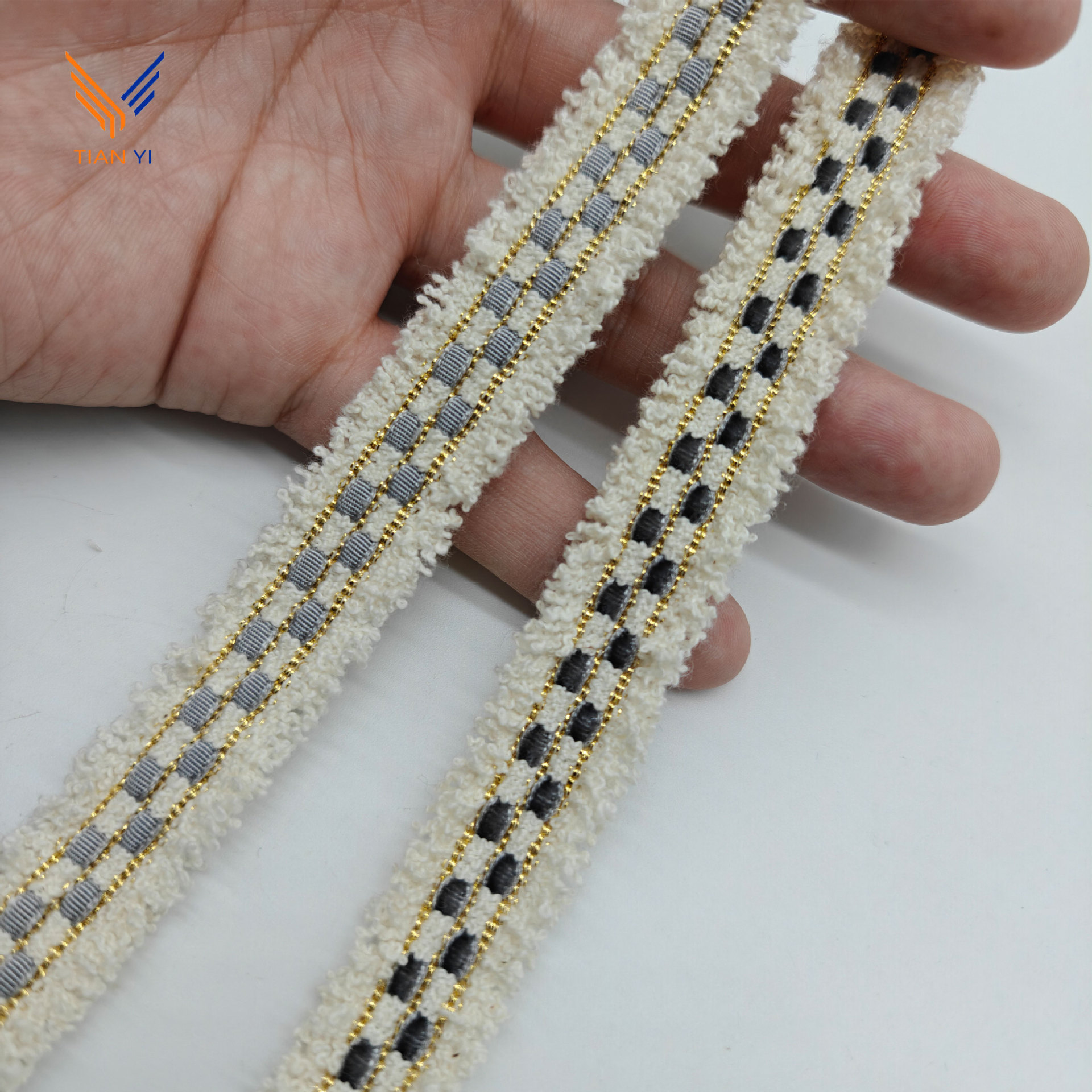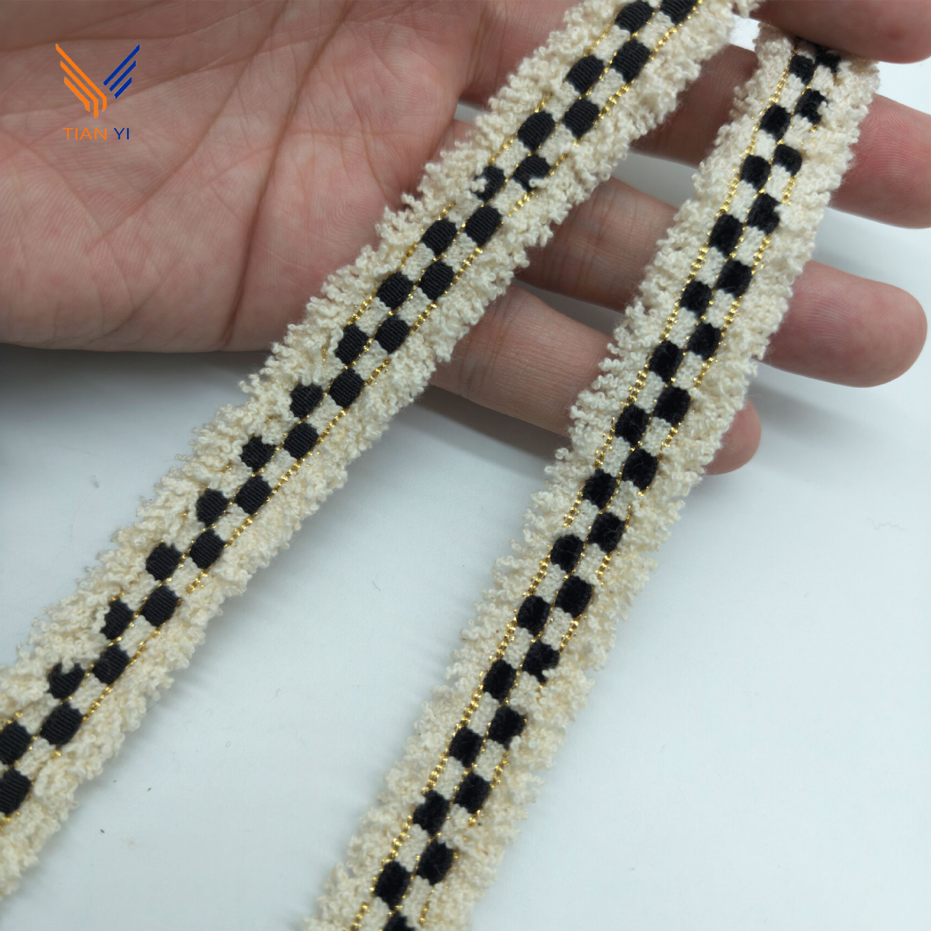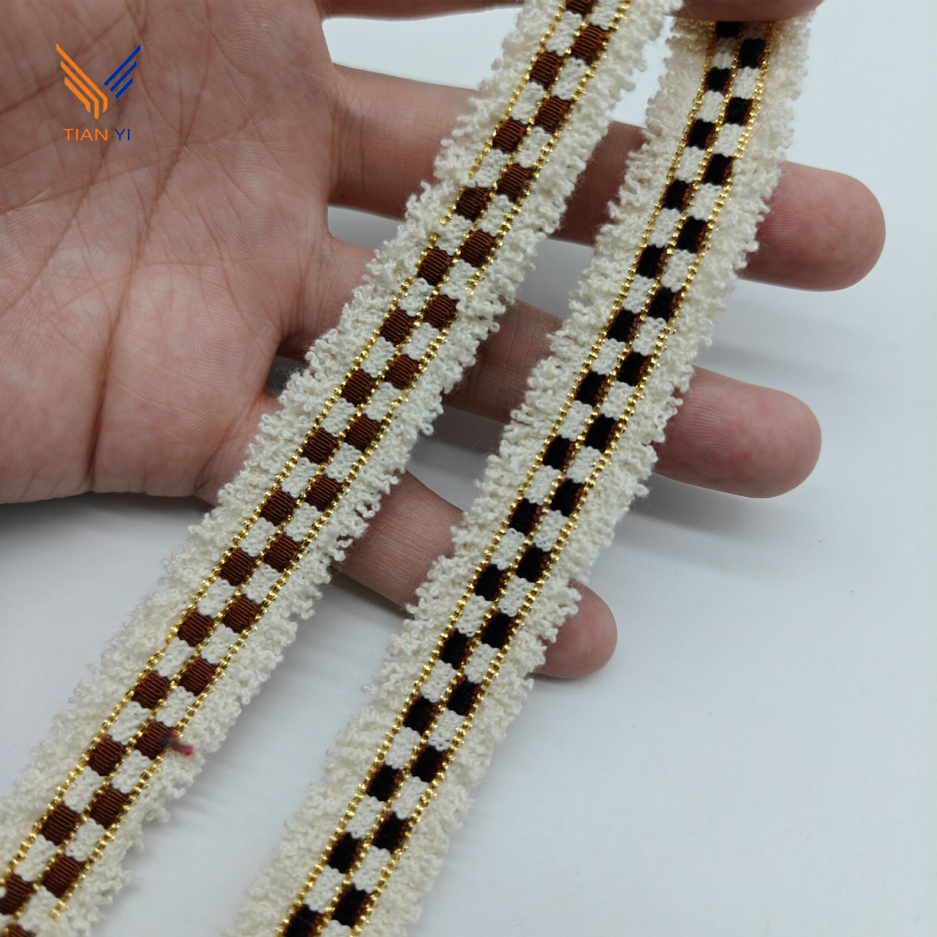 샤오 샹 스타일 골드 실크 체크 무늬 리본 레이스 칫솔 스웨터 리더 입 코트 장식 스트립 수제 DIY 액세서리