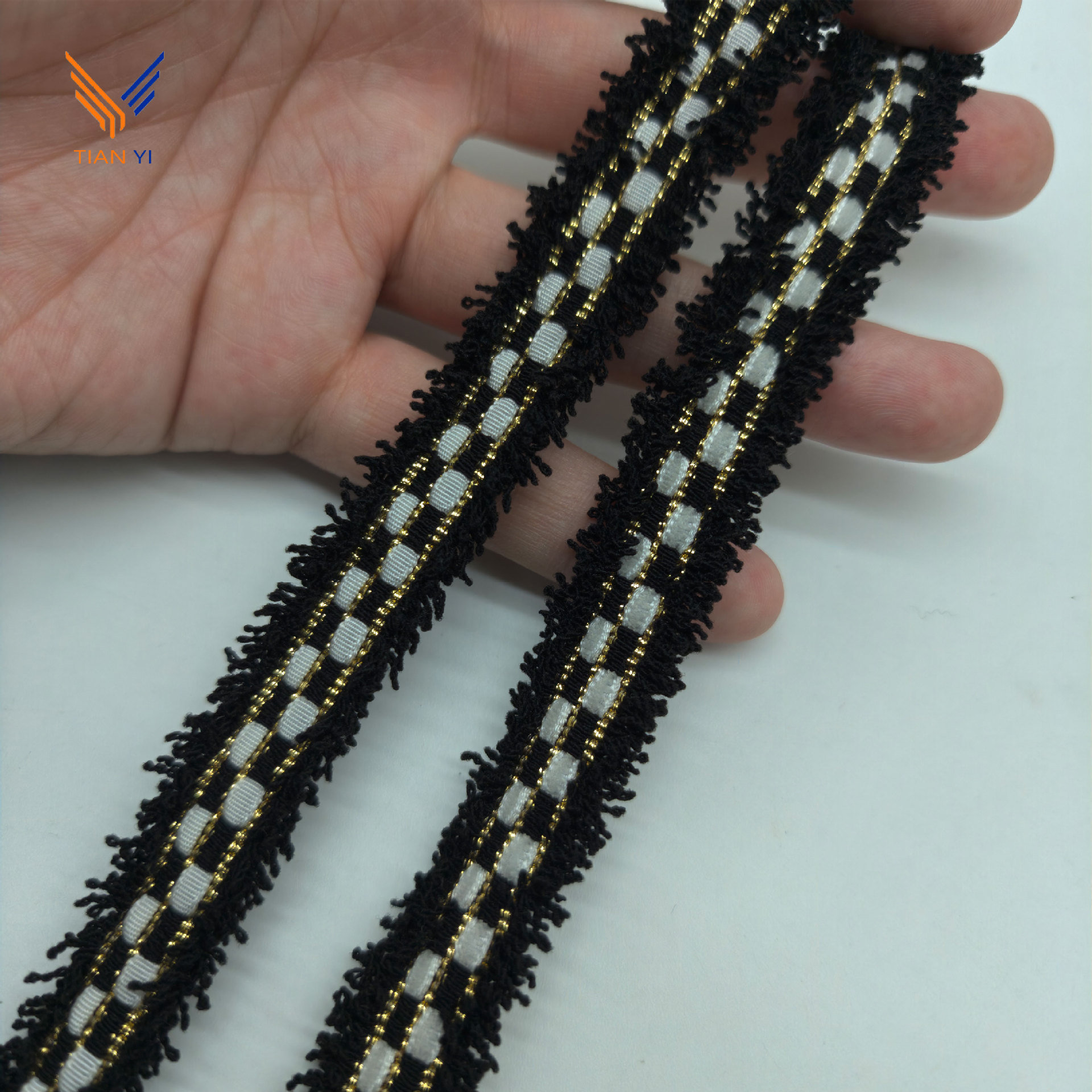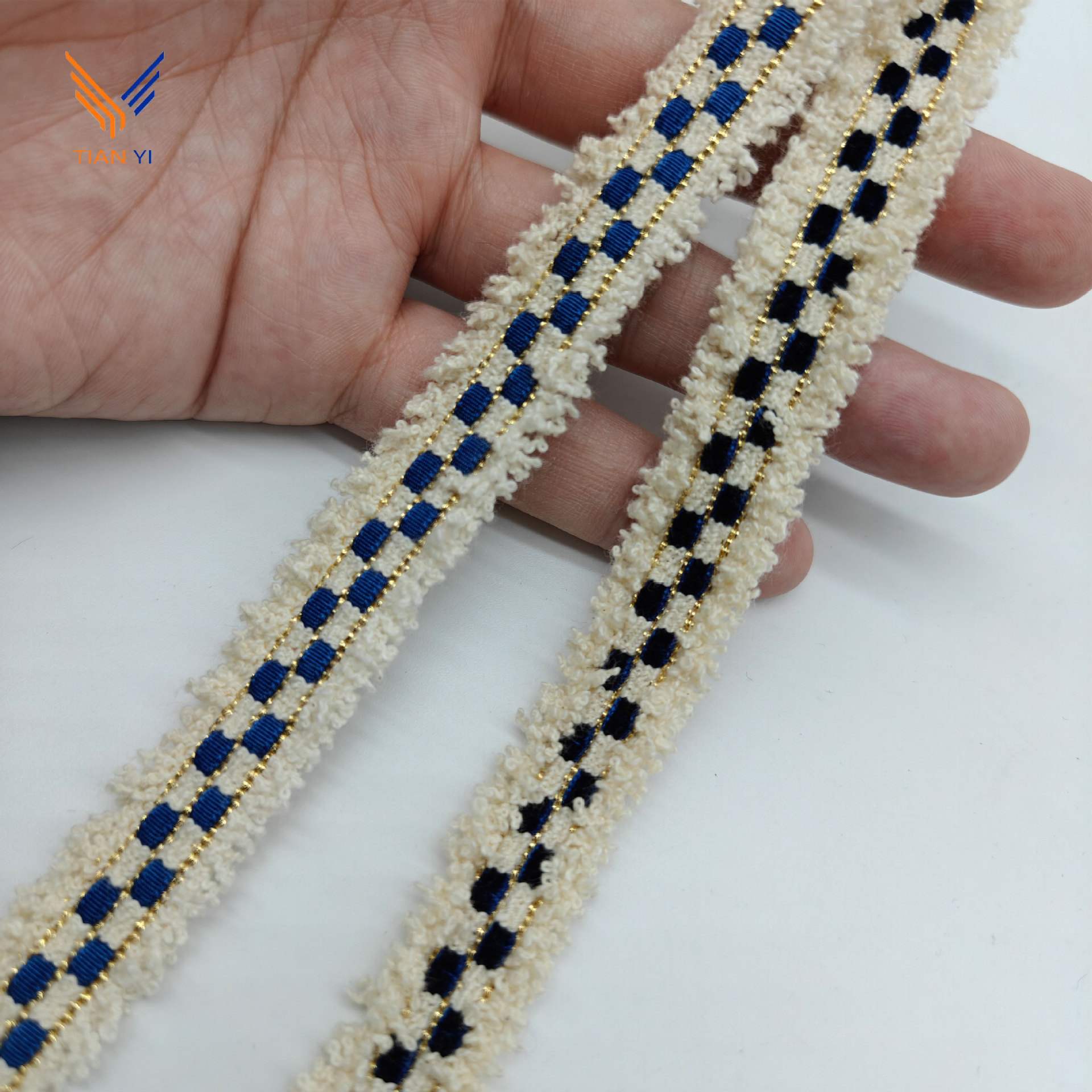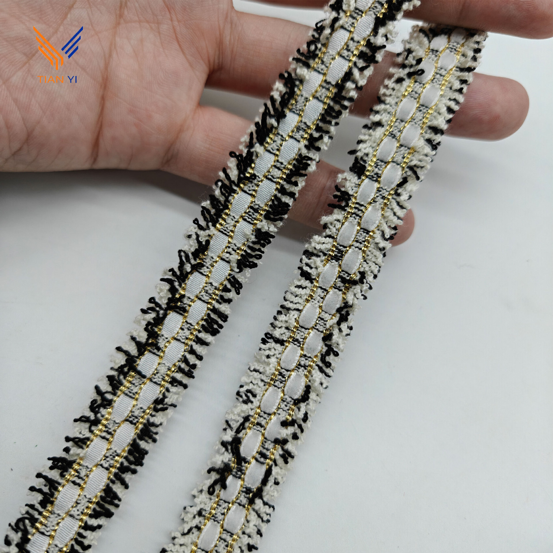 샤오 샹 스타일 골드 실크 체크 무늬 리본 레이스 칫솔 스웨터 리더 입 코트 장식 스트립 수제 DIY 액세서리