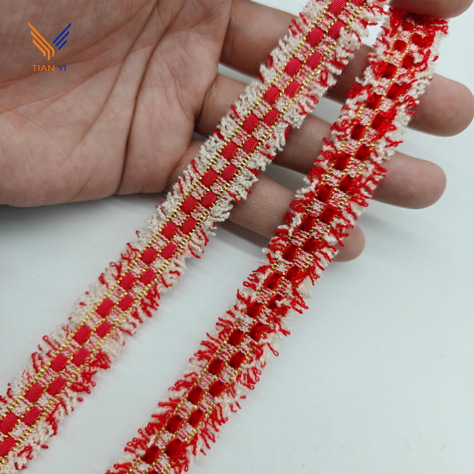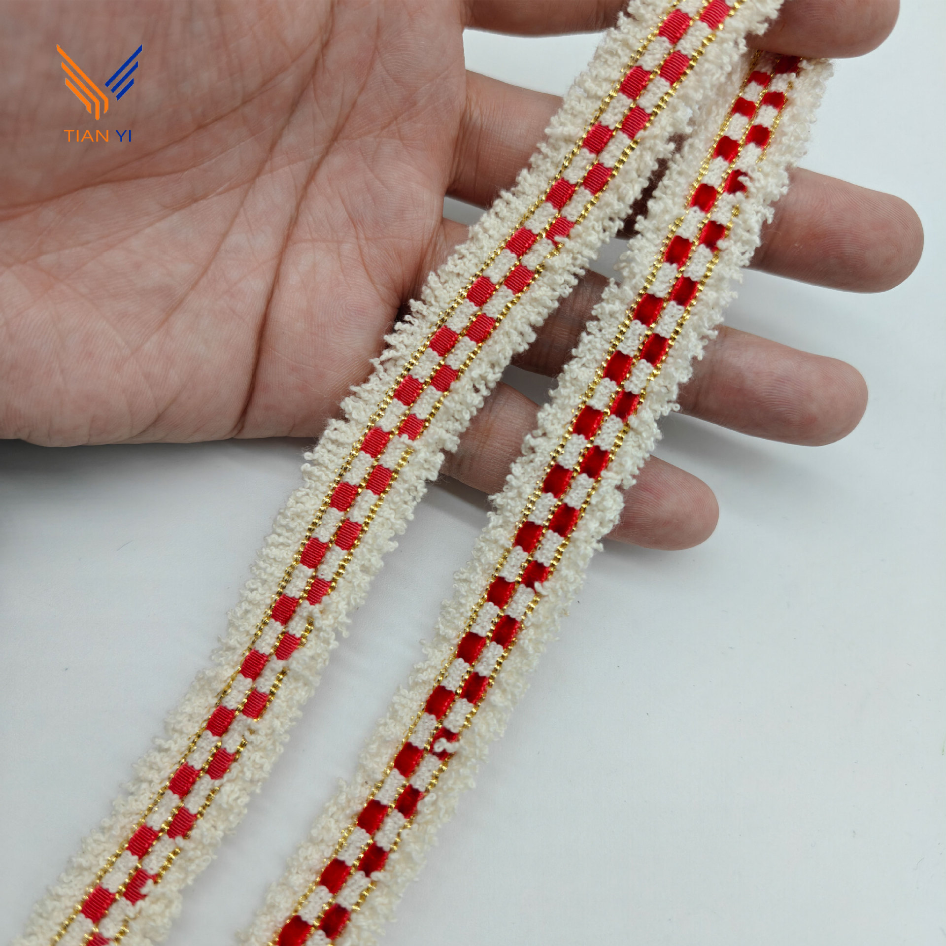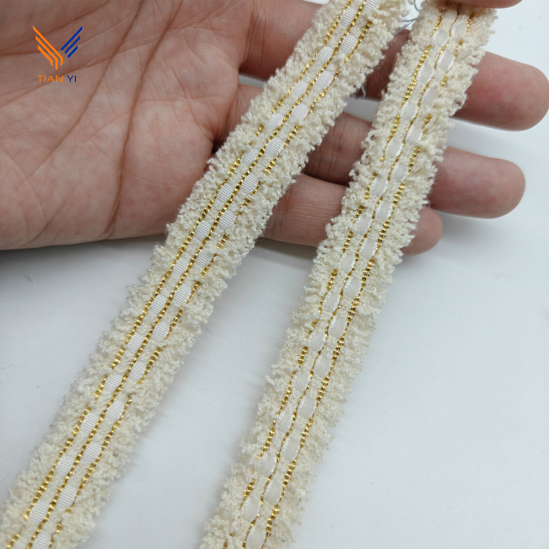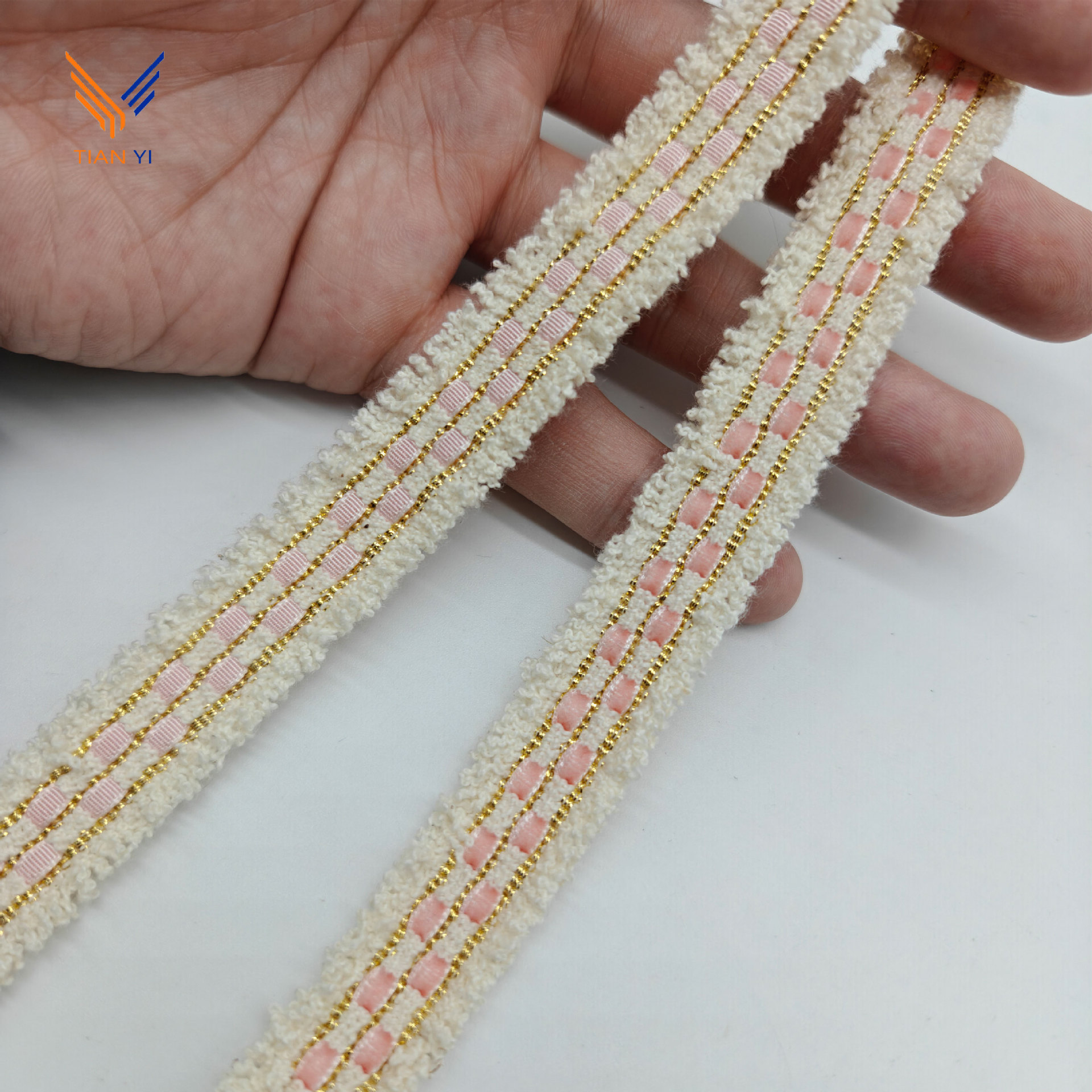 샤오 샹 스타일 골드 실크 체크 무늬 리본 레이스 칫솔 스웨터 리더 입 코트 장식 스트립 수제 DIY 액세서리