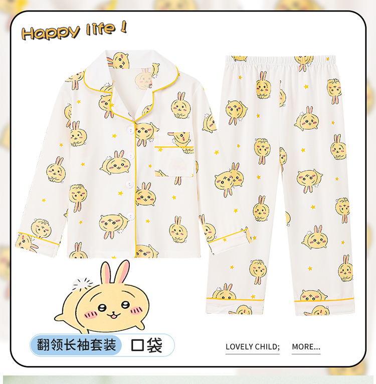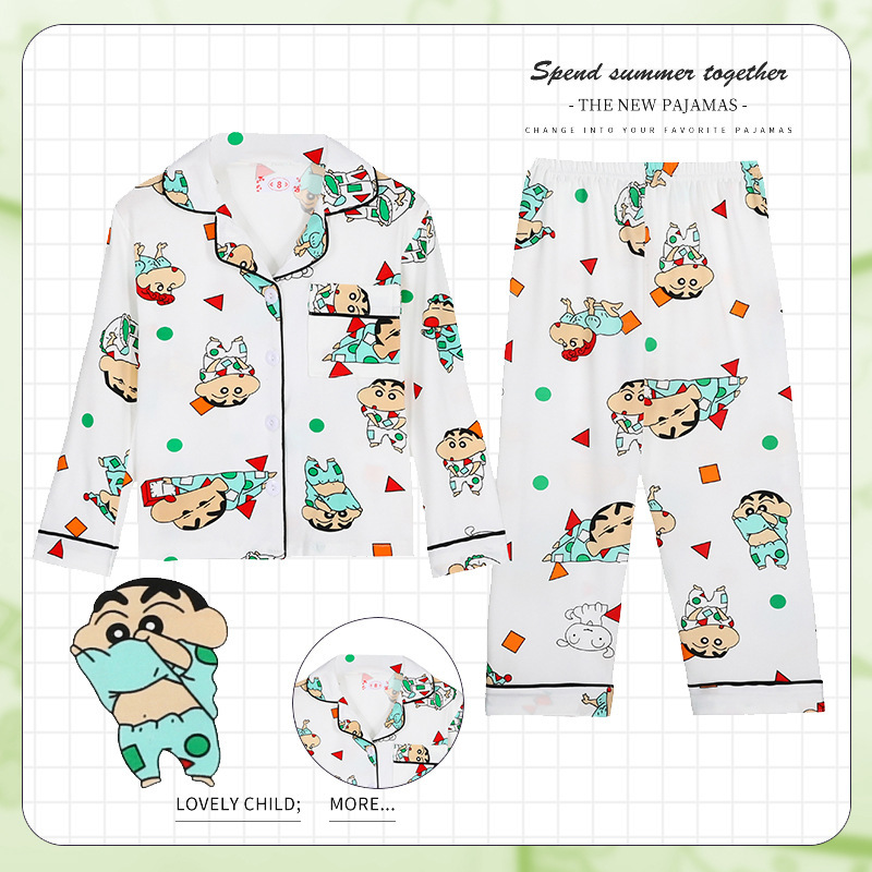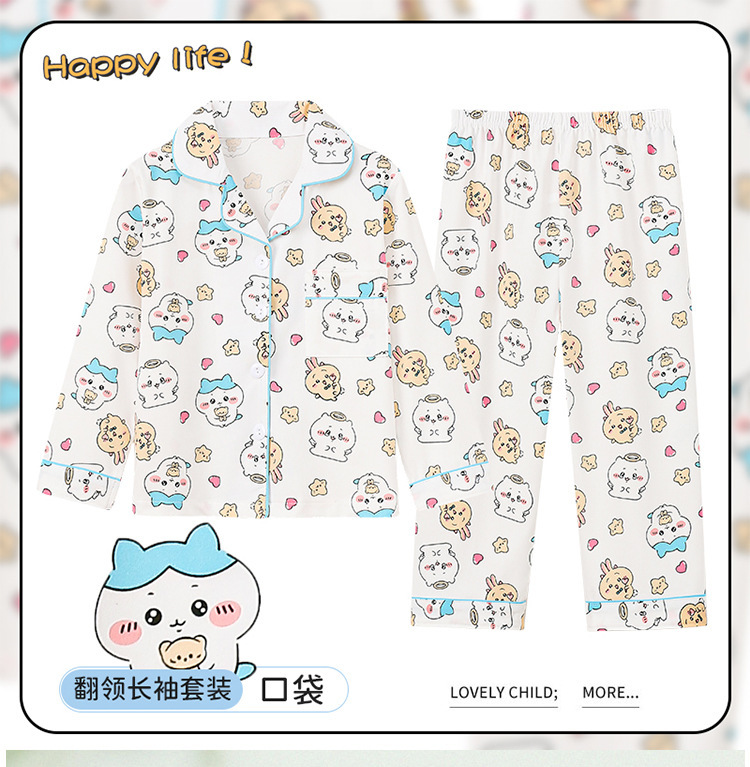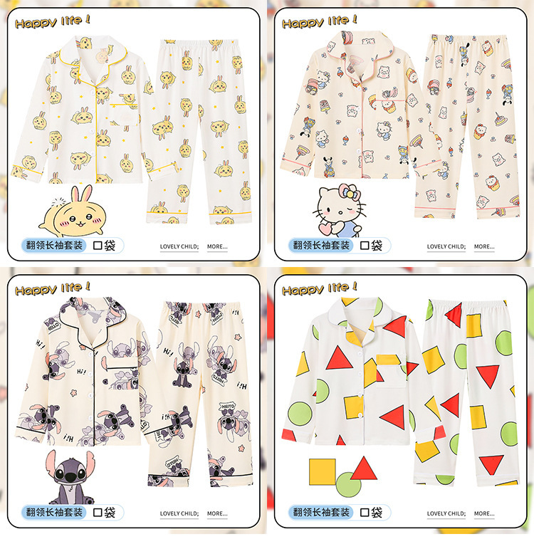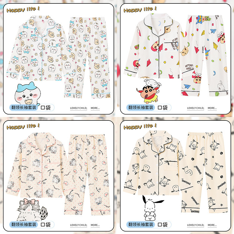 소년 잠옷 한 세대 봄과 가을 긴 소매 소녀 옷깃 만화 어린이 세트 잠옷 소년 집 옷스토어 가기