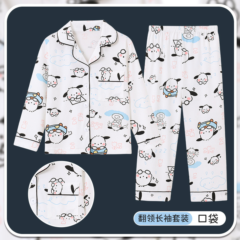 소년 잠옷 한 세대 봄과 가을 긴 소매 소녀 옷깃 만화 어린이 세트 잠옷 소년 집 옷