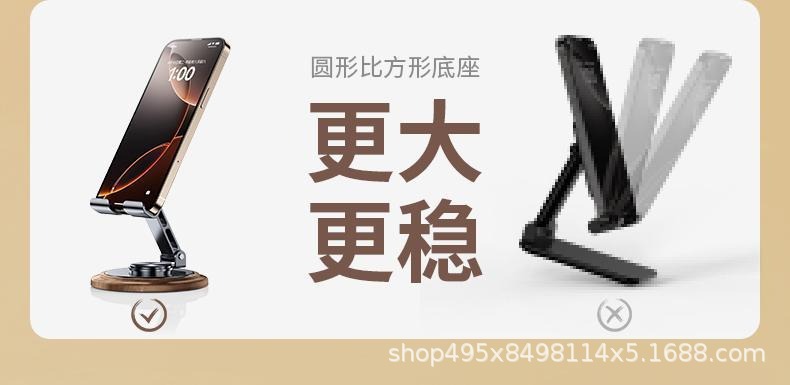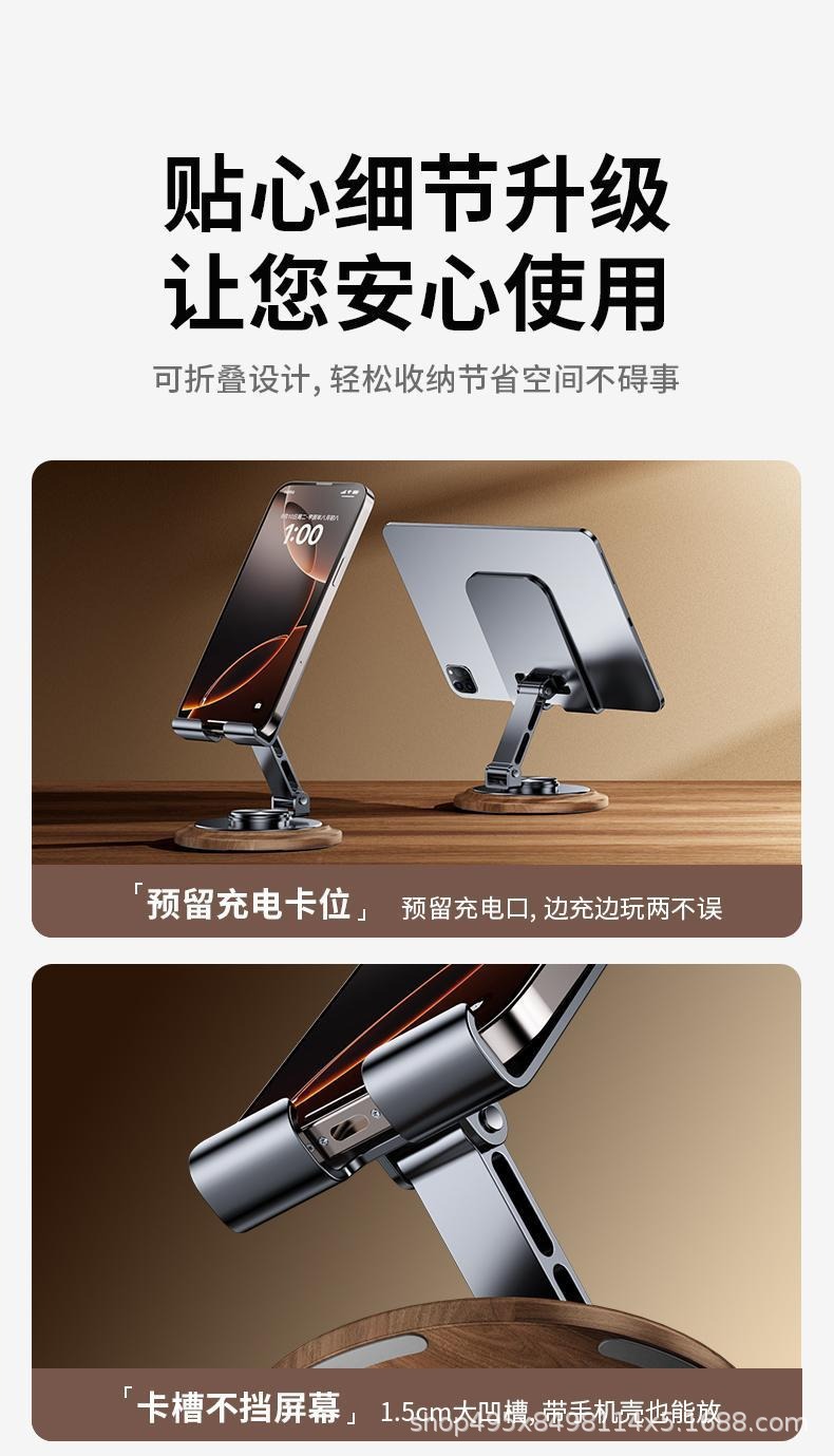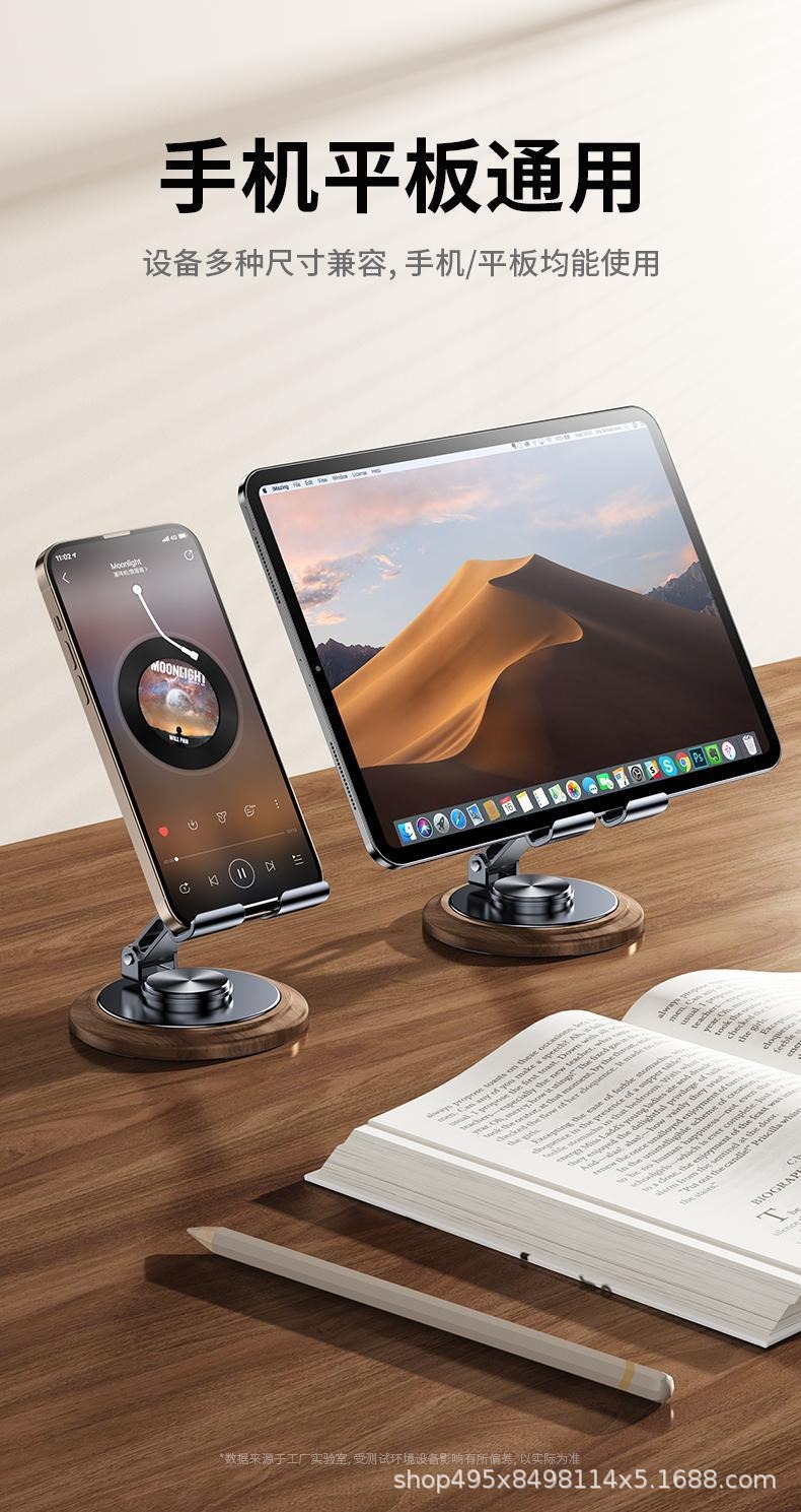 나뭇결 질감 데스크탑 회전 휴대 전화 홀더 접이식 라이브 금속 게으른 태블릿 랙 선물 인쇄 로고스토어 가기