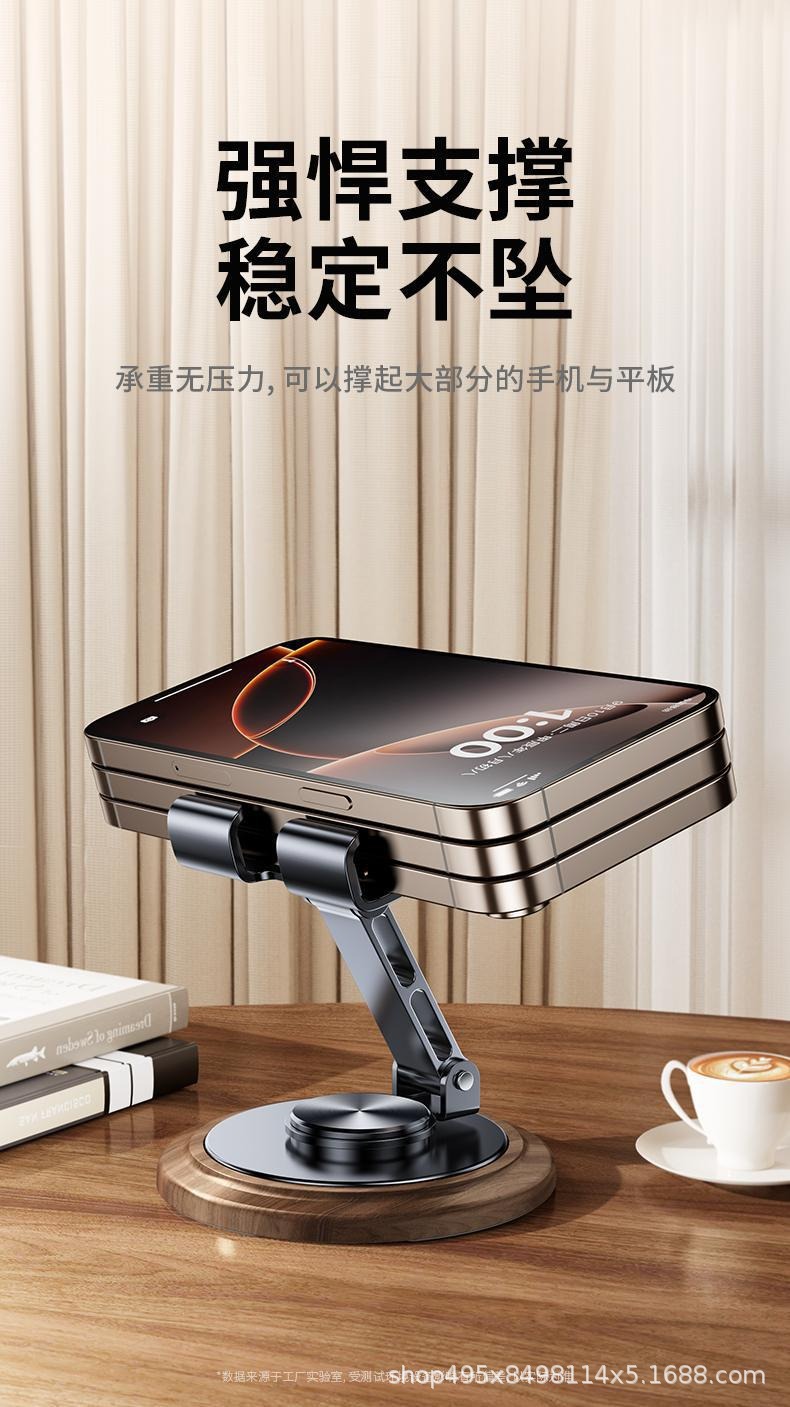 나뭇결 질감 데스크탑 회전 휴대 전화 홀더 접이식 라이브 금속 게으른 태블릿 랙 선물 인쇄 로고