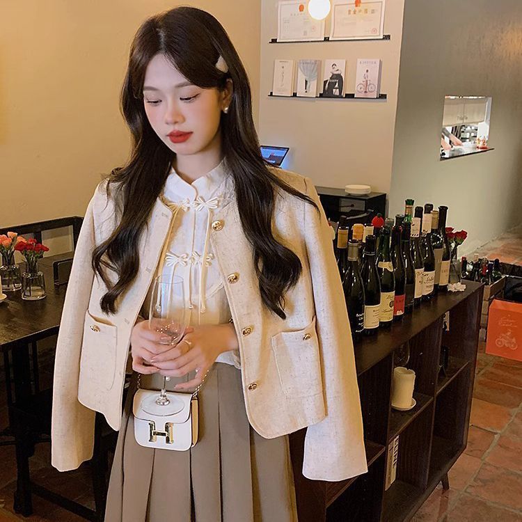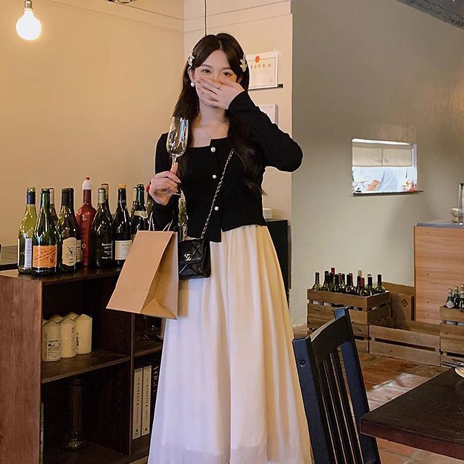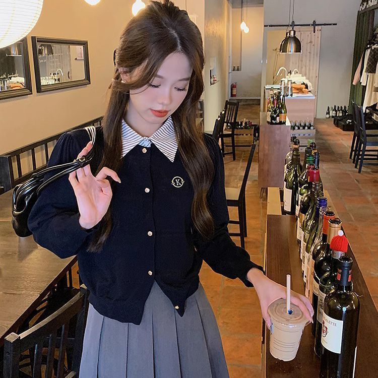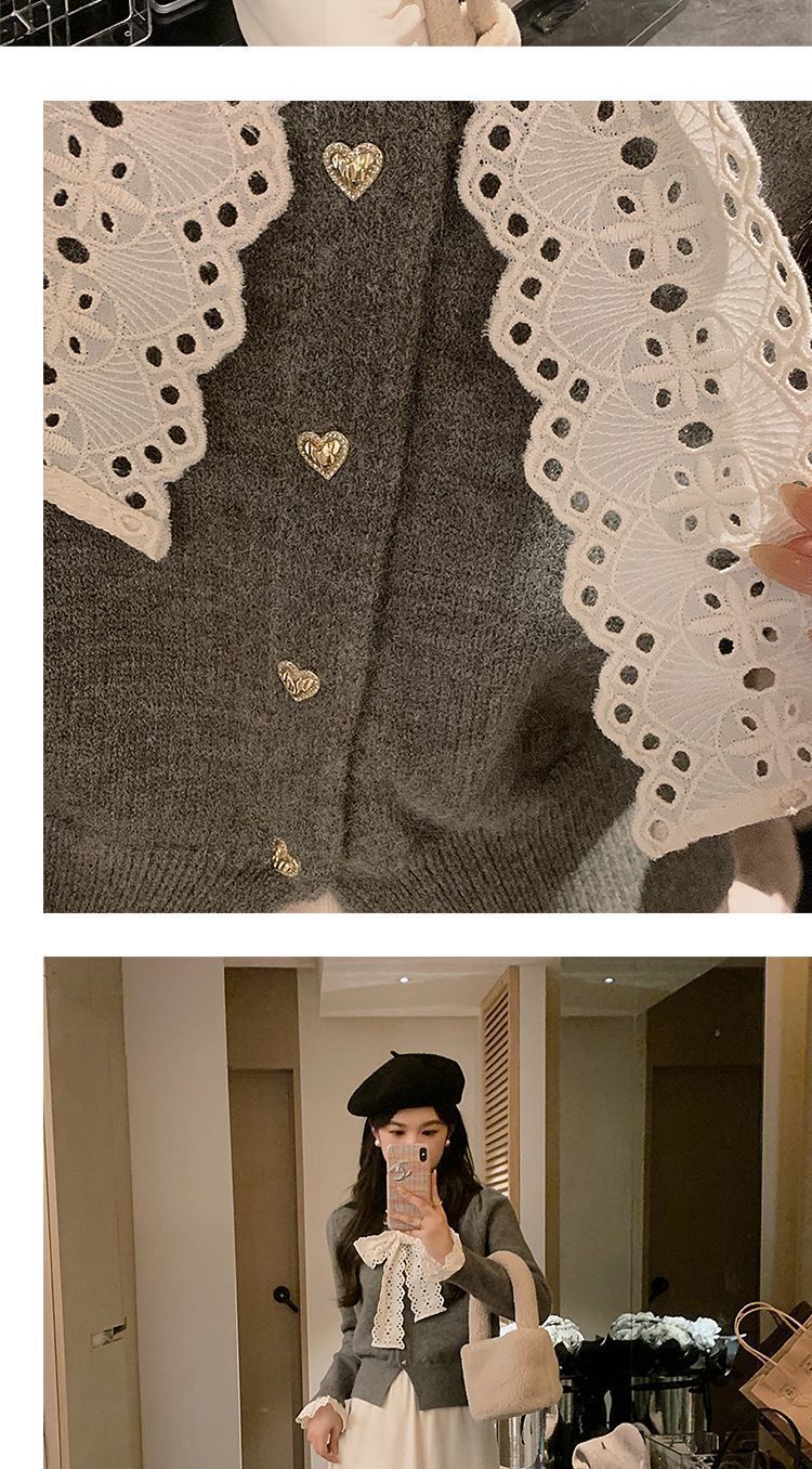빨간 짧은 스웨터 코트 여성의 가을과 겨울 내부 니트 베이스 카디건 작은 레이스 보우 탑스토어 가기