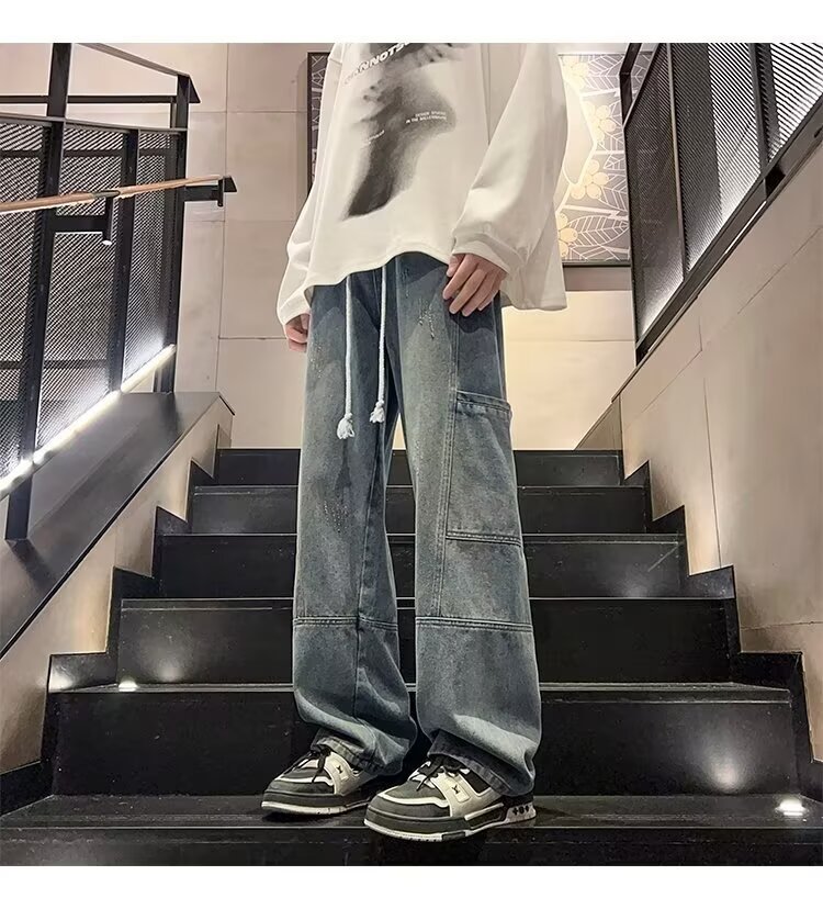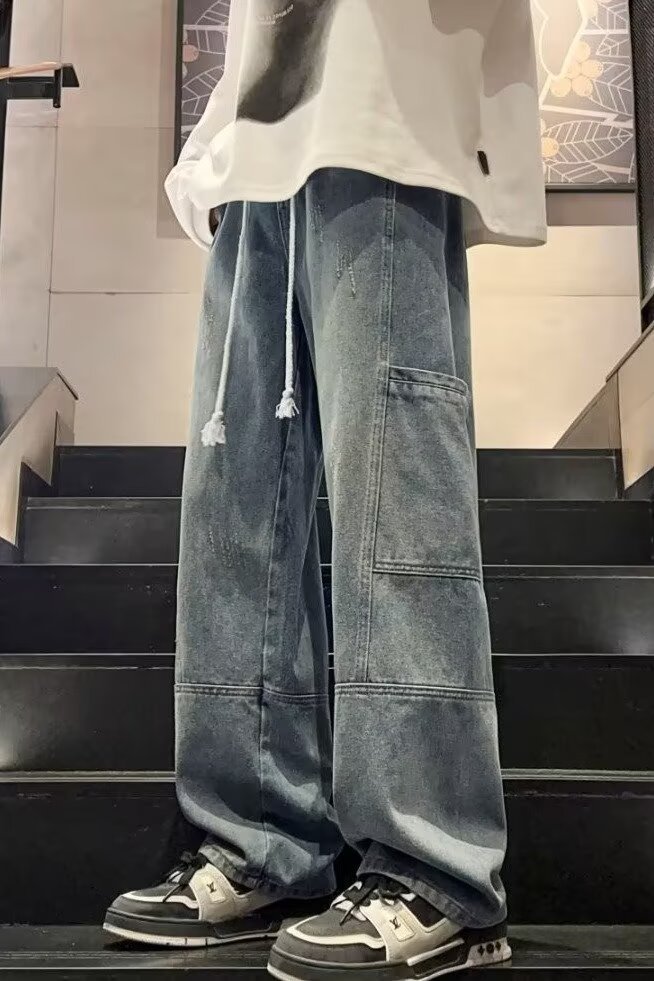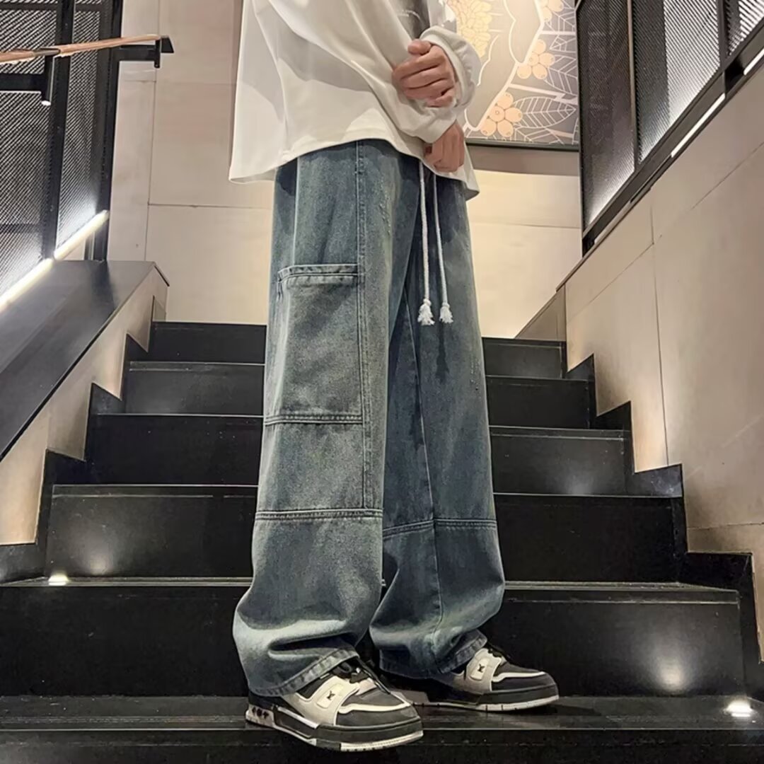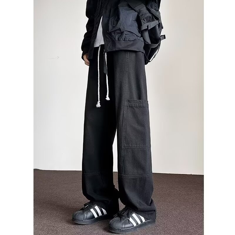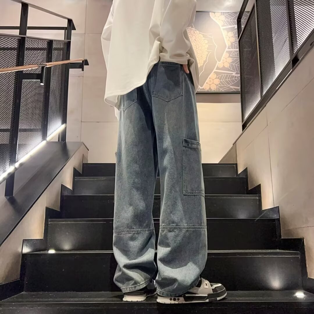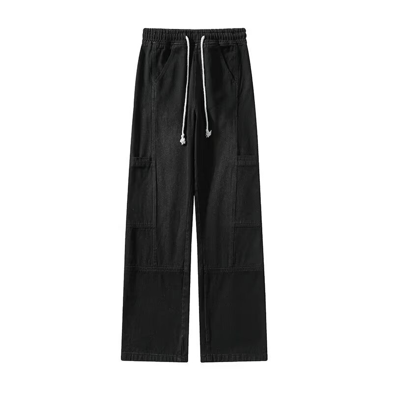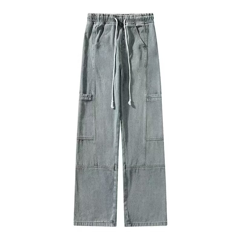 국경 간 멀티 포켓 테더 크레인 바지 남자 트렌디 브랜드 간단한 캐주얼 올 매치 바지 미국 와이드 레그 스트레이트 청바지