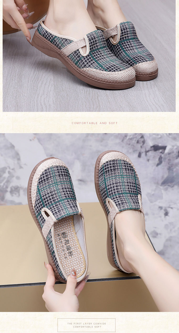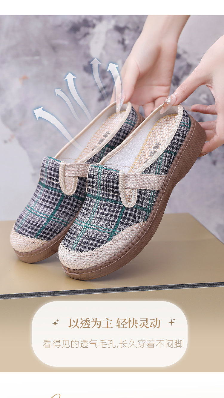 봄과 여름 오래 된 베이징 천 신발 여성의 부드러운 단독 통기성 유행 경량 캐주얼 슬립-온 어머니 신발 홈 여성용 하프 슬리퍼스토어 가기