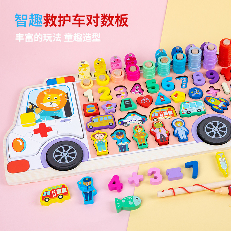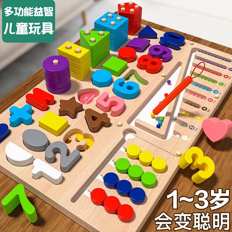 어린이 교육 완구 다기능 몬테소리 아기 퍼즐 스마트 로그 보드 구슬 모양 일치하는 보드 교육 인식스토어 가기