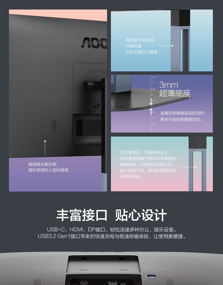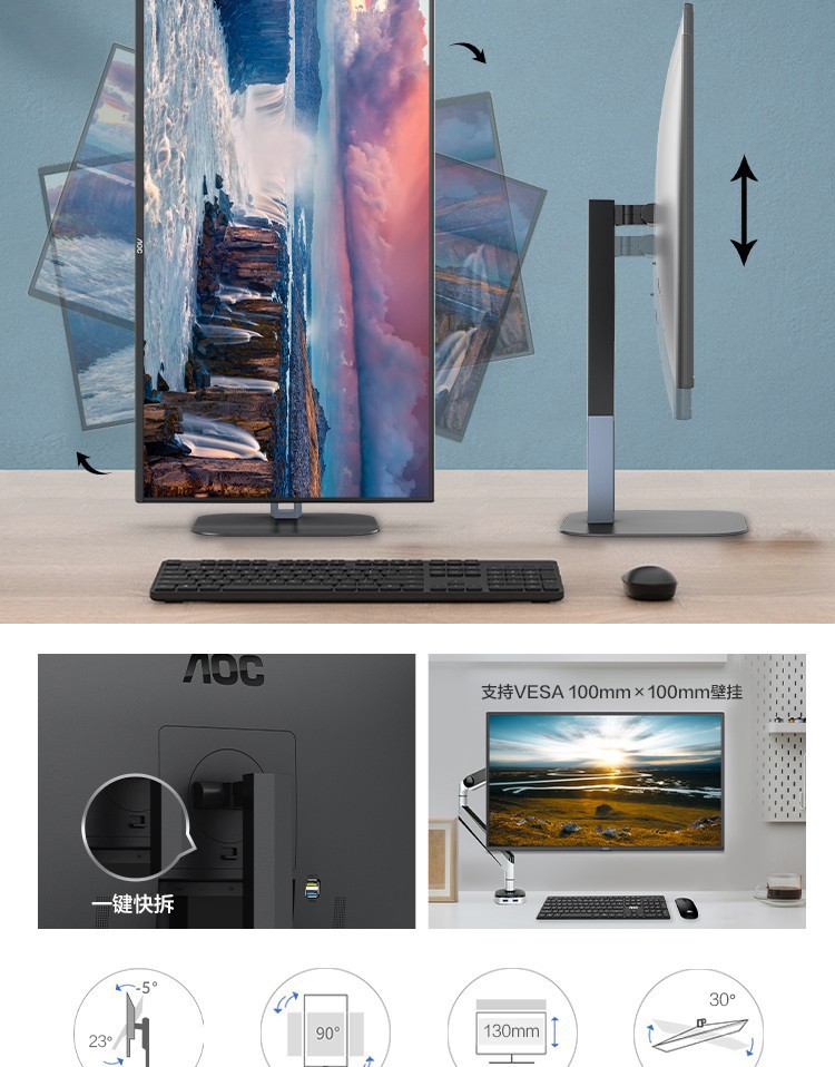 AOC V5 시리즈 컴퓨터 모니터 홈 오피스 전문 디자인 AH-IPS 스크린 회전 안티 블루 라이트 리프팅