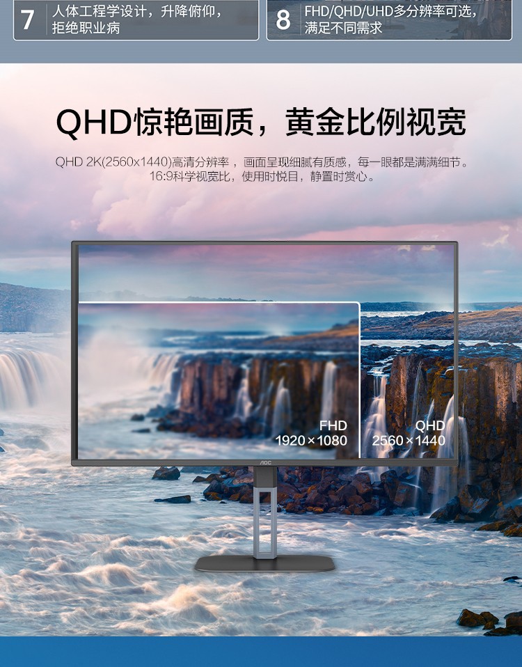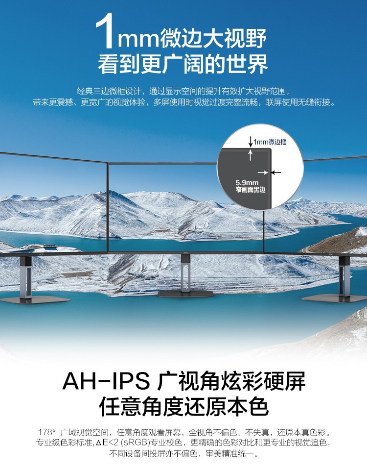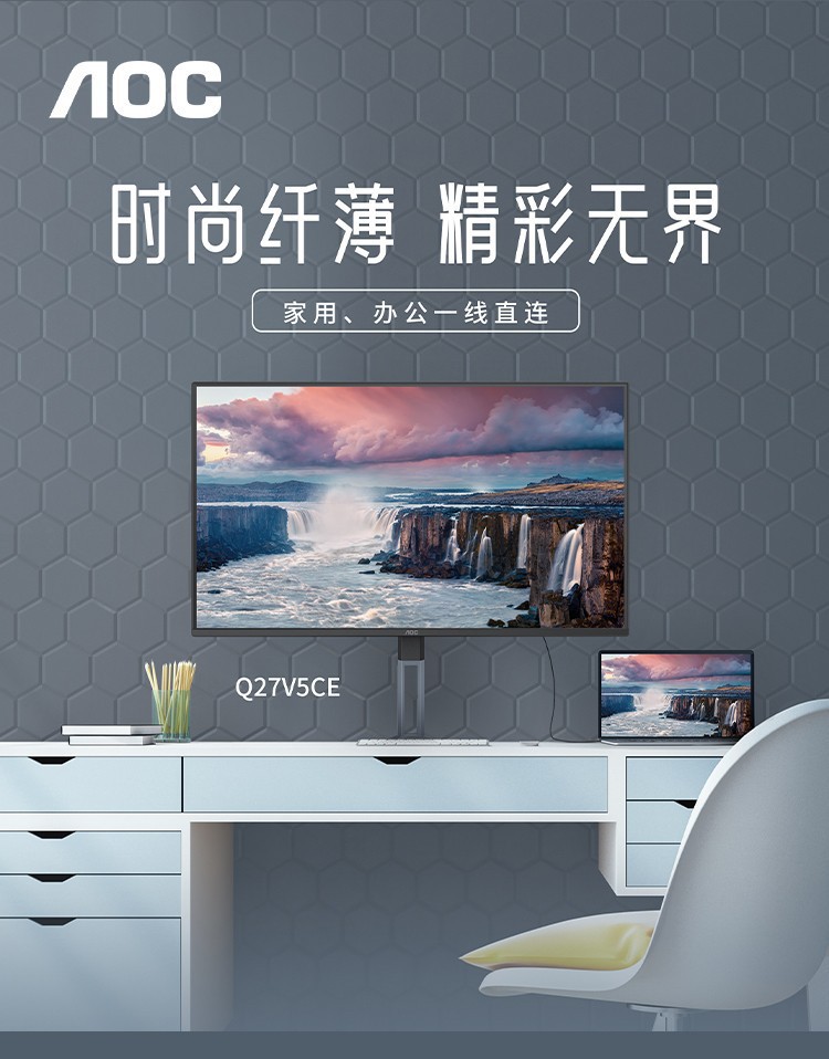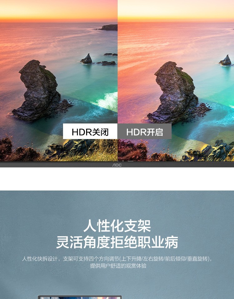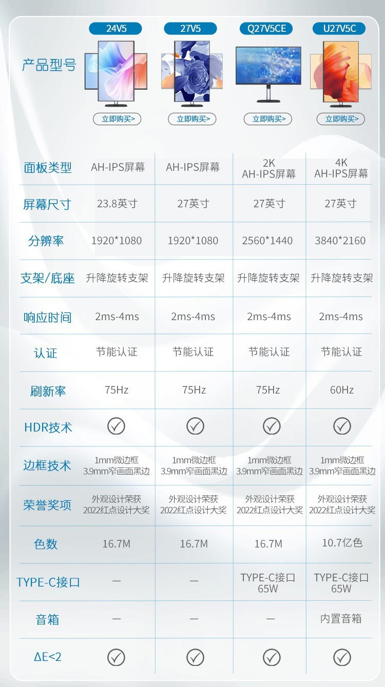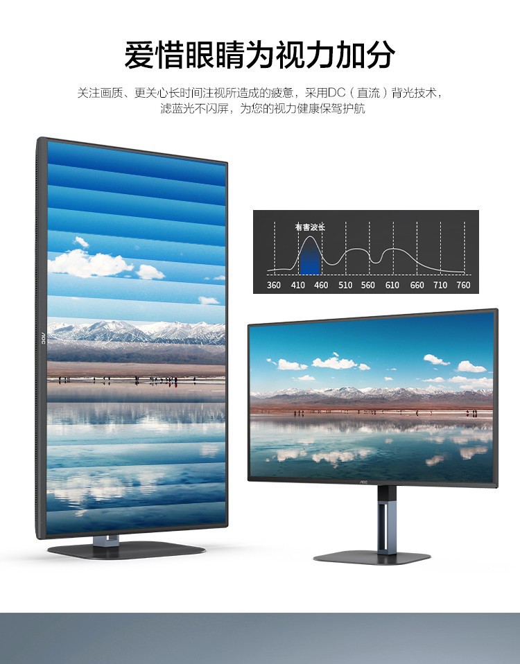 AOC V5 시리즈 컴퓨터 모니터 홈 오피스 전문 디자인 AH-IPS 스크린 회전 안티 블루 라이트 리프팅스토어 가기