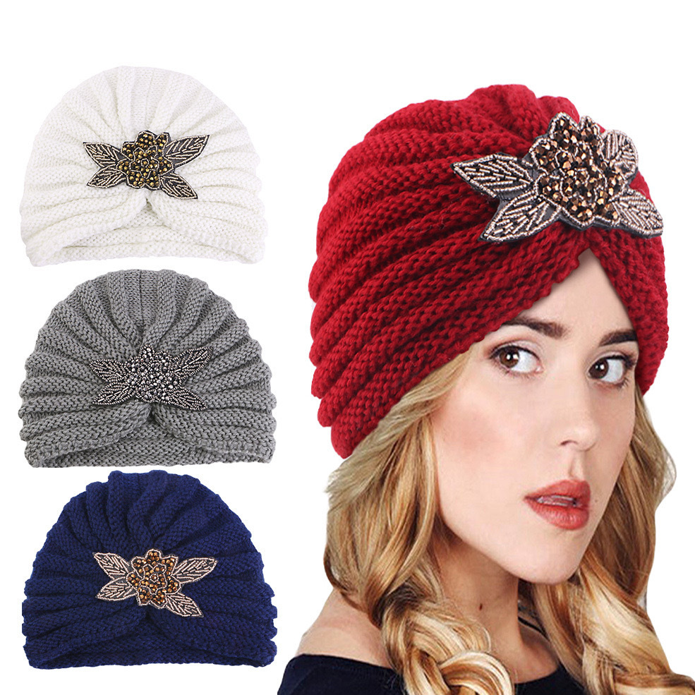 인도 모자 가을과 겨울 새로운 국경 겨울 4 잎 다이아몬드 니트 울 스카프 모자