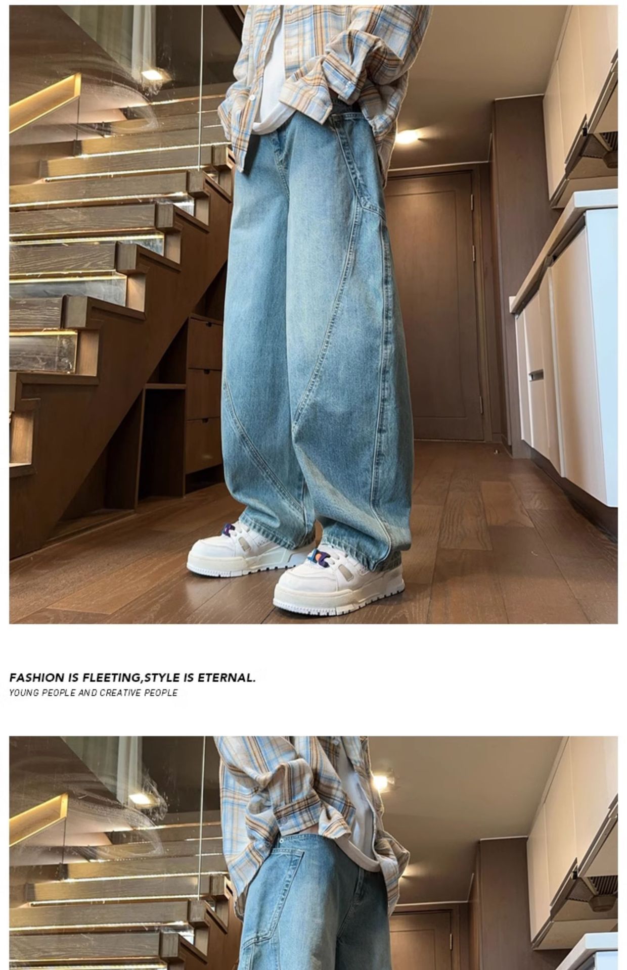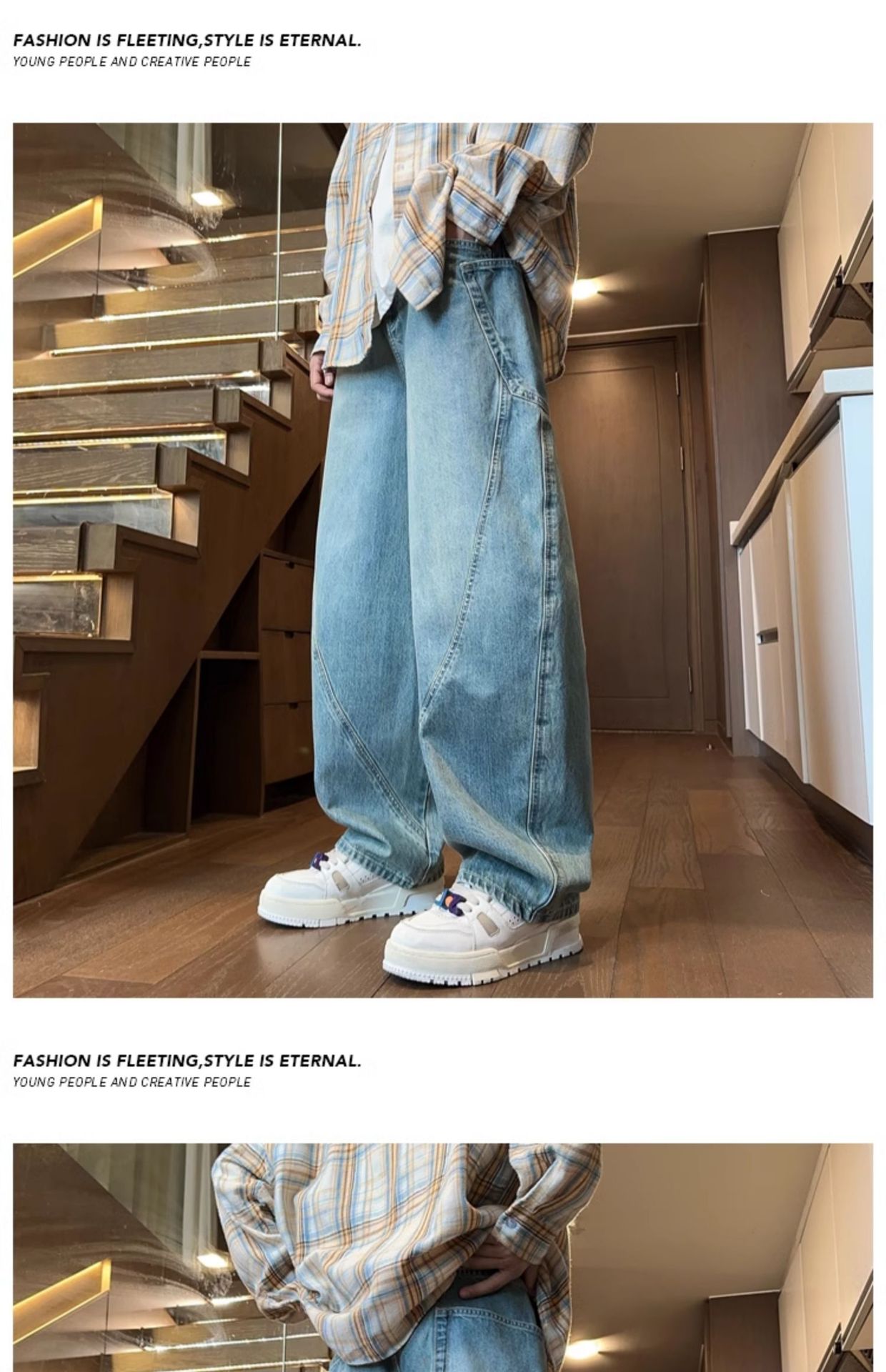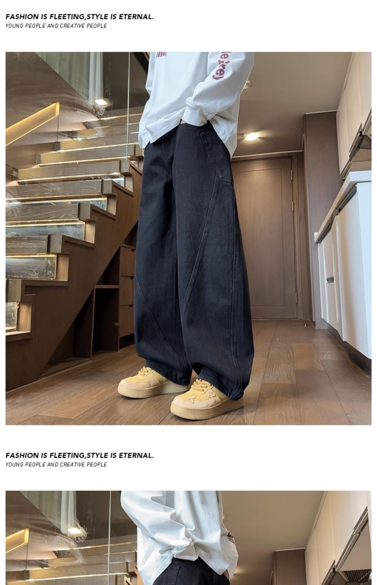 Machete 청바지 남성 가을과 겨울 유행 미국 스타일 복고풍 넓은 다리 바지 느슨한 스트레이트 세척 사용 작업복스토어 가기