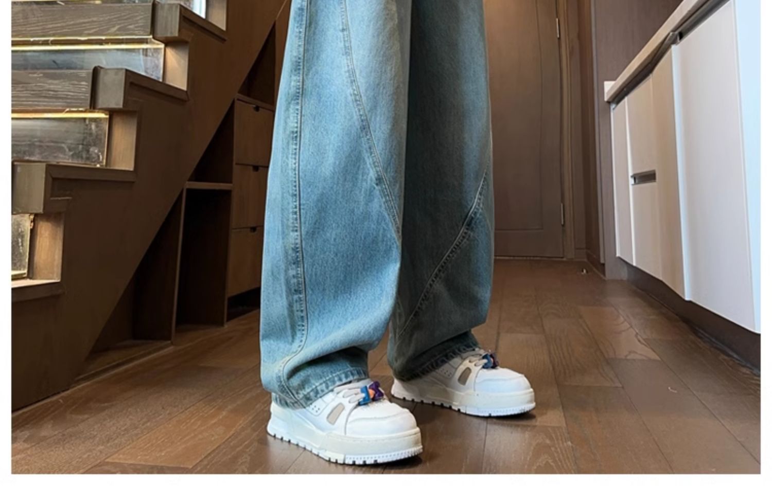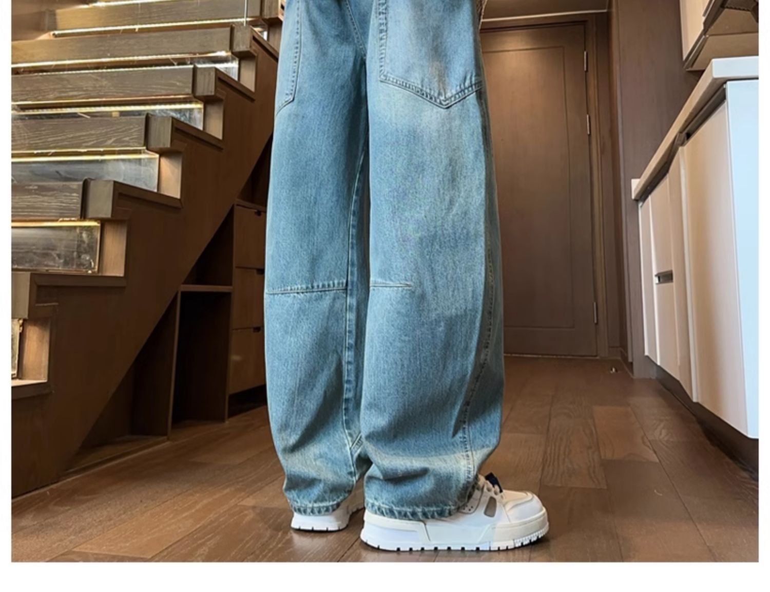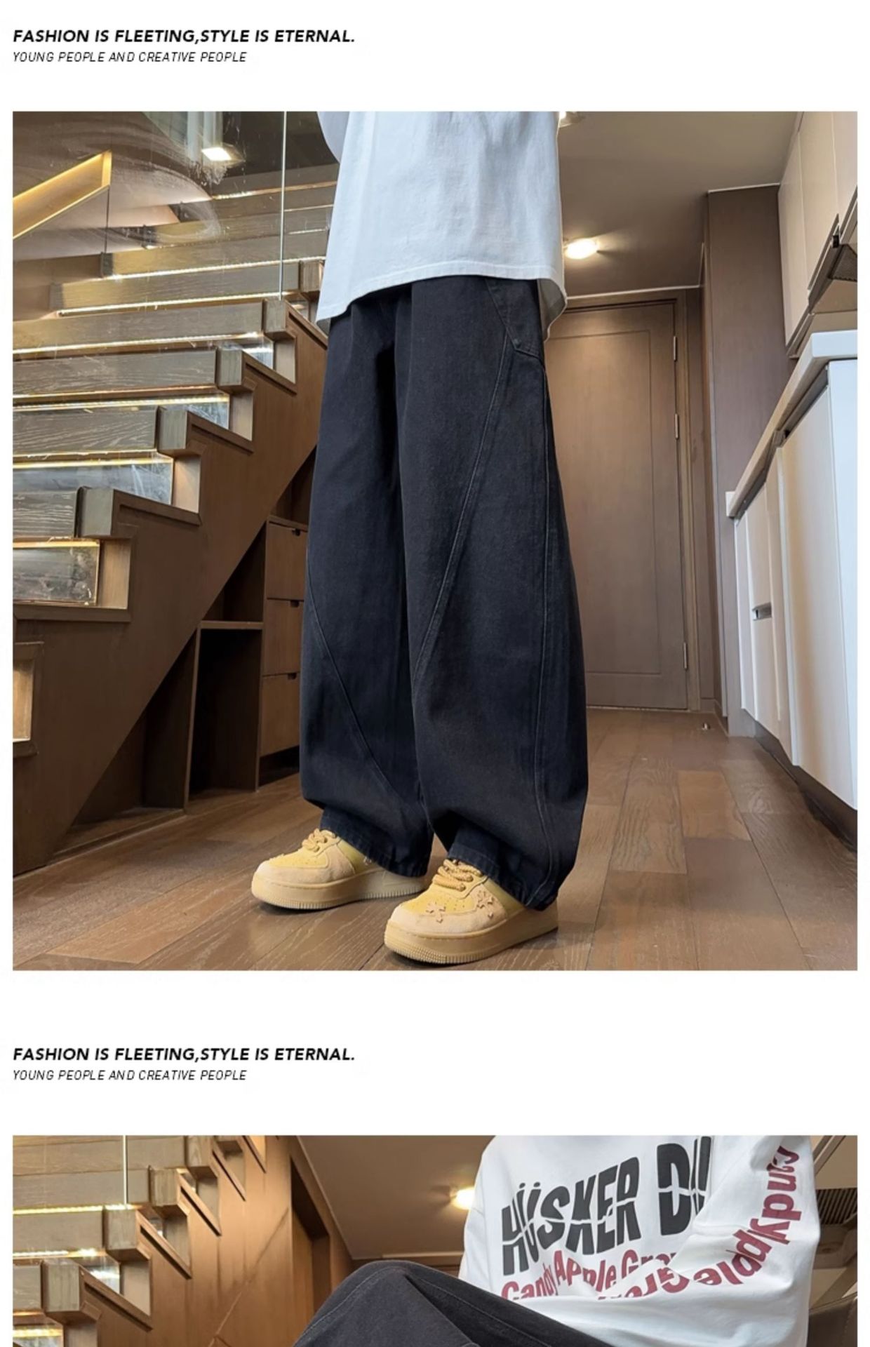 Machete 청바지 남성 가을과 겨울 유행 미국 스타일 복고풍 넓은 다리 바지 느슨한 스트레이트 세척 사용 작업복스토어 가기