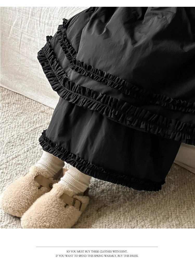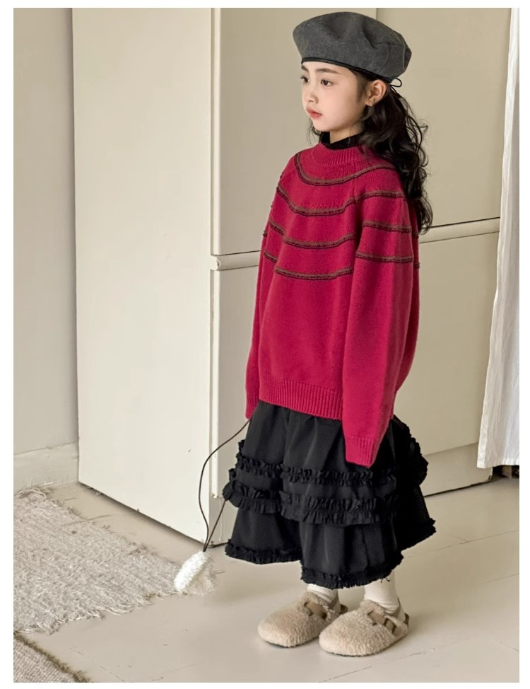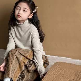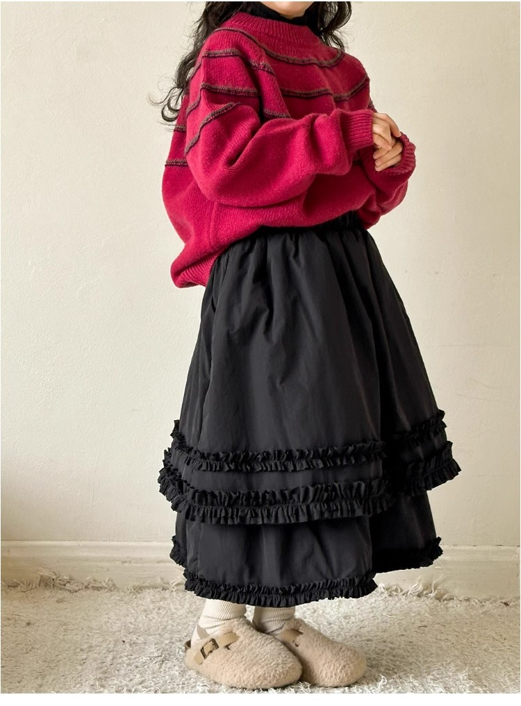 소녀 스커트 가을과 겨울 2024 새로운 어린이 두꺼운 코튼 스커트 캐주얼 긴 스커트 큰 어린이 레이스 공주 스커트스토어 가기