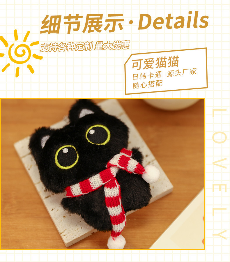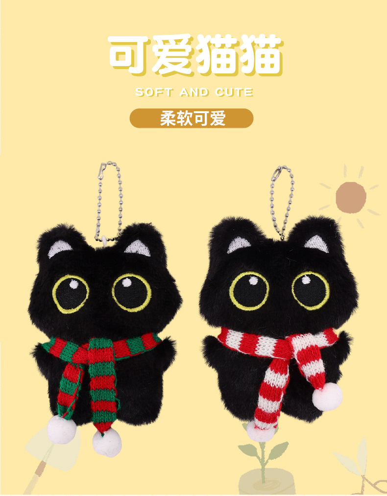 귀여운 봉제 큰 눈 검은 고양이 인형 펜던트 소녀 펜던트 가방 삐걱 거리는 열쇠 고리 Diy스토어 가기