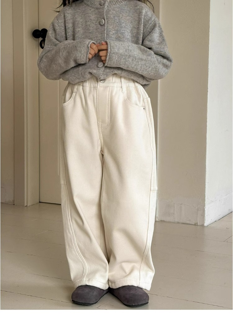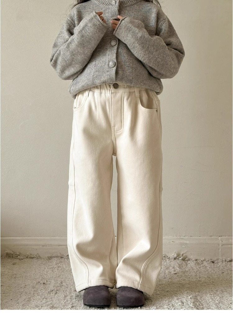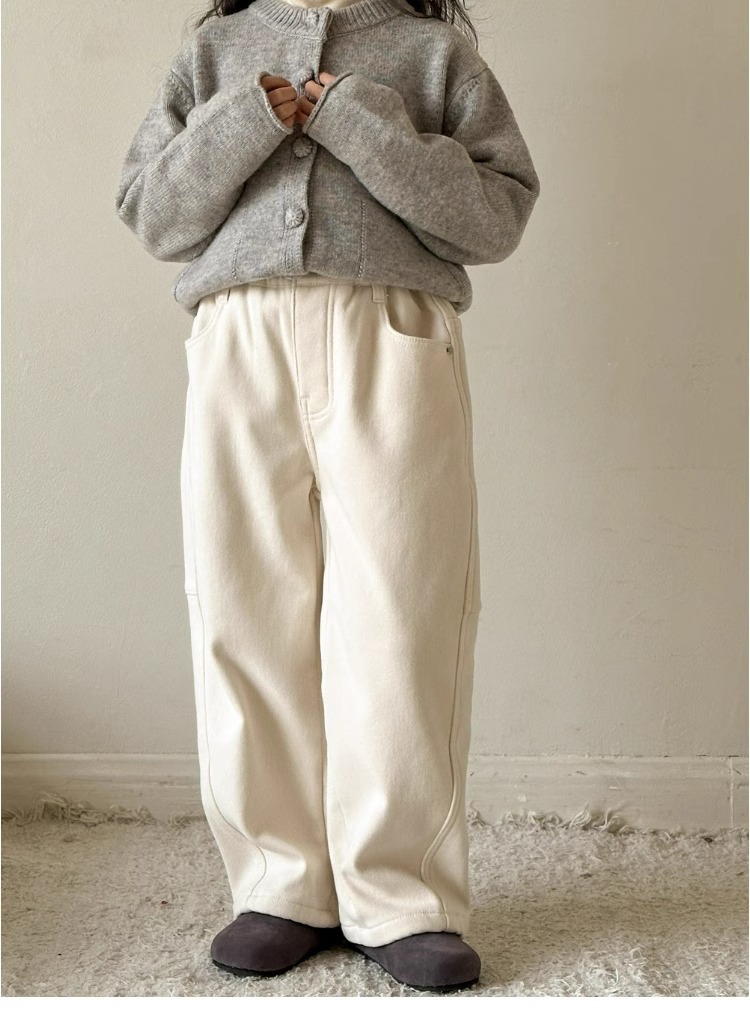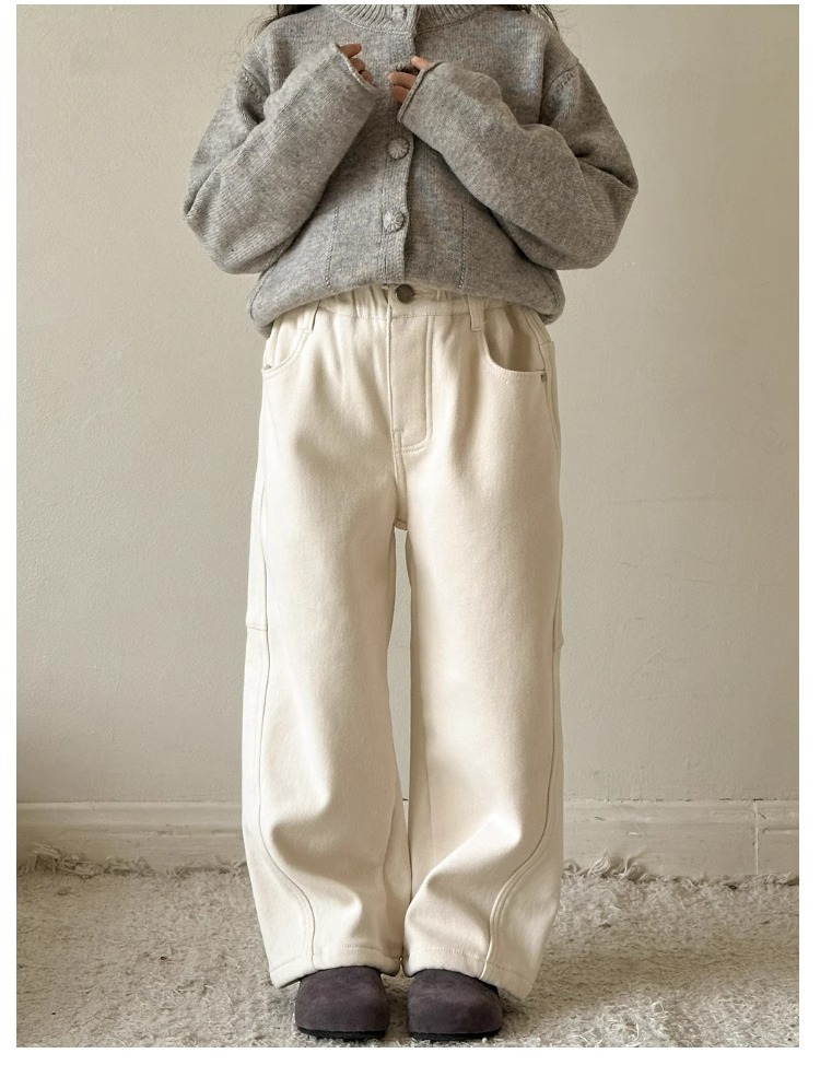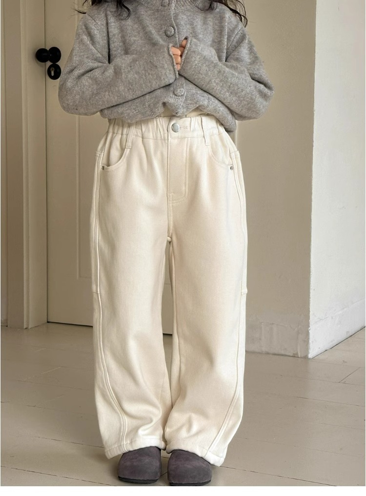 여아용 플리스 바지 2025 가을 겨울 신상 아동 캐주얼 일자 바지 겨울 중대형 아동용 플리스 데님 팬츠