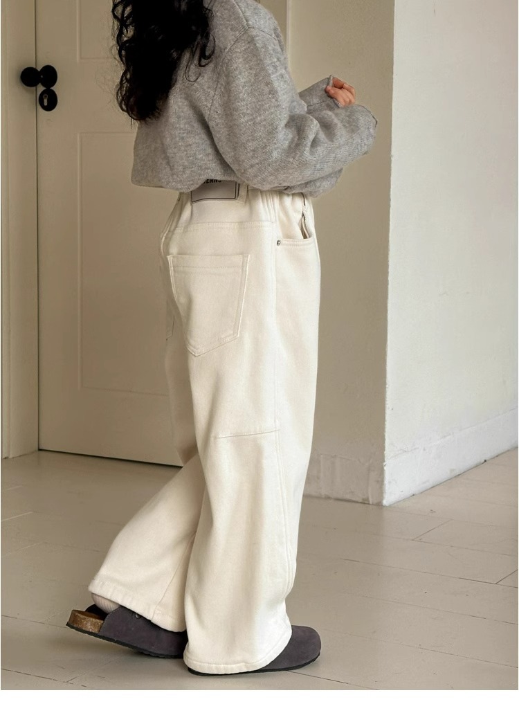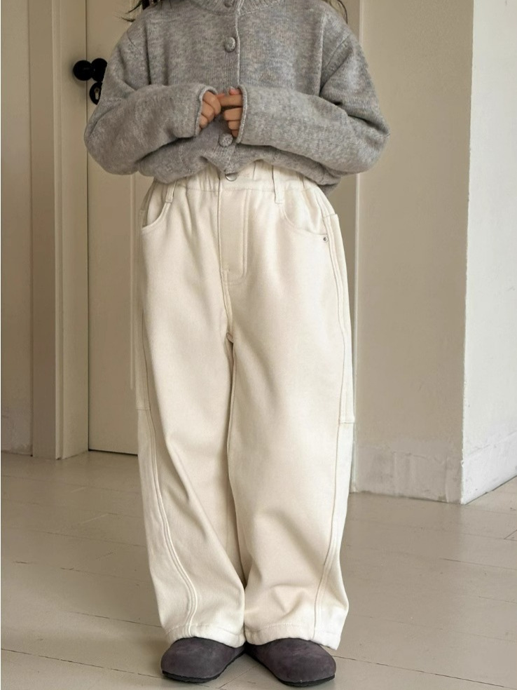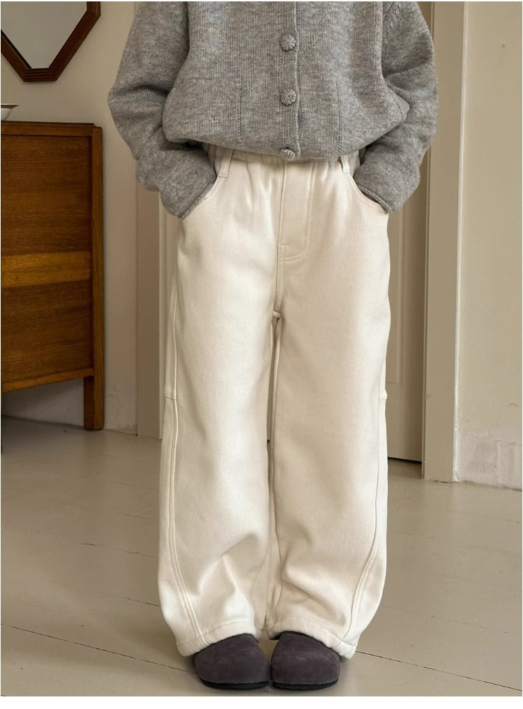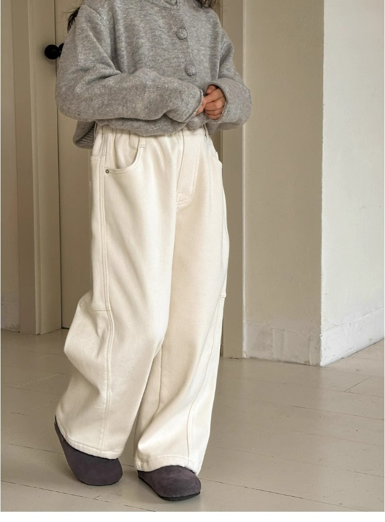 여아용 플리스 바지 2025 가을 겨울 신상 아동 캐주얼 일자 바지 겨울 중대형 아동용 플리스 데님 팬츠