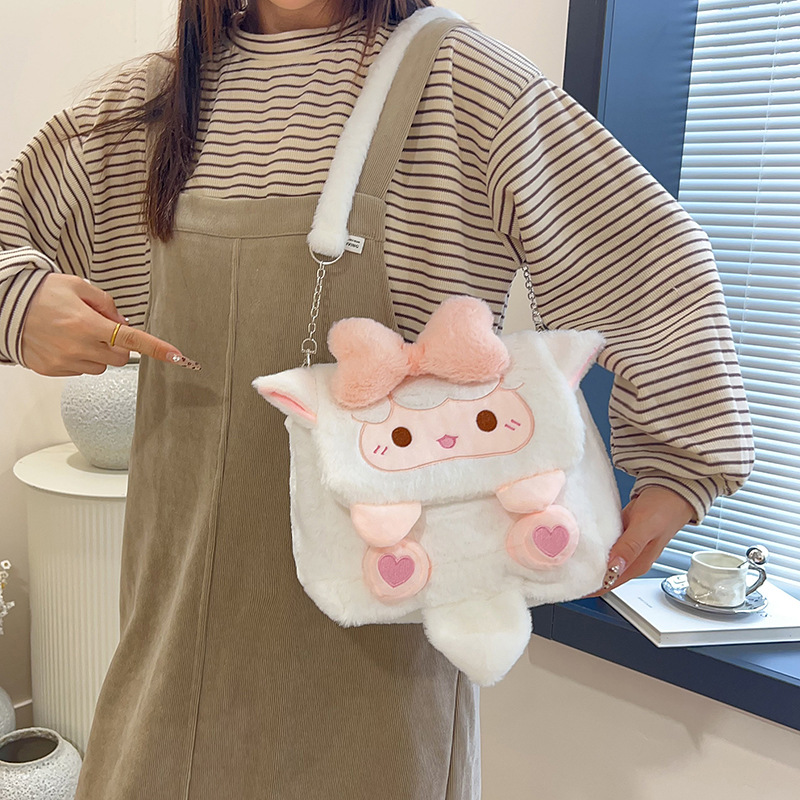 귀여운 활 작은 양고기 봉제 인형 크로스 바디 가방 소녀의 부드러운 심장 귀여운 만화 학생 어깨 보관 가방스토어 가기