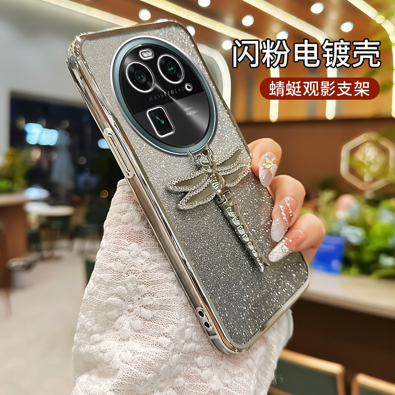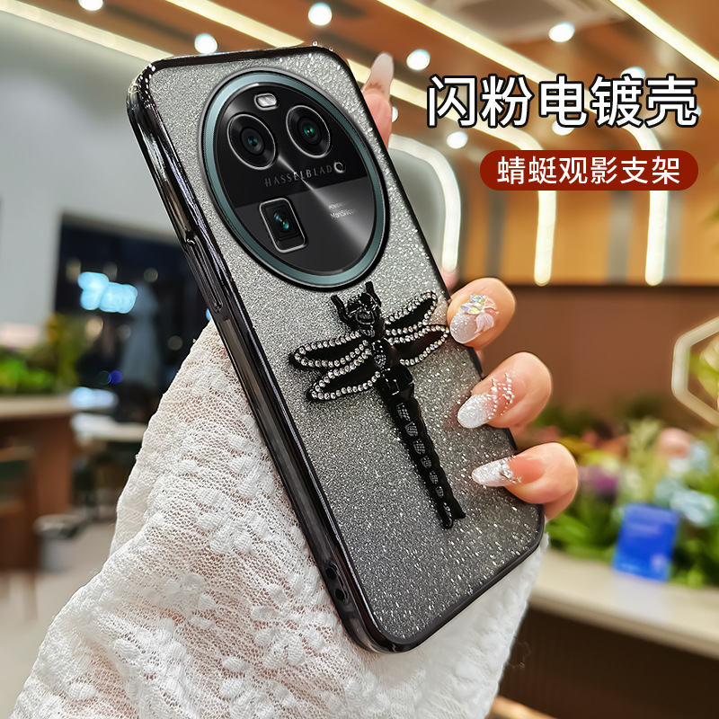 适用华为Pura70手机壳水钻蜻蜓支架电镀闪粉TPU防摔mate70PRO全包