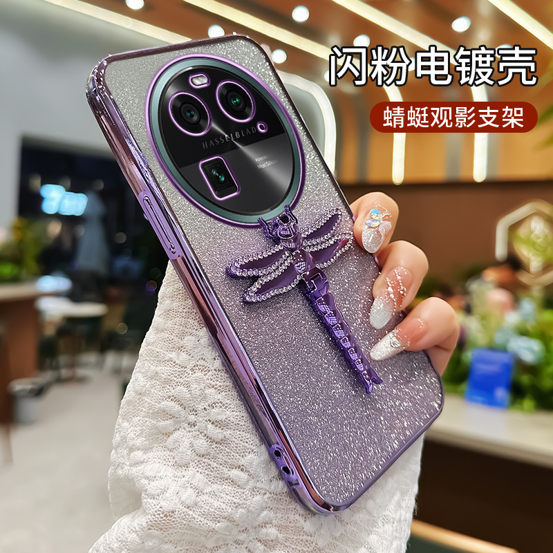 Oppofinddx8 전화 케이스 용 findx7 보호 케이스 findx6 전기 도금 그라디언트 반짝이 투명 케이스 홀더스토어 가기