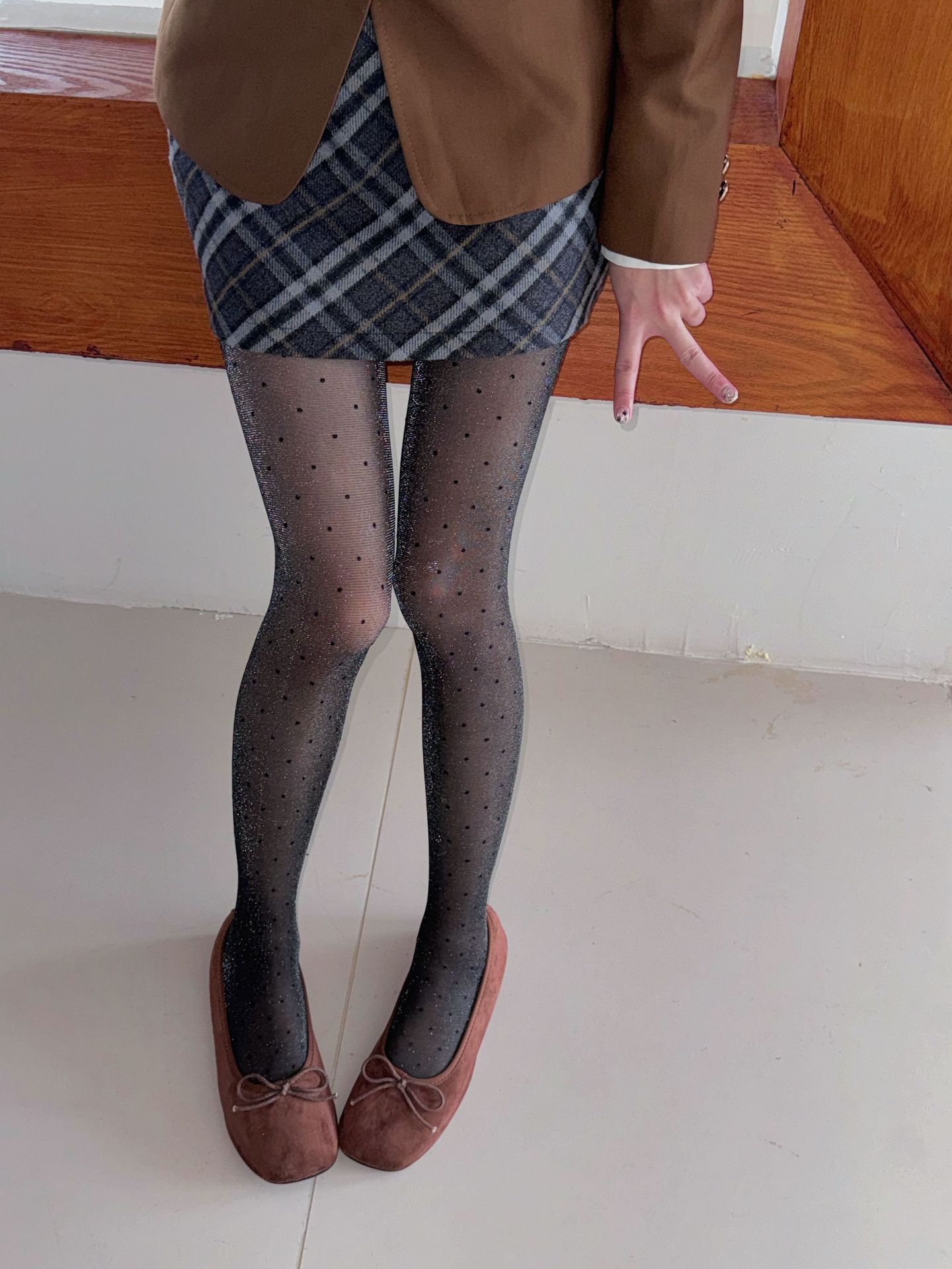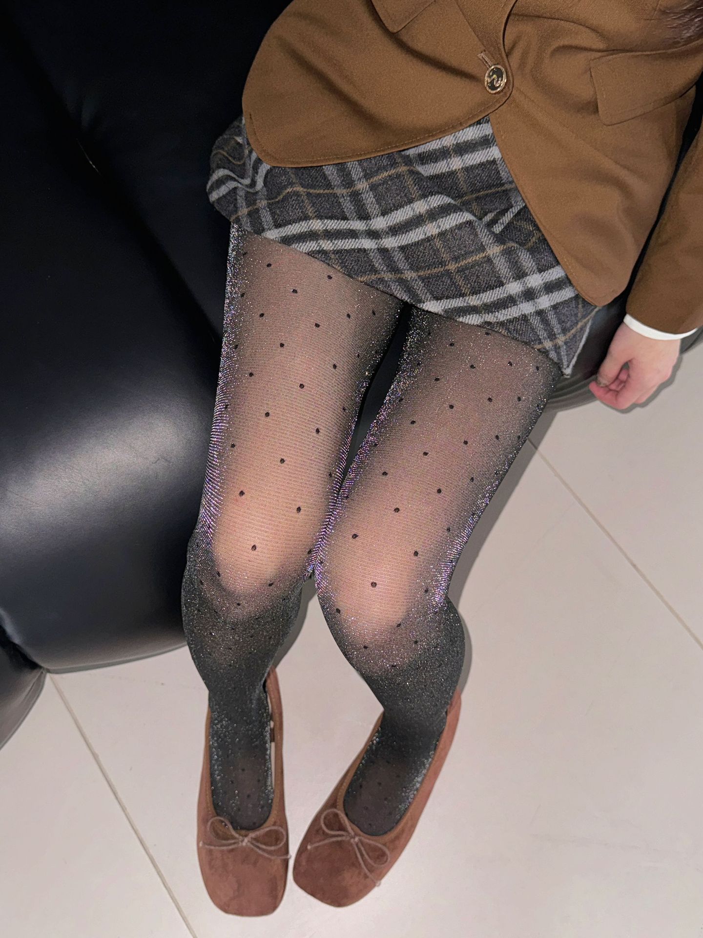 봄 새로운 소녀의 감각 플래시 실버 작은 웨이브 도트 실크 스타킹 블랙 실크베이스 팬티 스타킹