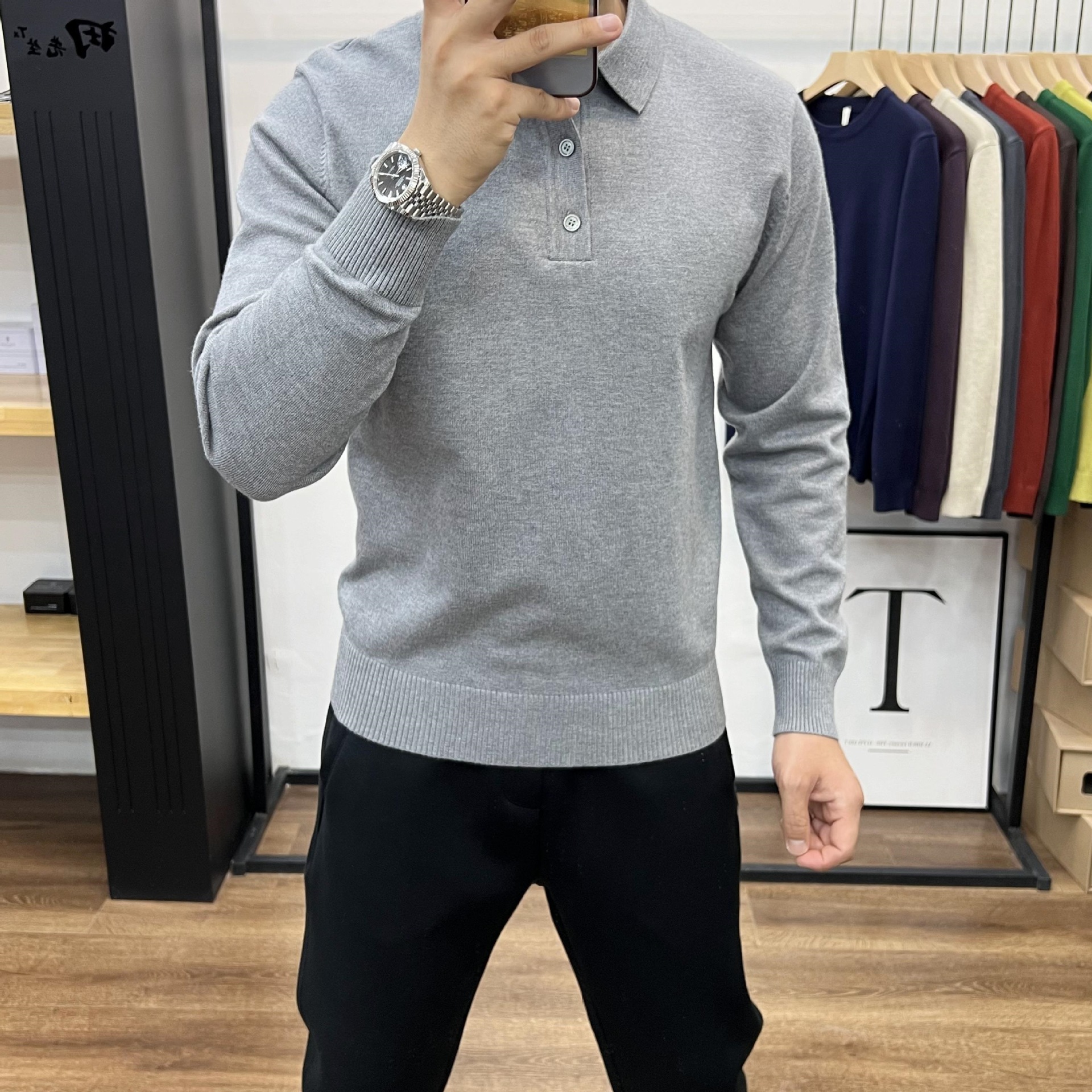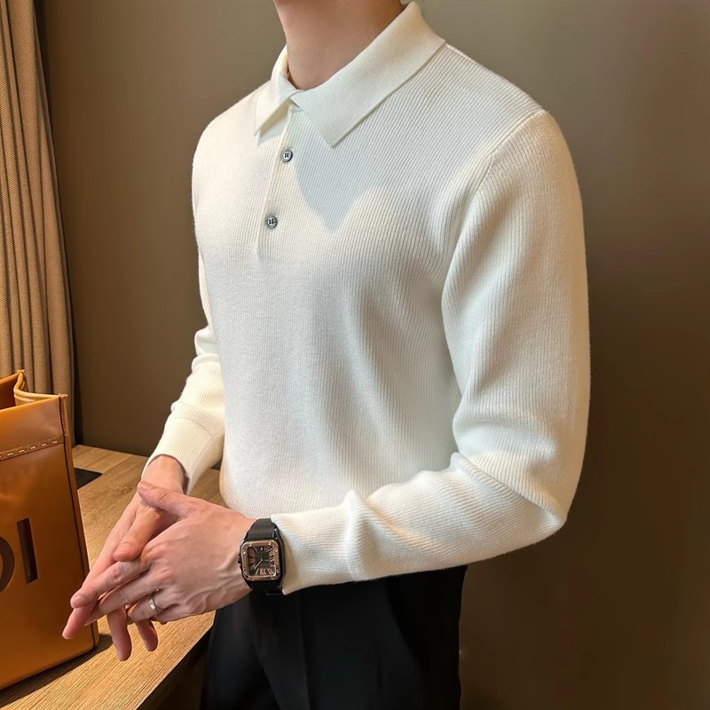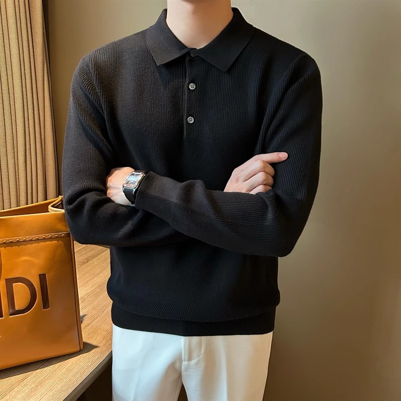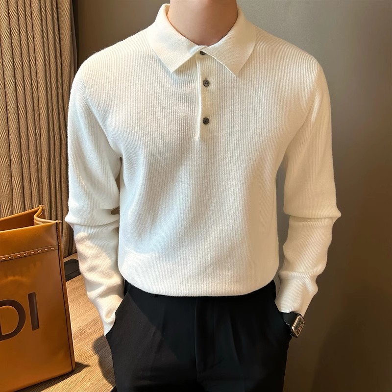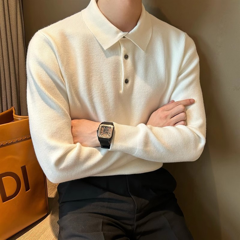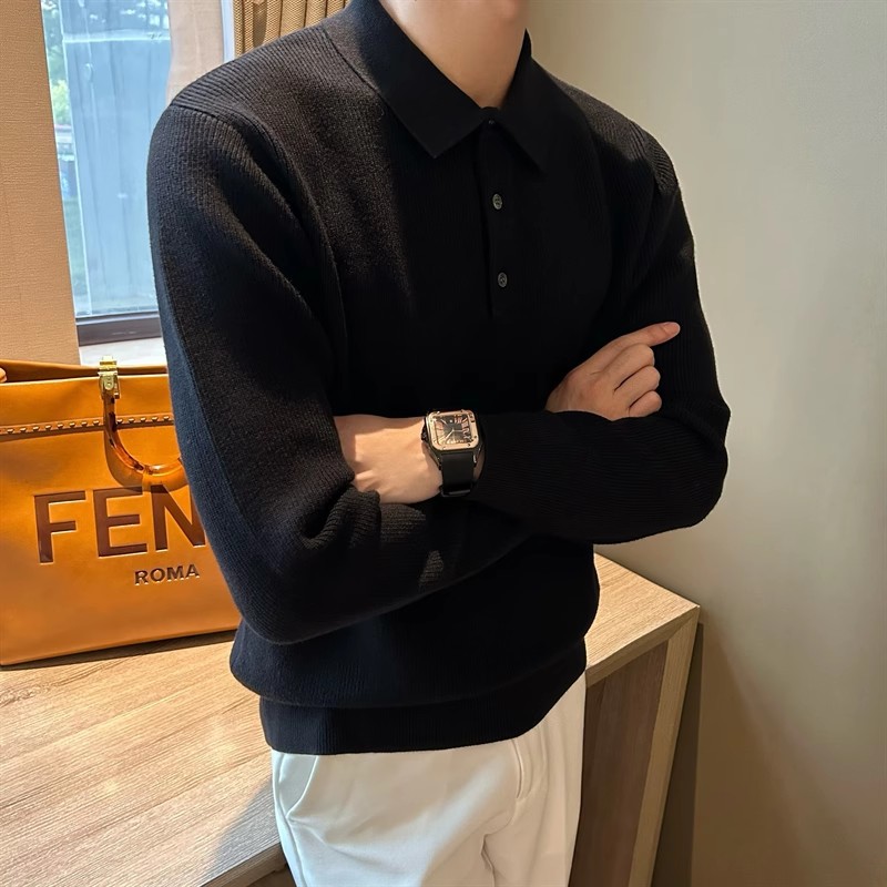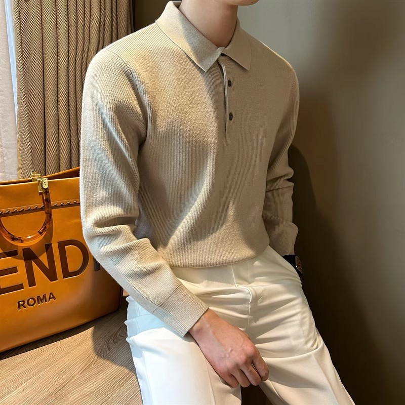 2025 봄 솔리드 컬러 슬림 핏 슬림 텍스처 래셔 남성 울 탑 간단한 클리어 컬러 라이트 성숙한 긴팔 폴로 스웨터스토어 가기