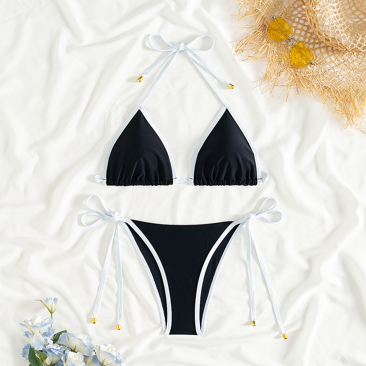 25 새로운 유럽과 미국의 섹시한 레이스 업 삼각형 가방 비키니 대외 무역 아마존 국경 여성 해변 수영복 공장 재고