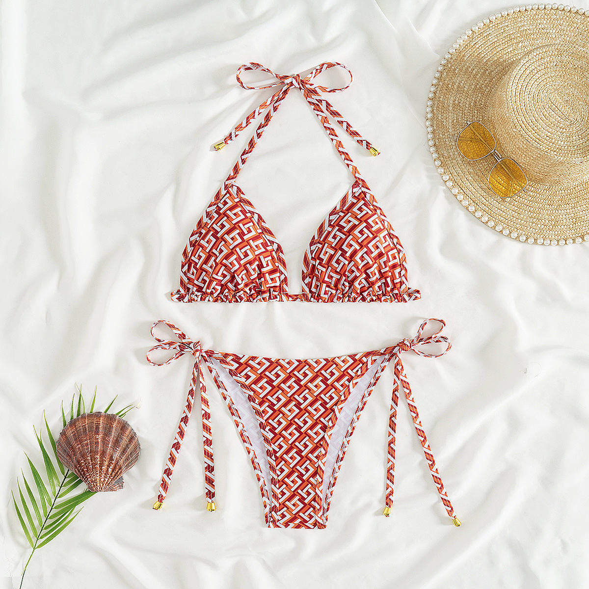 25 새로운 유럽과 미국의 섹시한 레이스 업 삼각형 가방 비키니 대외 무역 아마존 국경 여성 해변 수영복 공장 재고스토어 가기