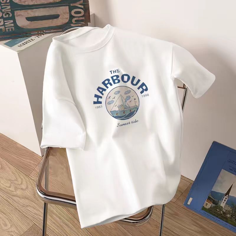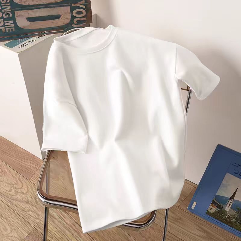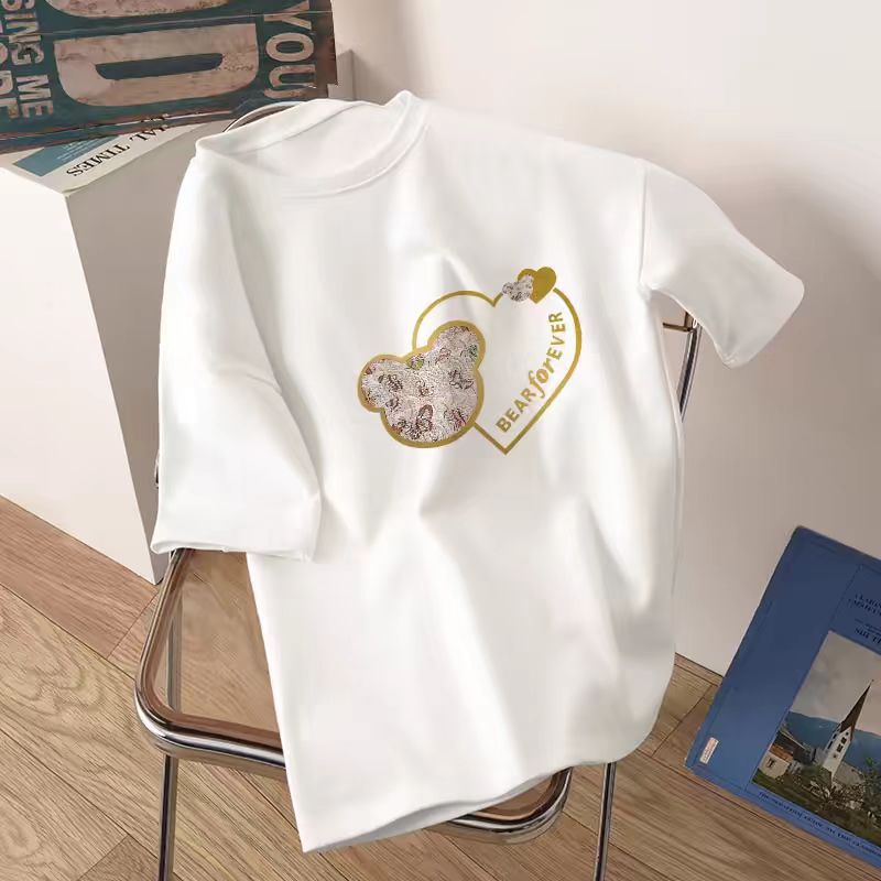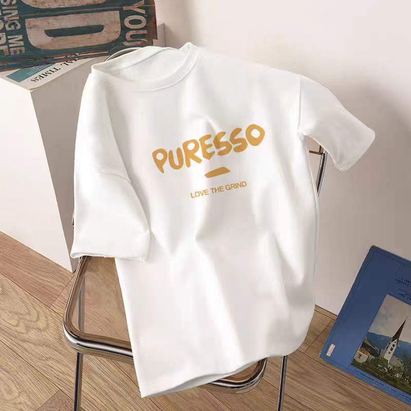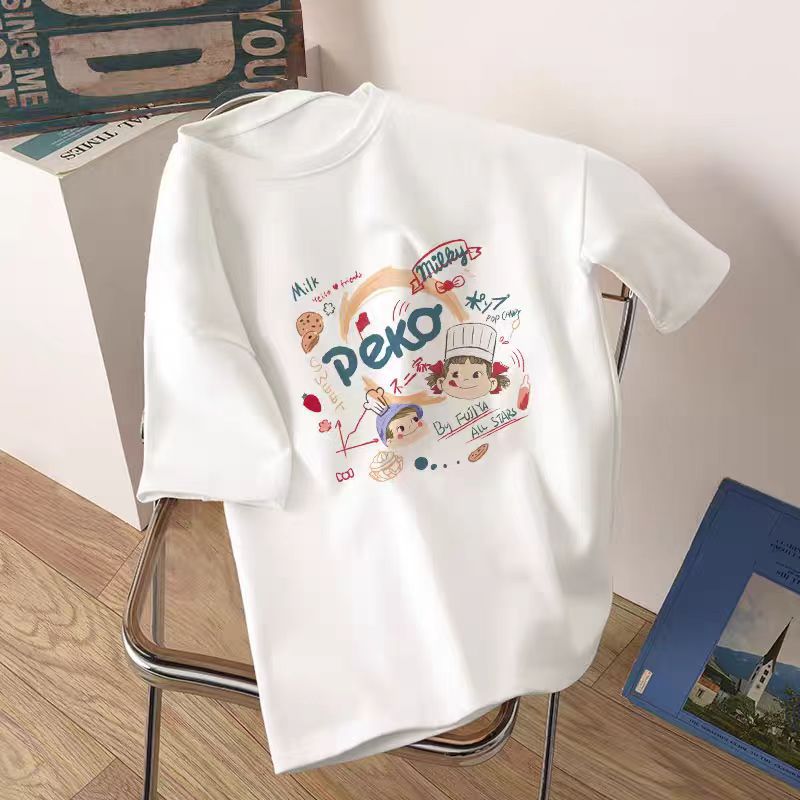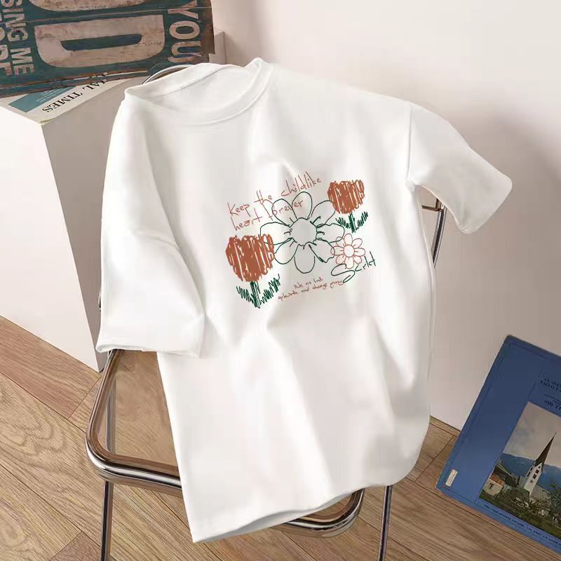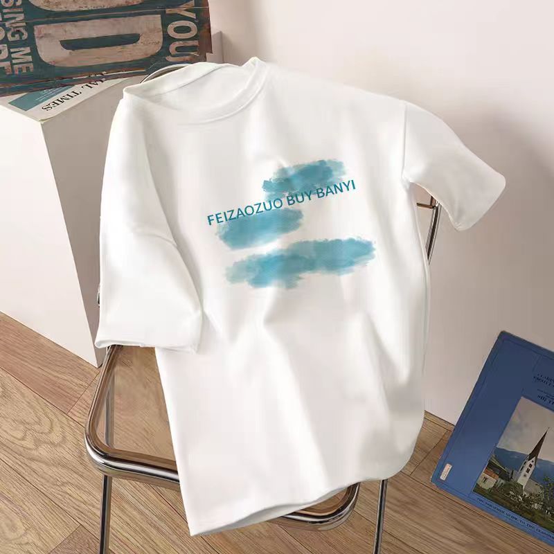 어깨 반팔 흰색면 티셔츠 여성용 둥근 목 여름 내면베이스 셔츠 느슨한 플러스 사이즈 간단한 작은 인쇄 트렌디스토어 가기