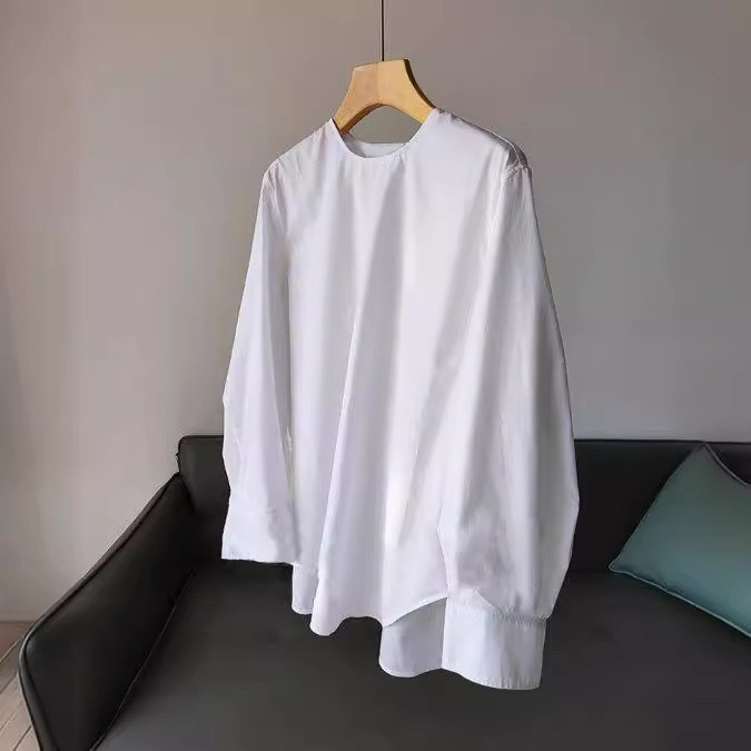 재고 패션 캐주얼 ~ 느슨하고 편안한 라운드 넥 긴 소매 단색 여성용 셔츠 슬리밍 웨스턴 스타일스토어 가기