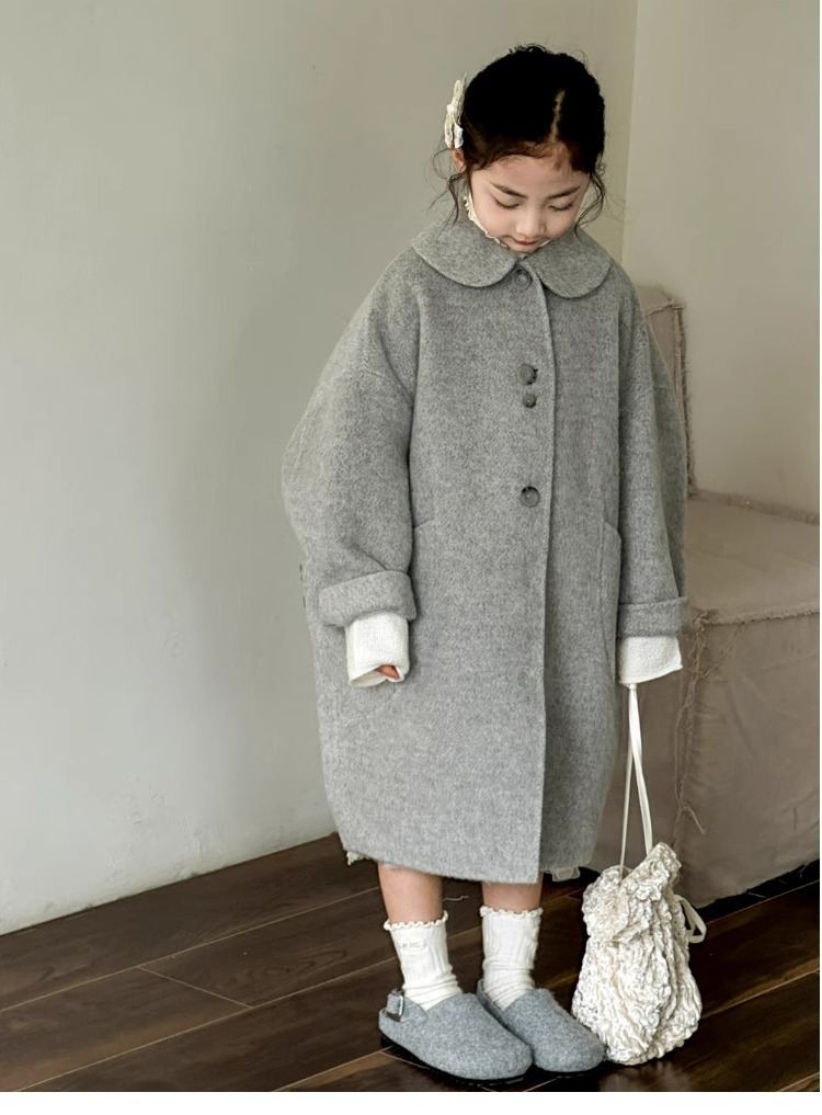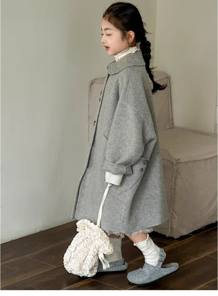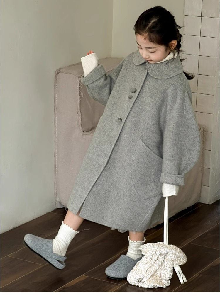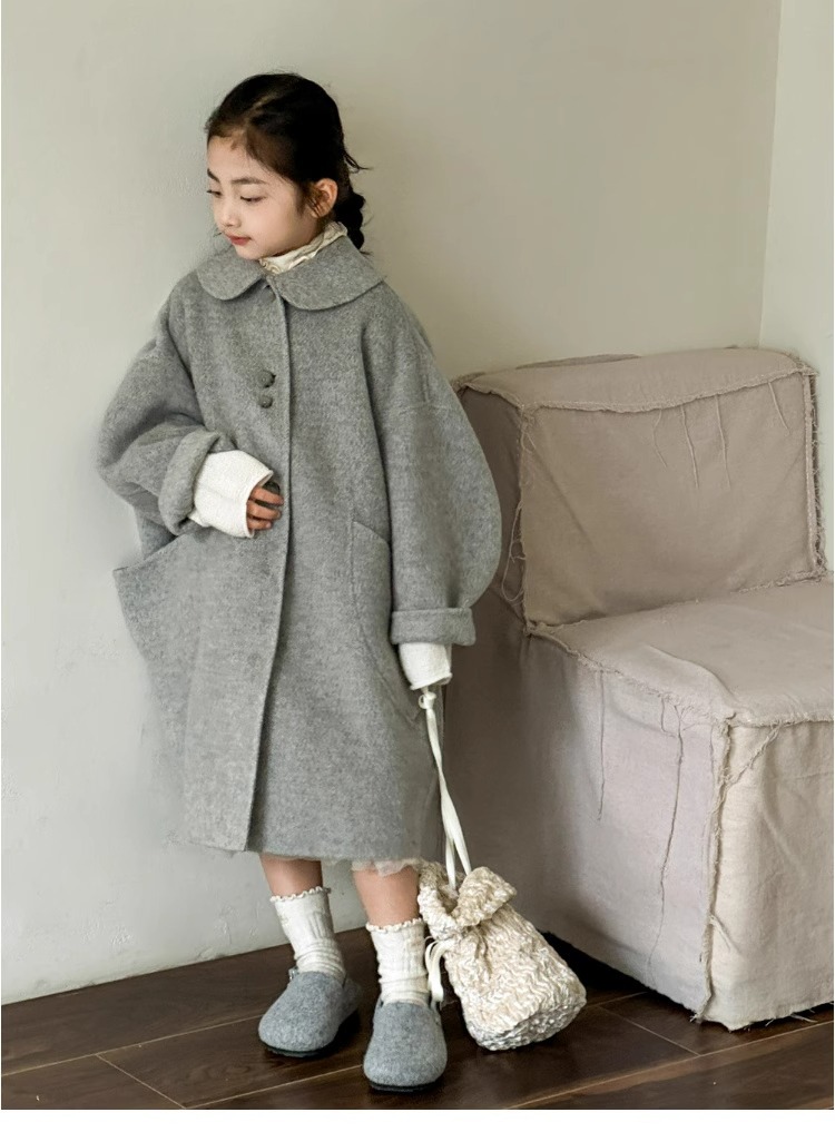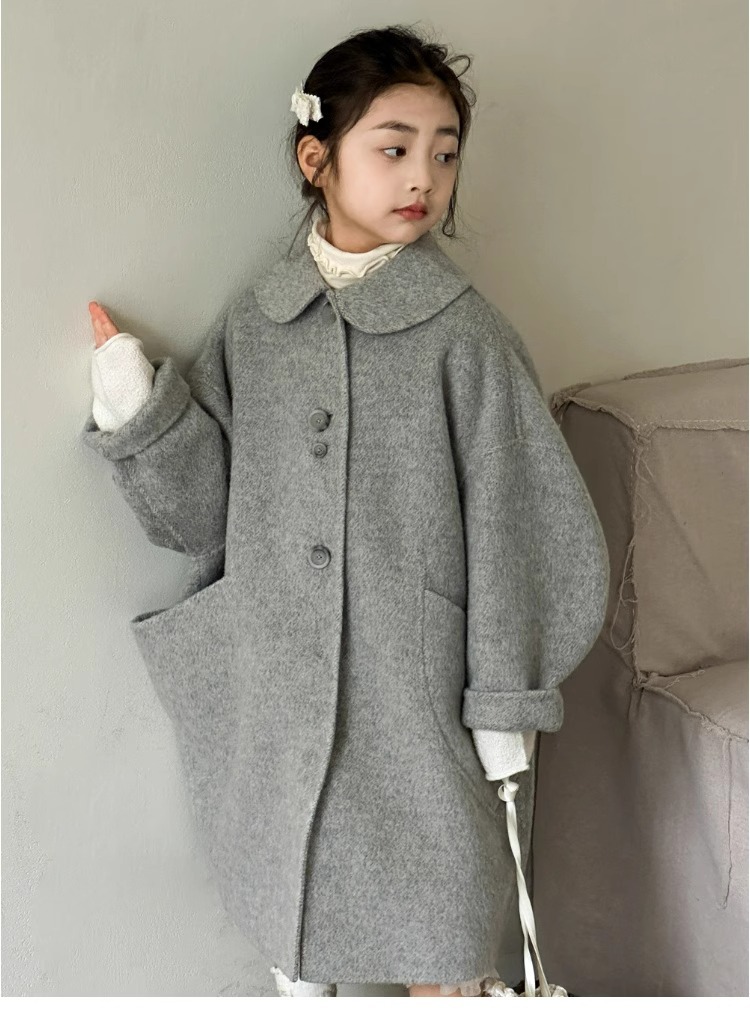 여아 코트 가을 겨울 2025 새로운 아동 실루엣 중간 길이 벨벳 코트 중대형 아동 인형 칼라 탑스토어 가기