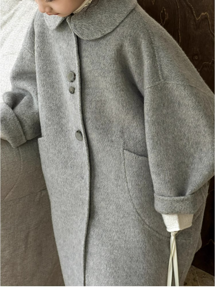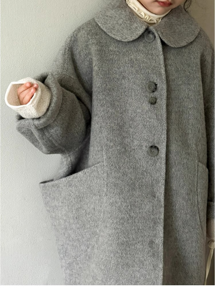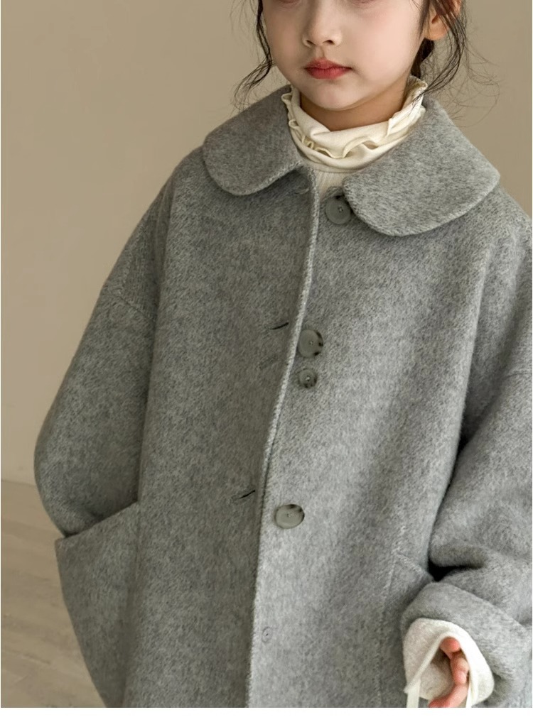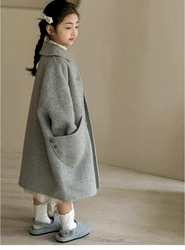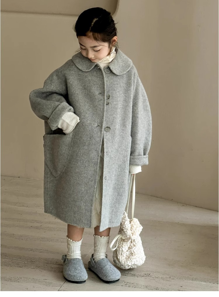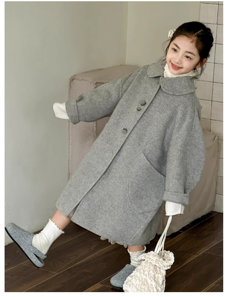 여아 코트 가을 겨울 2025 새로운 아동 실루엣 중간 길이 벨벳 코트 중대형 아동 인형 칼라 탑스토어 가기