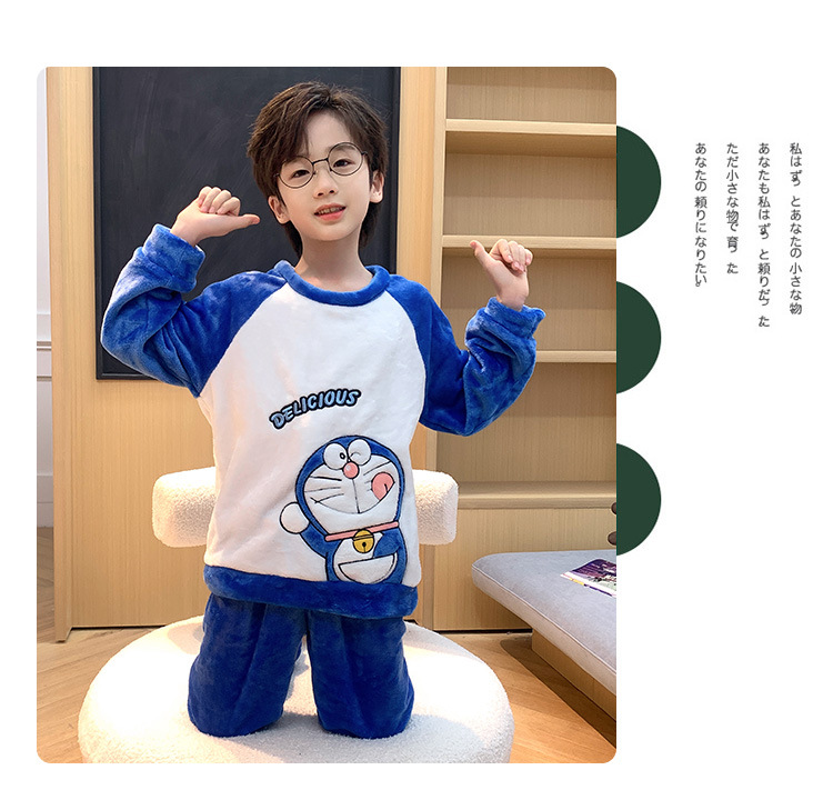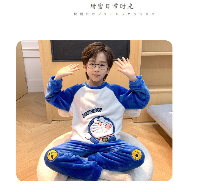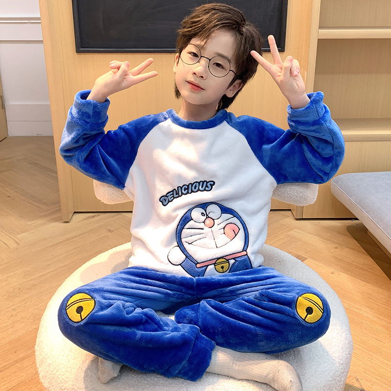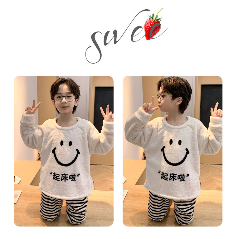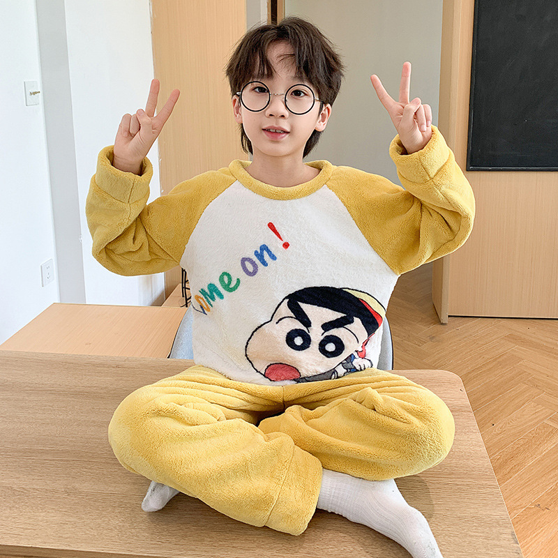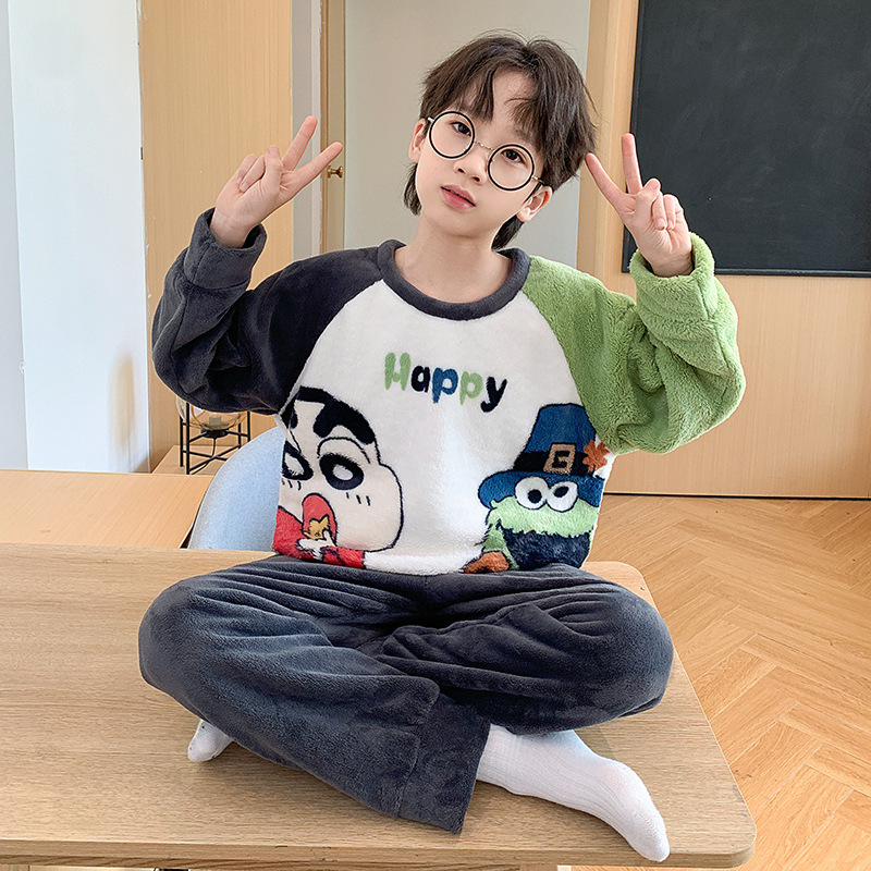 어린이 산호 양털 겨울 잠옷 소년의 두꺼운 플란넬 기모 소년의 따뜻한 큰 어린이 가정 옷 세트