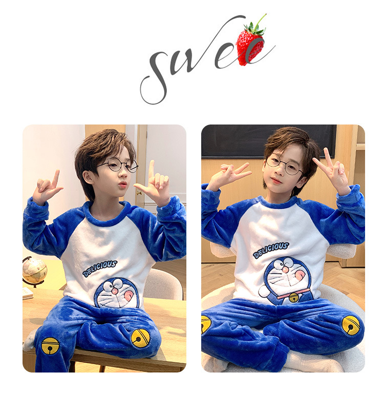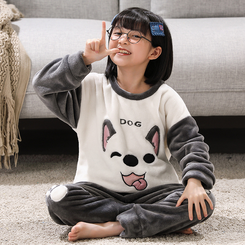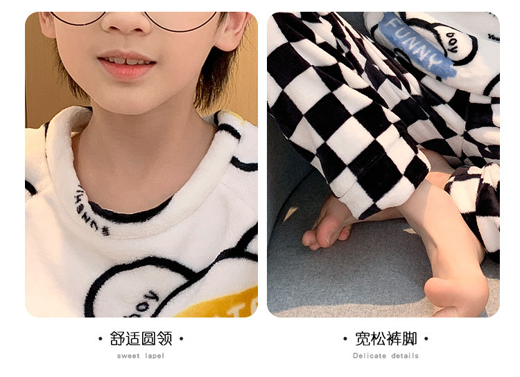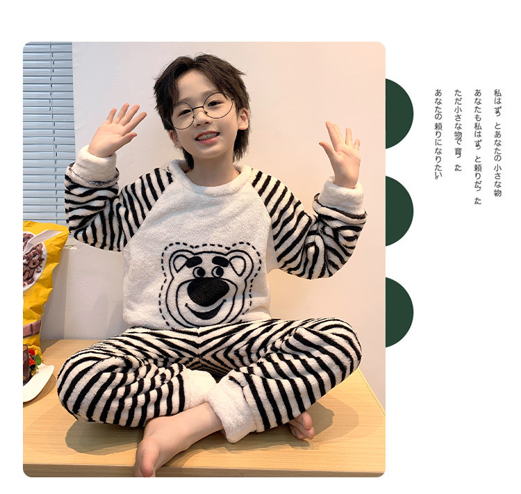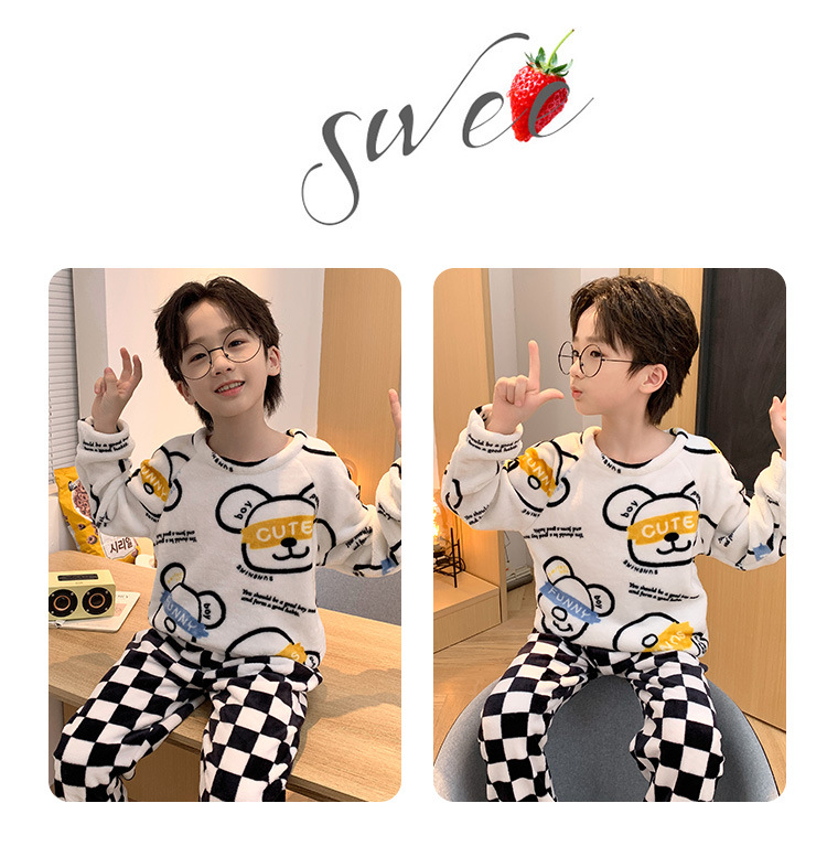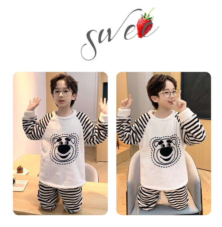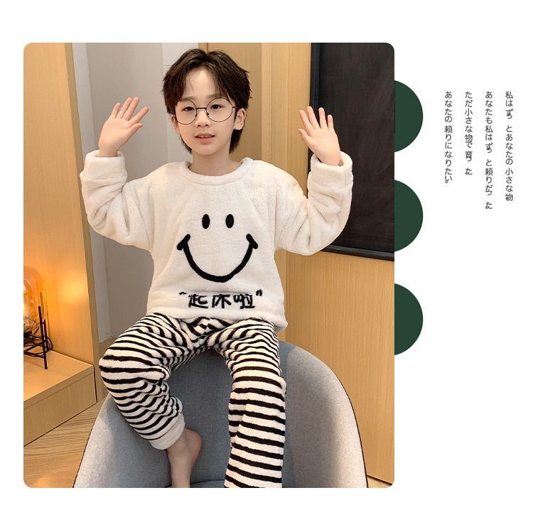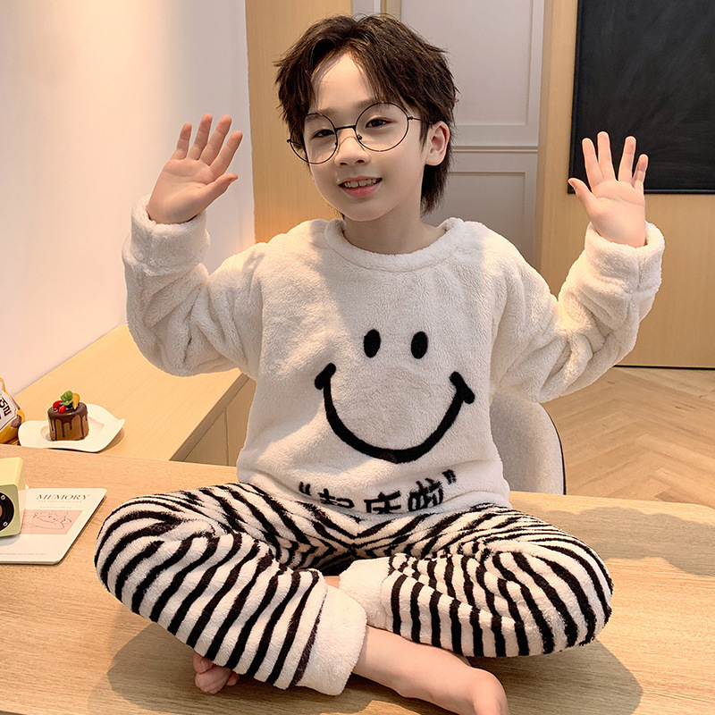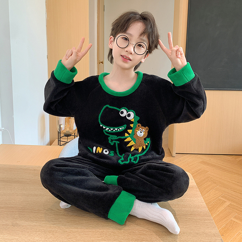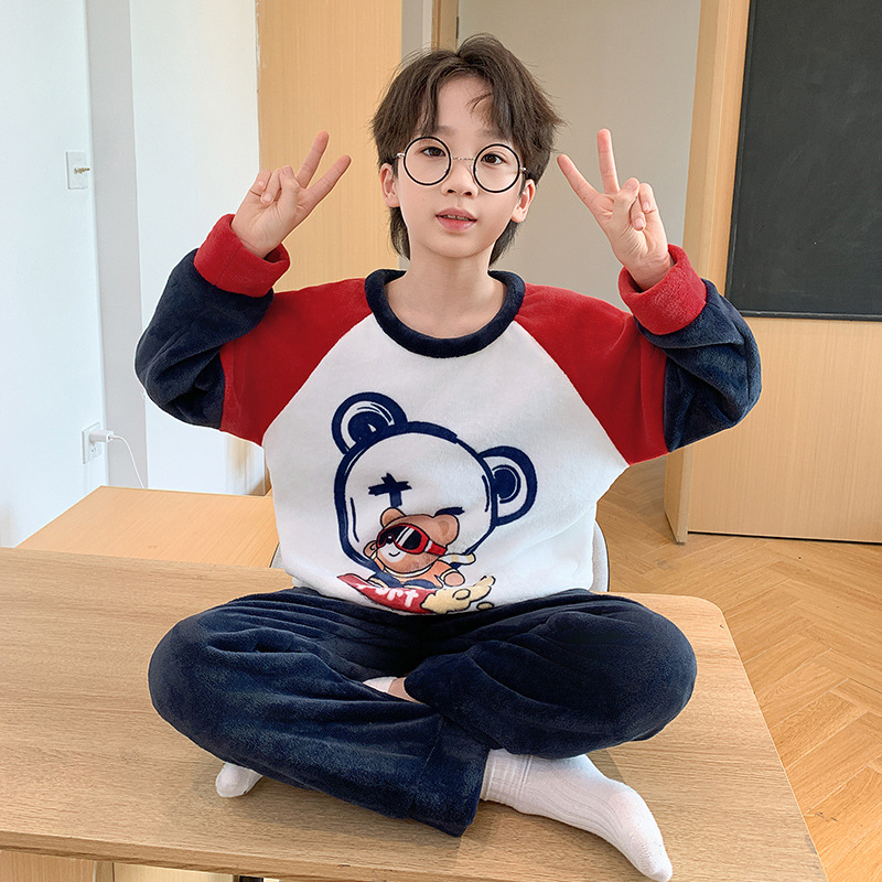어린이 산호 양털 겨울 잠옷 소년의 두꺼운 플란넬 기모 소년의 따뜻한 큰 어린이 가정 옷 세트스토어 가기