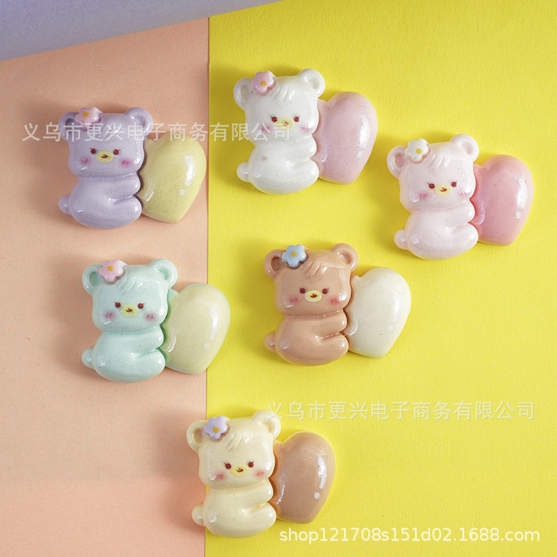 귀여운 만화 사랑 곰 크림 접착제 액세서리 창조적 인 신발 버클 소재 수지 액세서리 DIY 보석 머리핀