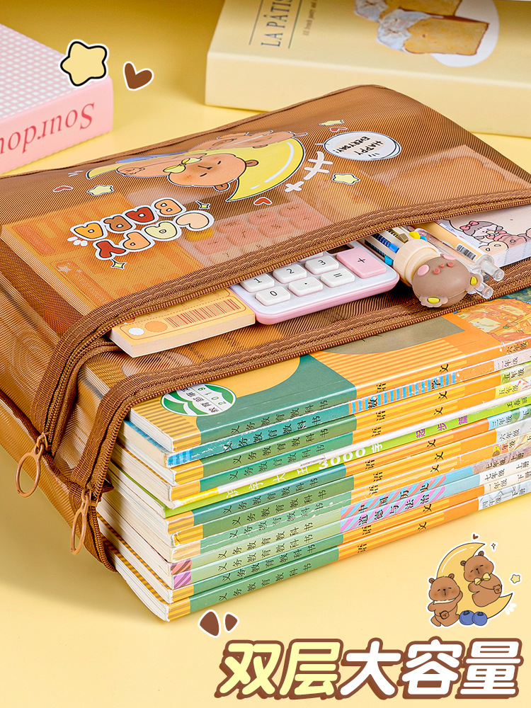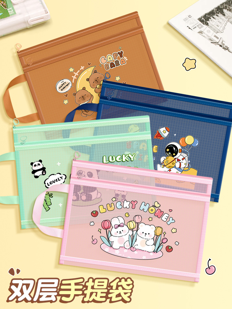 카피 발라 핸드백 A4 투명 더블 레이어 메쉬 문서 가방 저장 가방 중학생 징계 튜토리얼 분류 가방스토어 가기