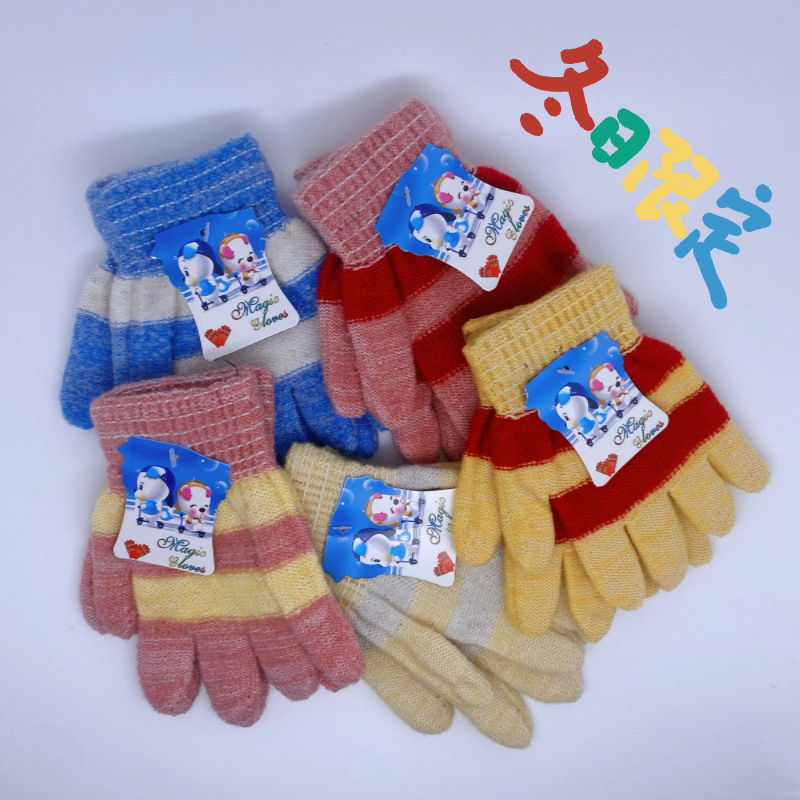 가을과 겨울 폭발 두꺼운 줄무늬 어린이 보편적 인 귀여운 니트 따뜻한 차가운 장갑 공장 직접 가격 박람회스토어 가기