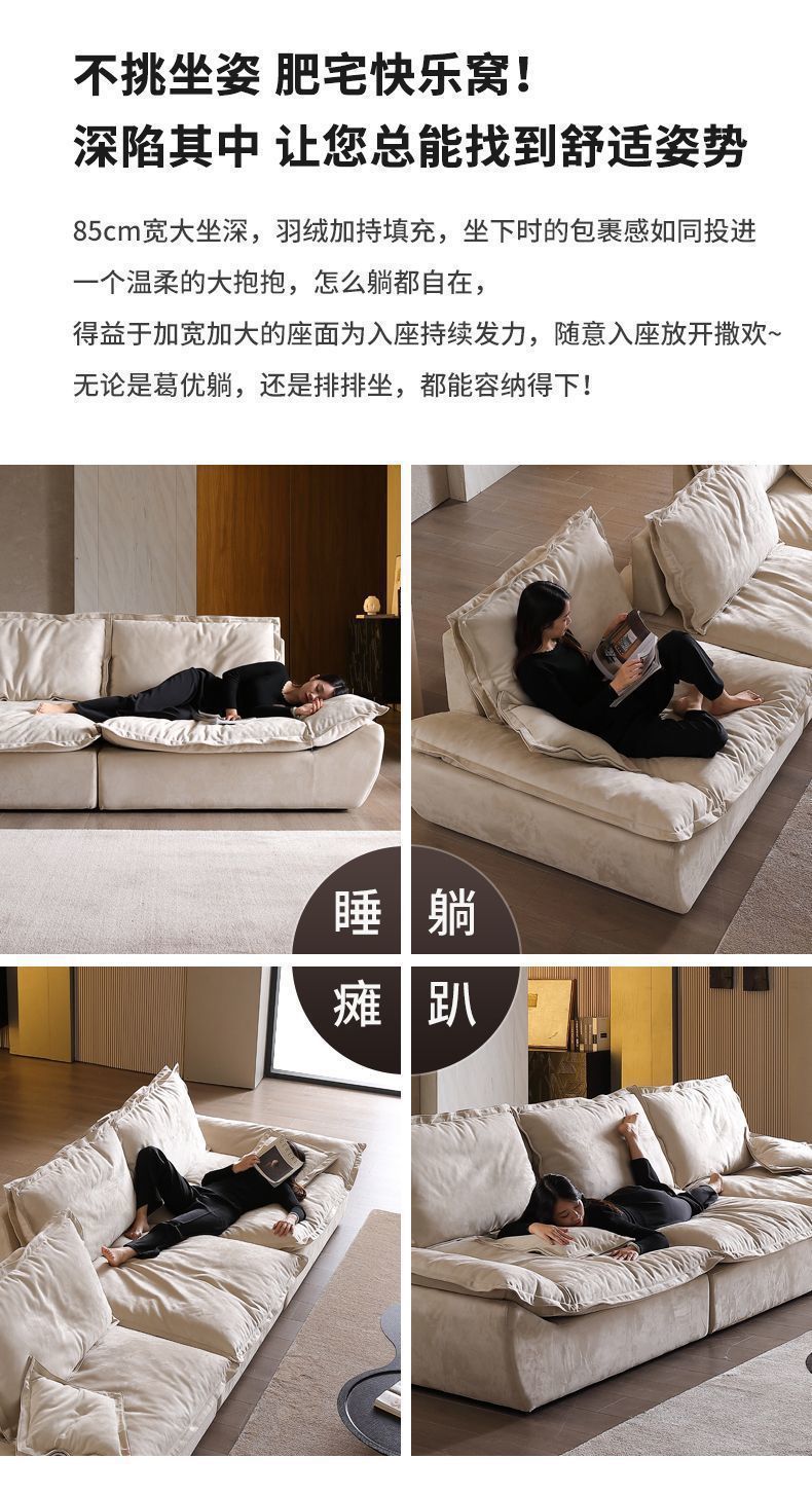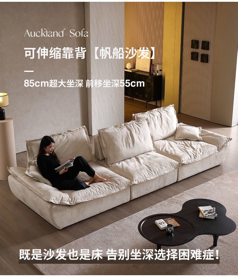 조정 가능한 앉아 깊은 항해 소파 프로스트 벨벳 천 인터넷 인기 스트레이트 이동식 백레스트 새로운 크림 스타일 소파스토어 가기