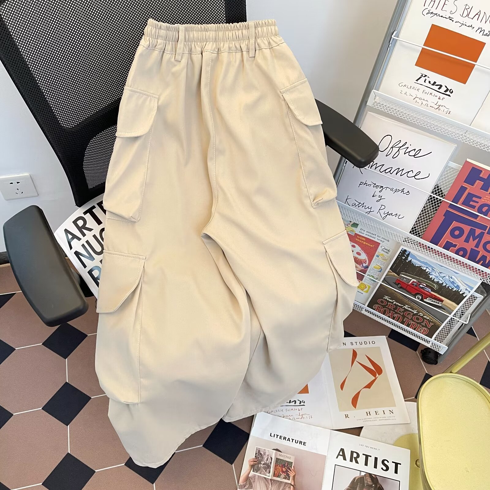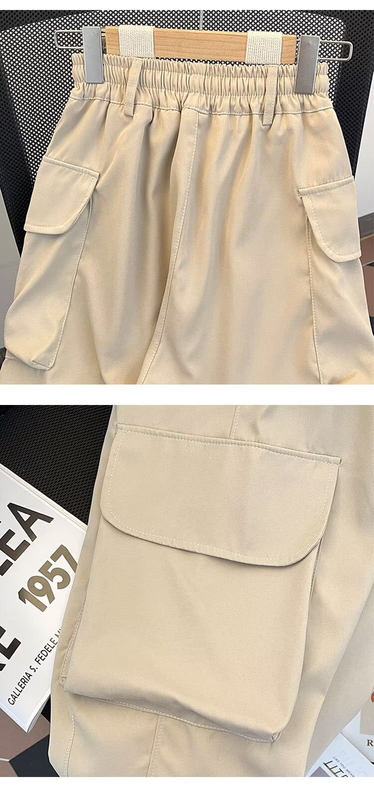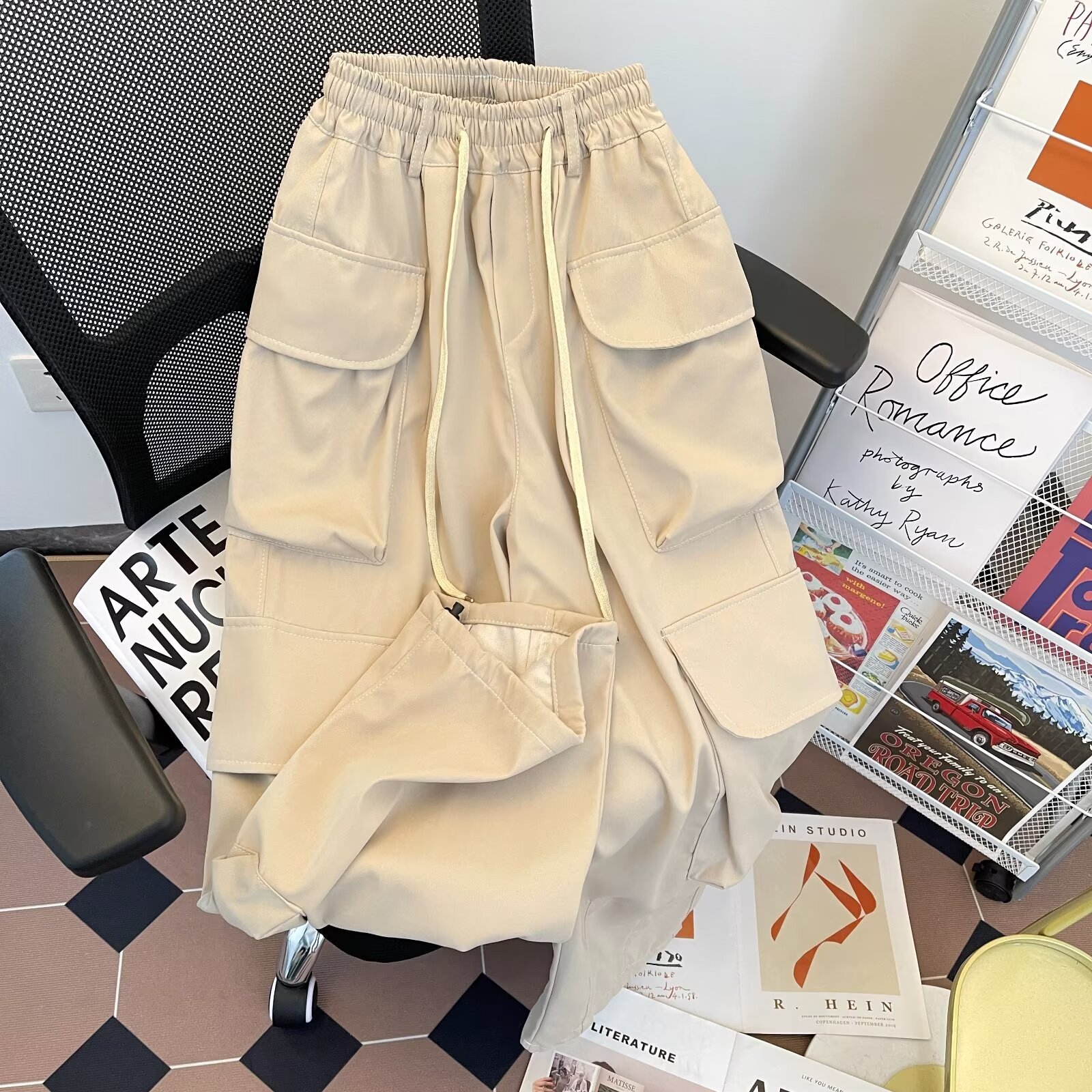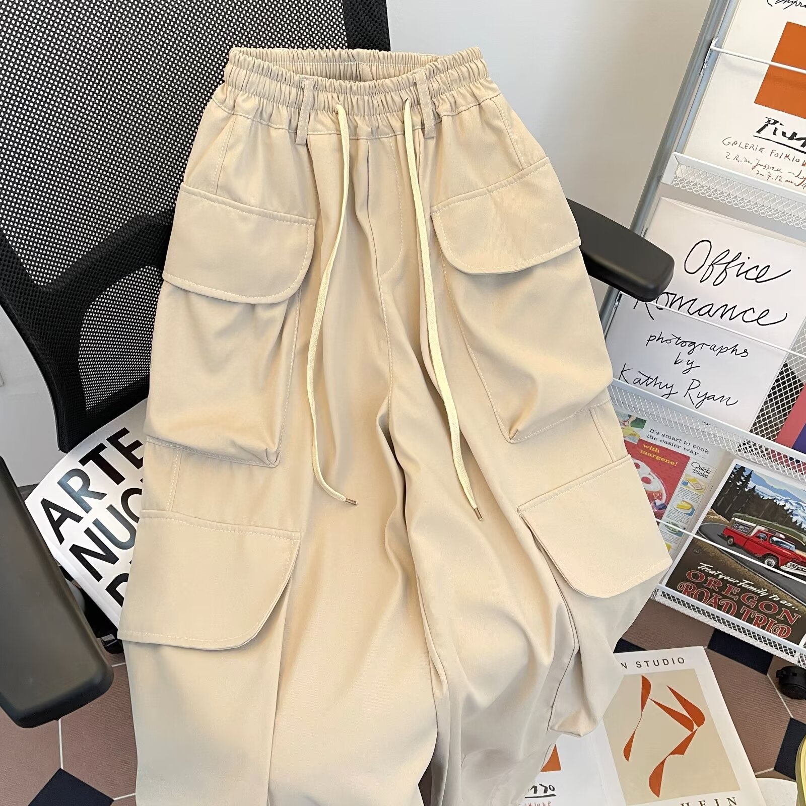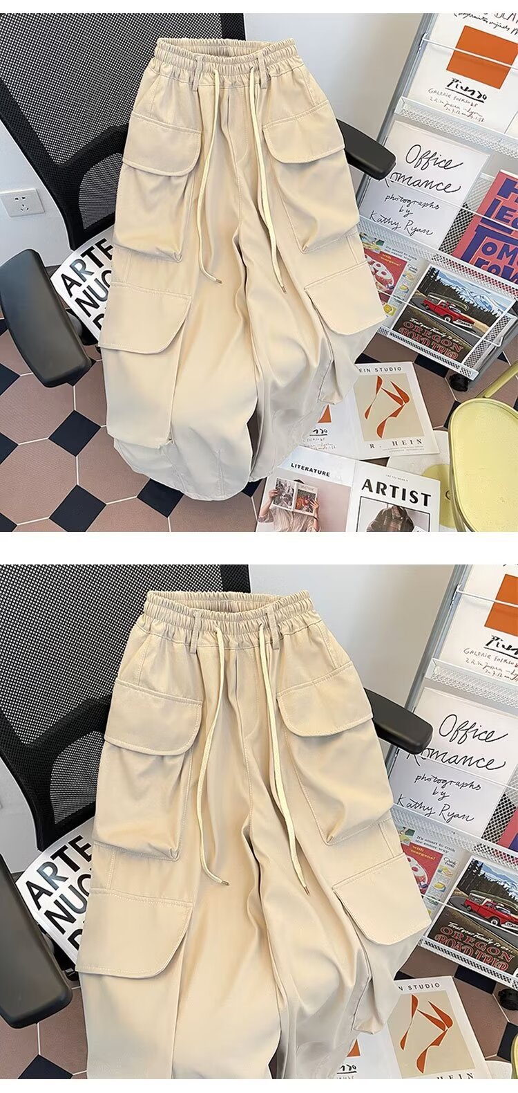 멀티 포켓 느슨한 캐주얼 바지 남자 한국식 트렌디 올 매치 바지 여름 펜던트 와이드 레그 바지스토어 가기