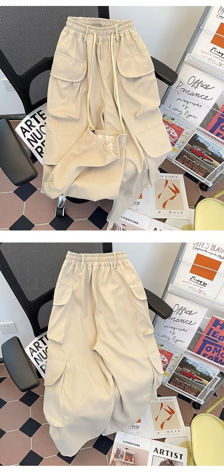 멀티 포켓 느슨한 캐주얼 바지 남자 한국식 트렌디 올 매치 바지 여름 펜던트 와이드 레그 바지