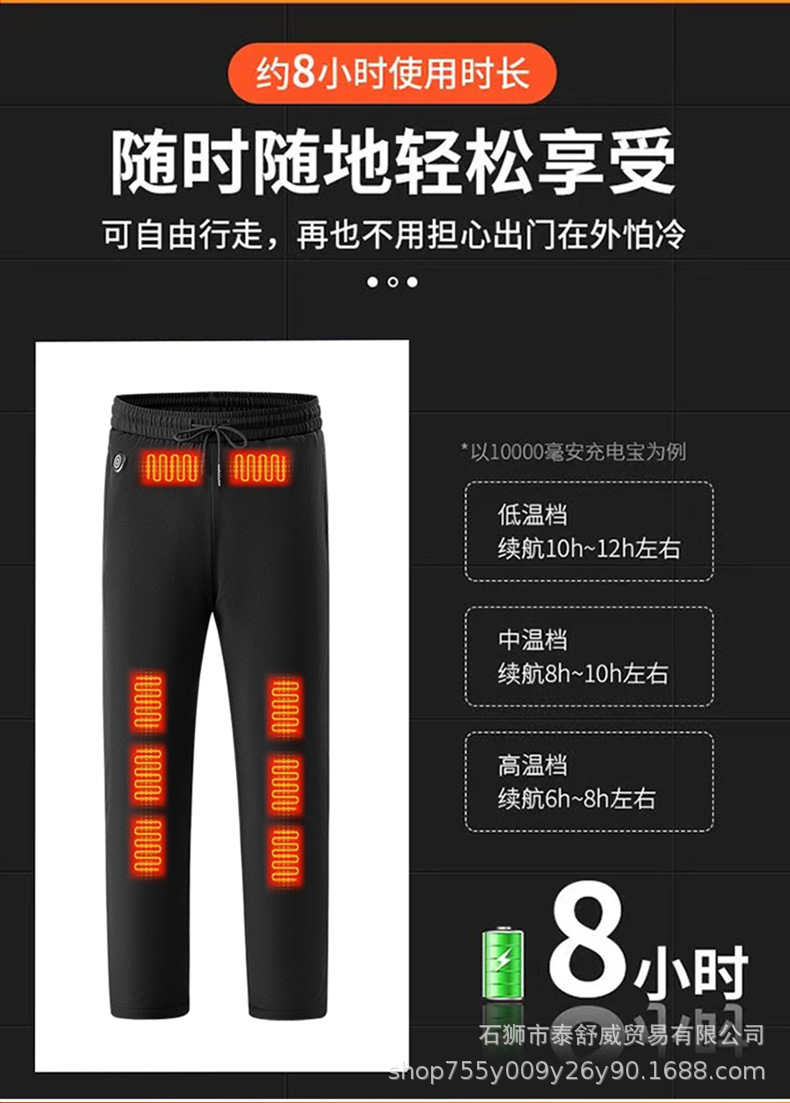 국경 간 플러스 사이즈 지능형 난방 바지 충전 일정 온도 10 구역 난방 바지 야외 냉난방 캐주얼 바지스토어 가기