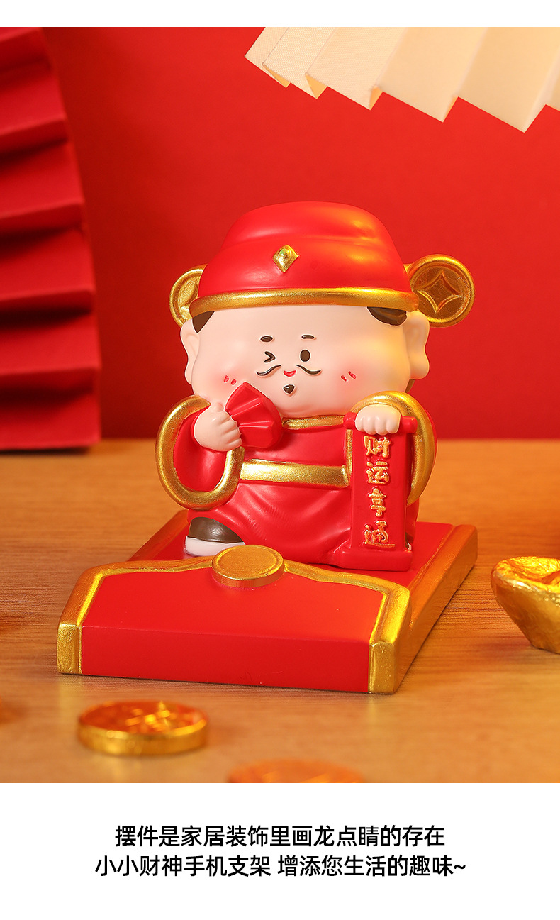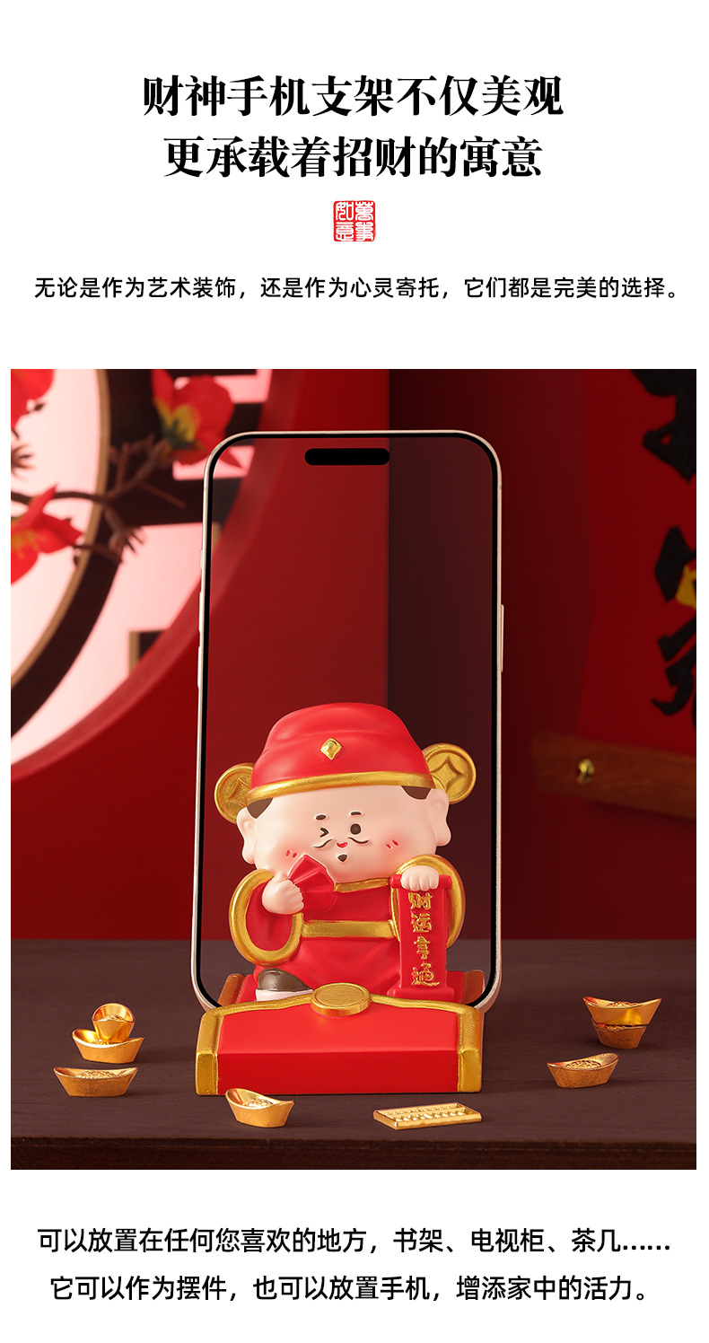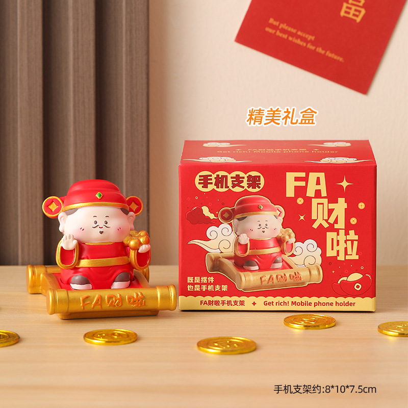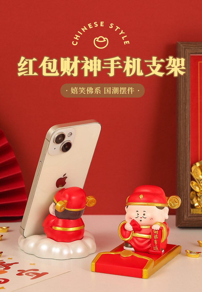 新款创意财神红包手机支架懒人支架追剧神器办公桌面树脂摆件礼品
