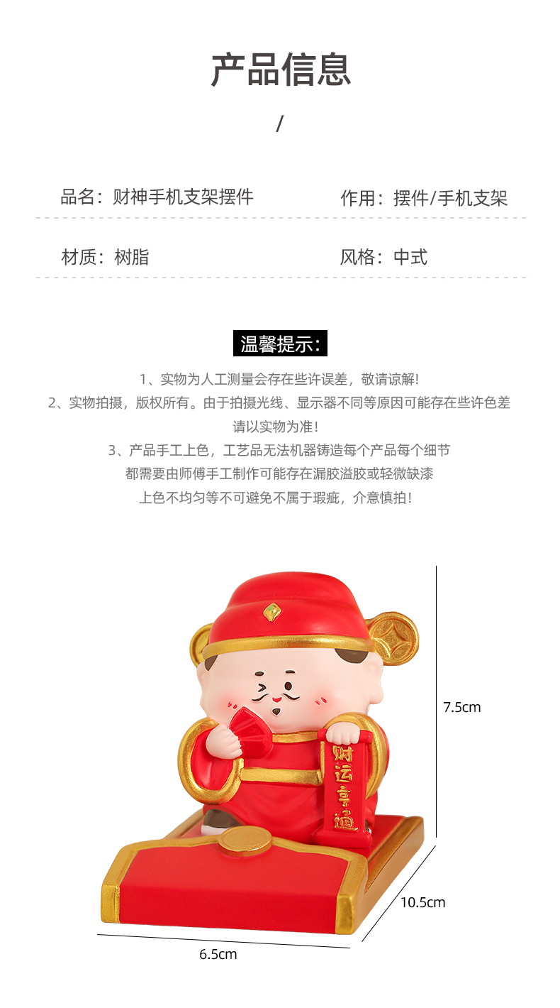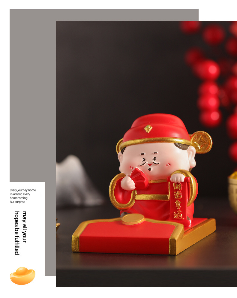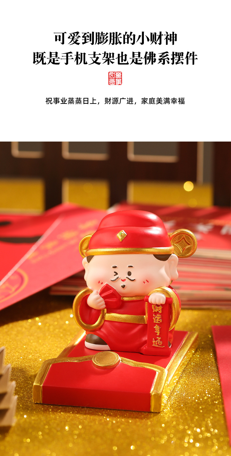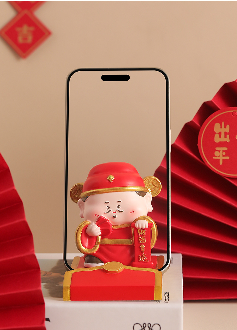新款创意财神红包手机支架懒人支架追剧神器办公桌面树脂摆件礼品