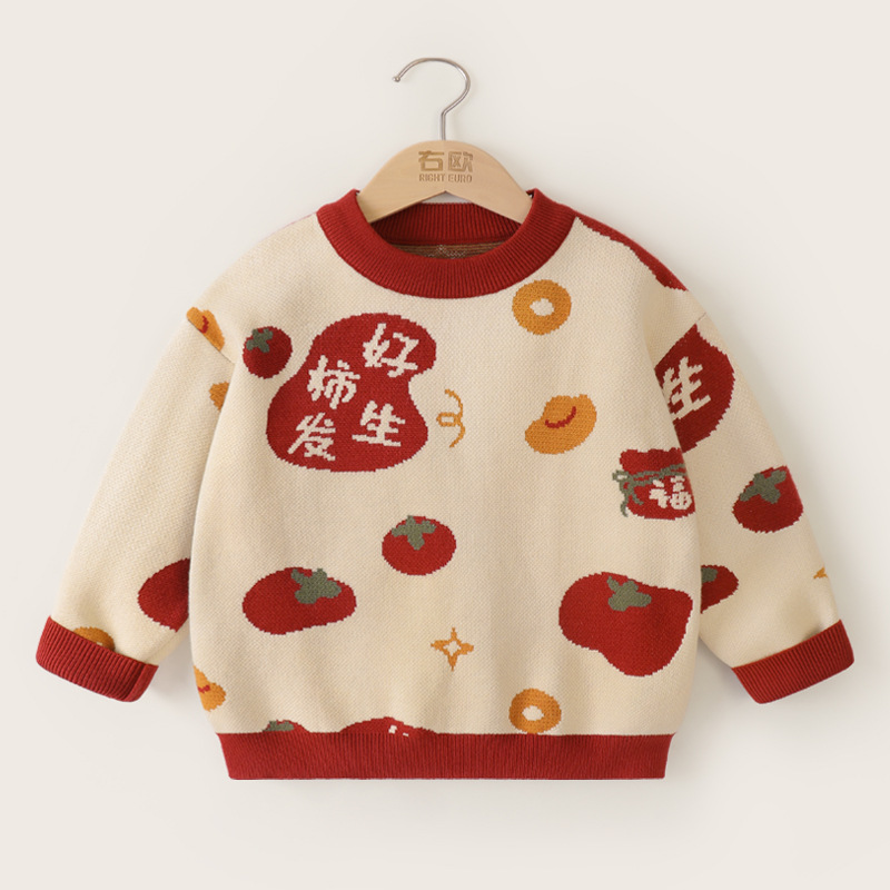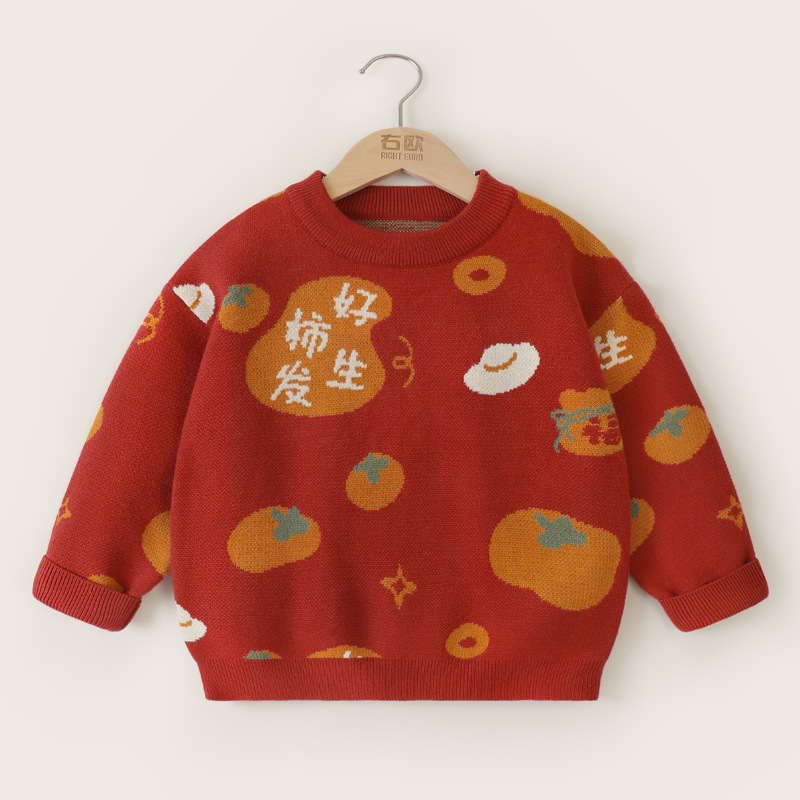남아용 스웨터 니트웨어 따뜻한 상의 겨울옷 가을 겨울 신상 어린이용 새해맞이 의상 빨간색 축제 의류스토어 가기