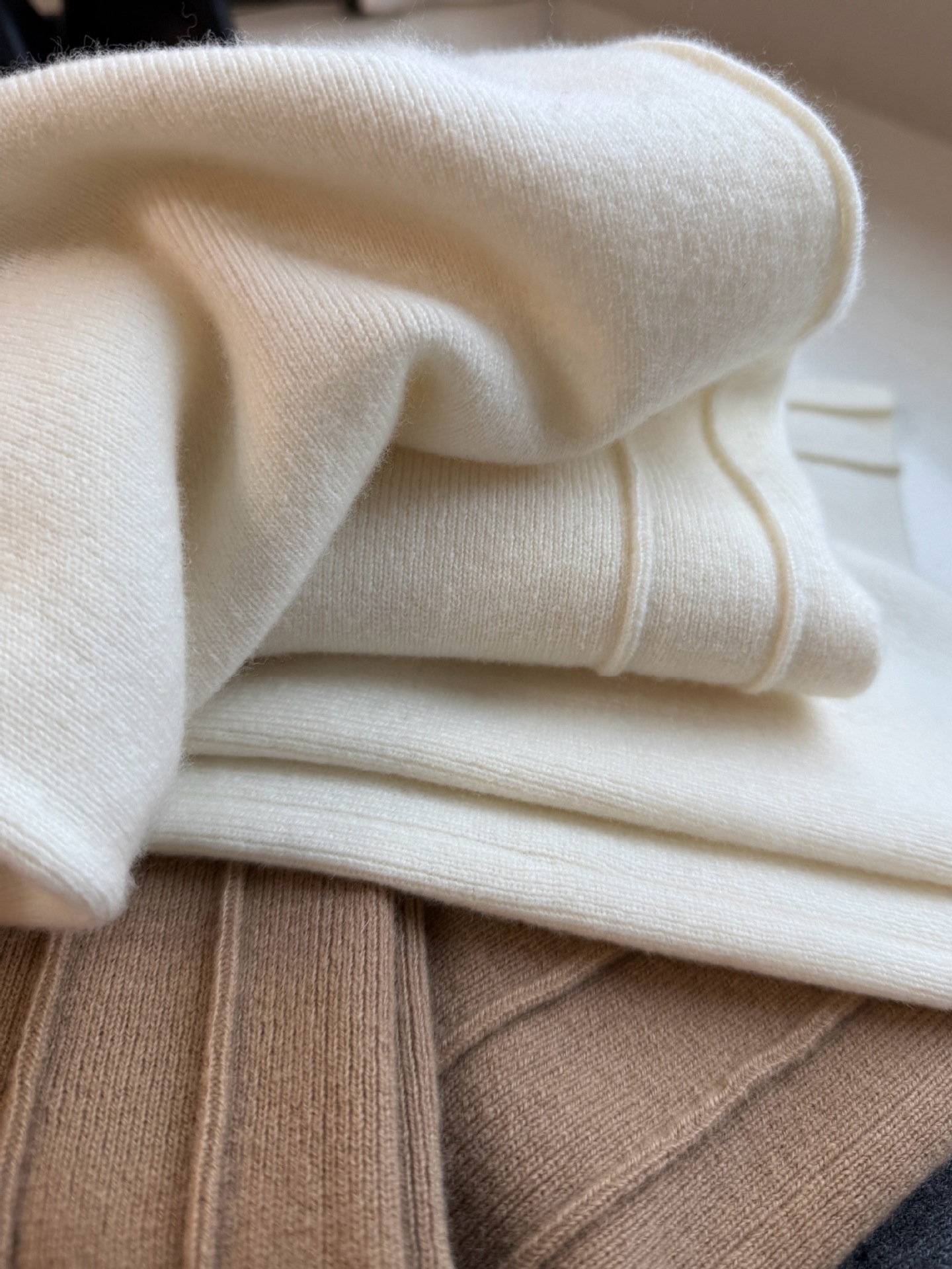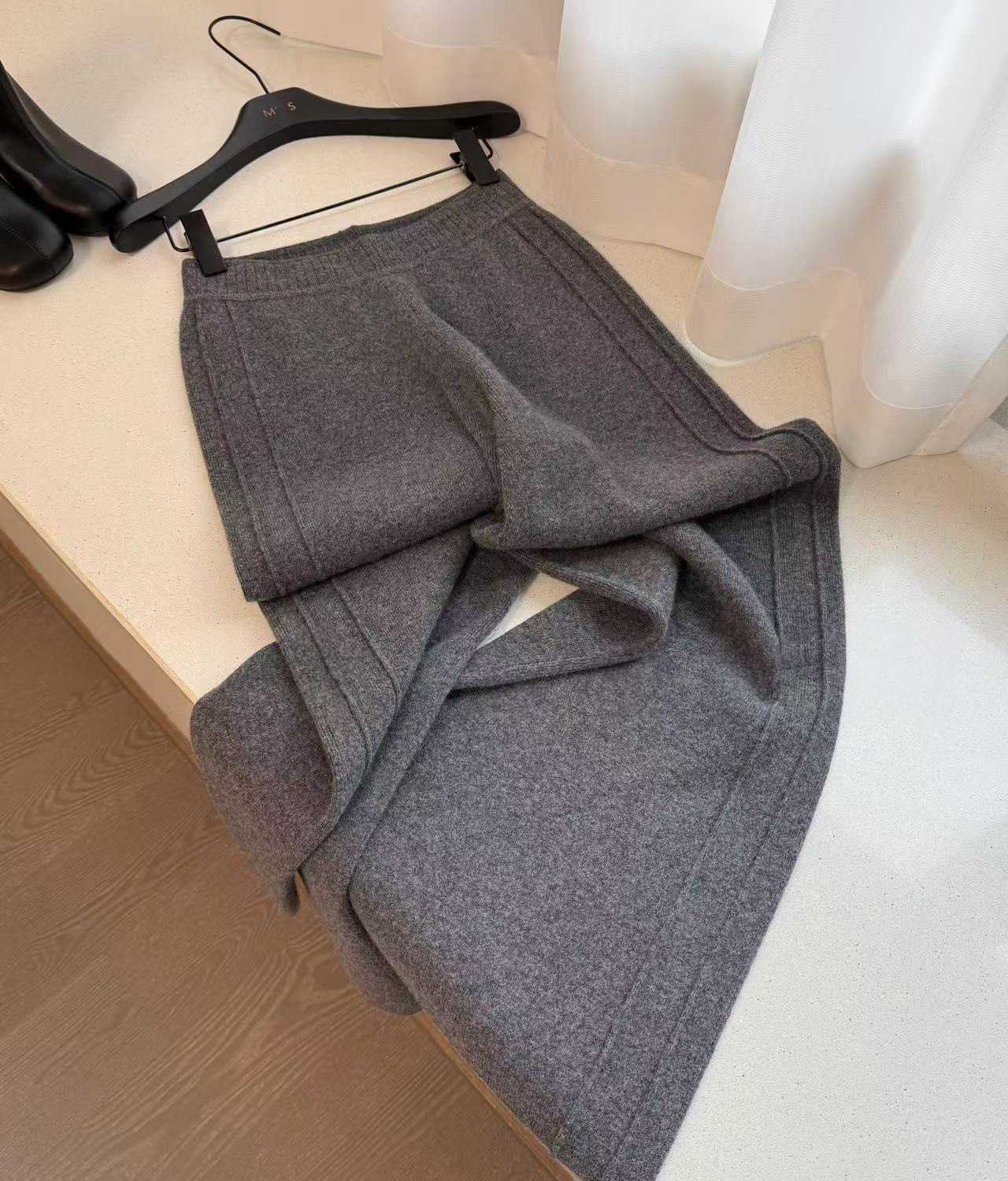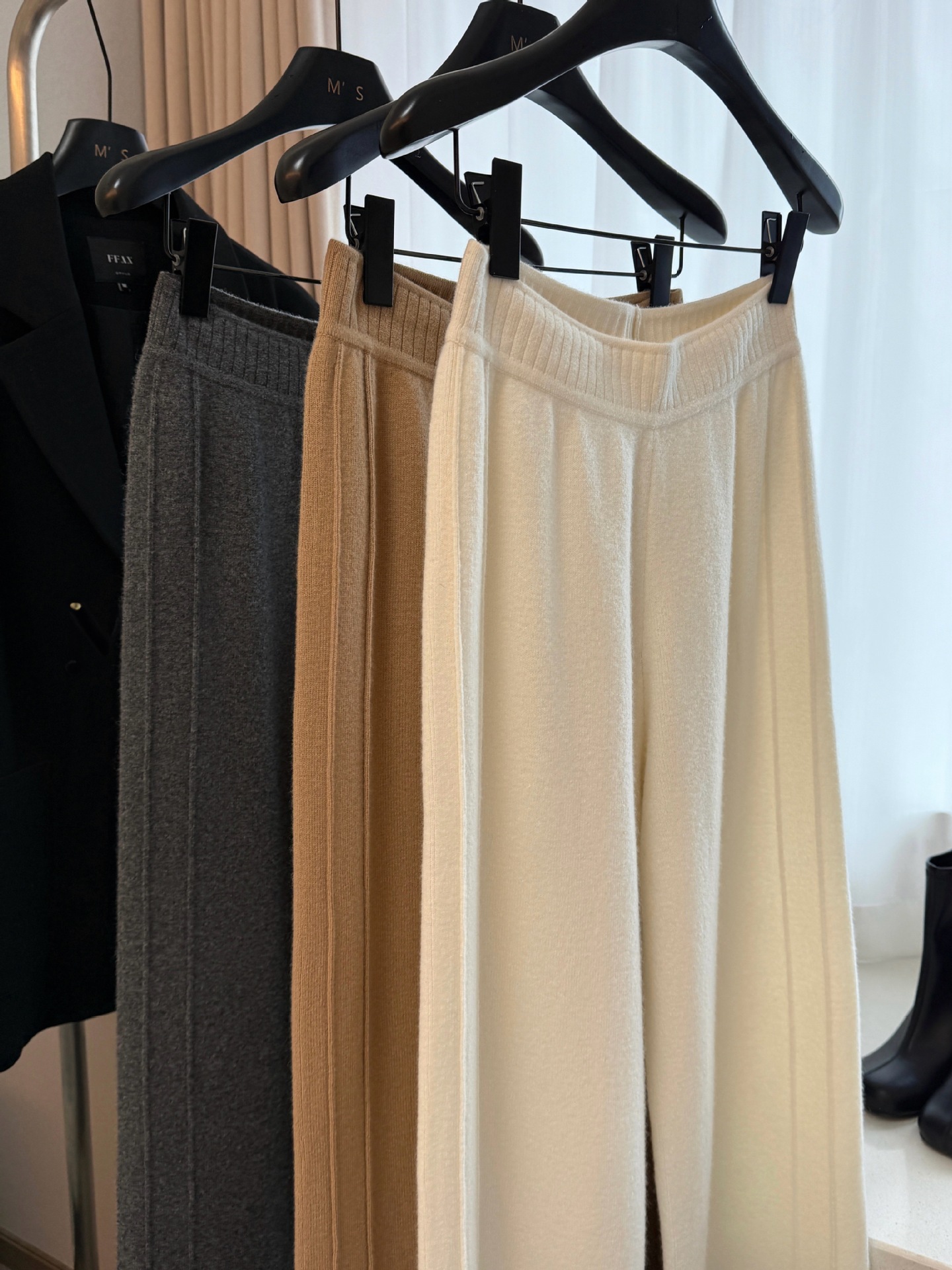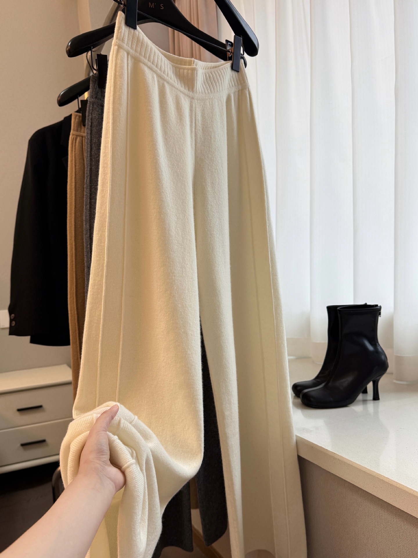 2024 가을과 겨울 캐시미어 니트 와이드 레그 팬츠 여성용 하이 웨이스트 데깅 하이 레벨 슬리밍 두꺼운 플로어-워킹 캐주얼 팬츠스토어 가기